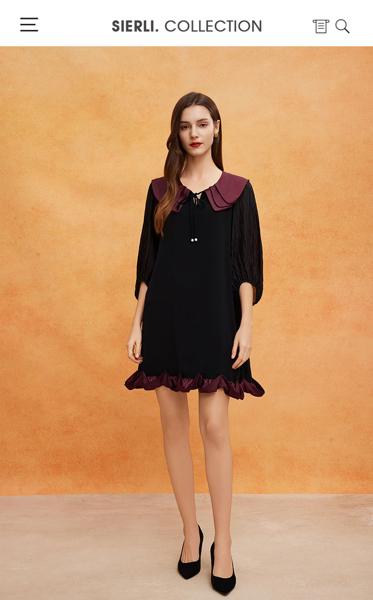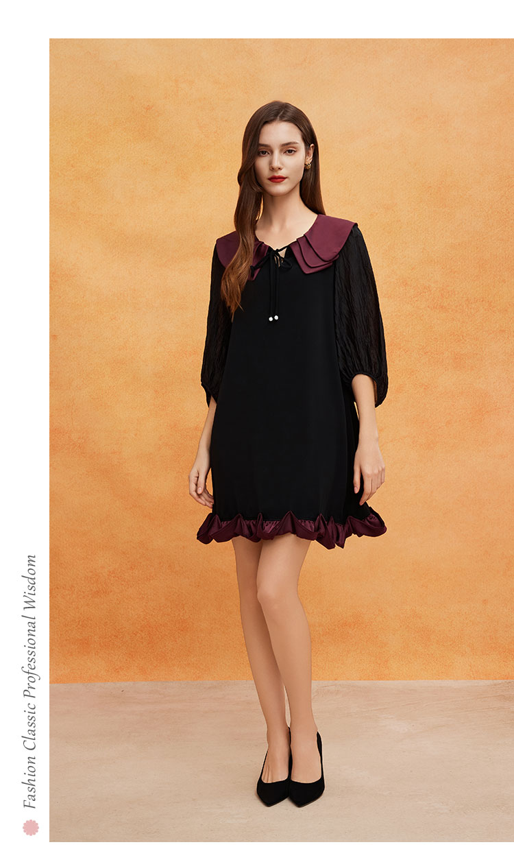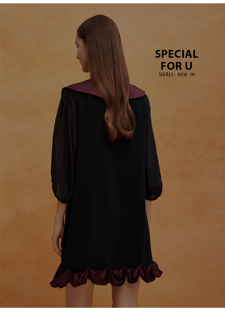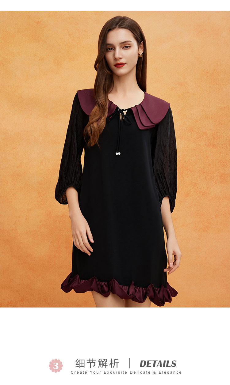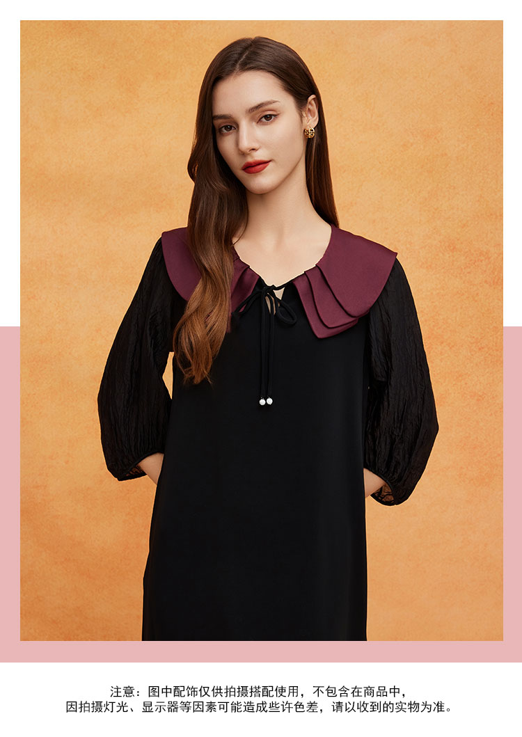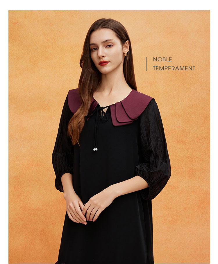 QE825斯尔丽2025春季新款花瓣领型浪漫圆润醋酸宽松高级奢华显高连衣裙