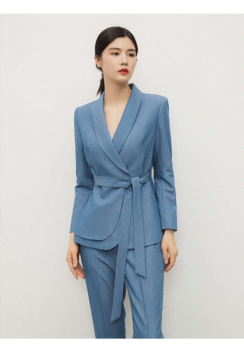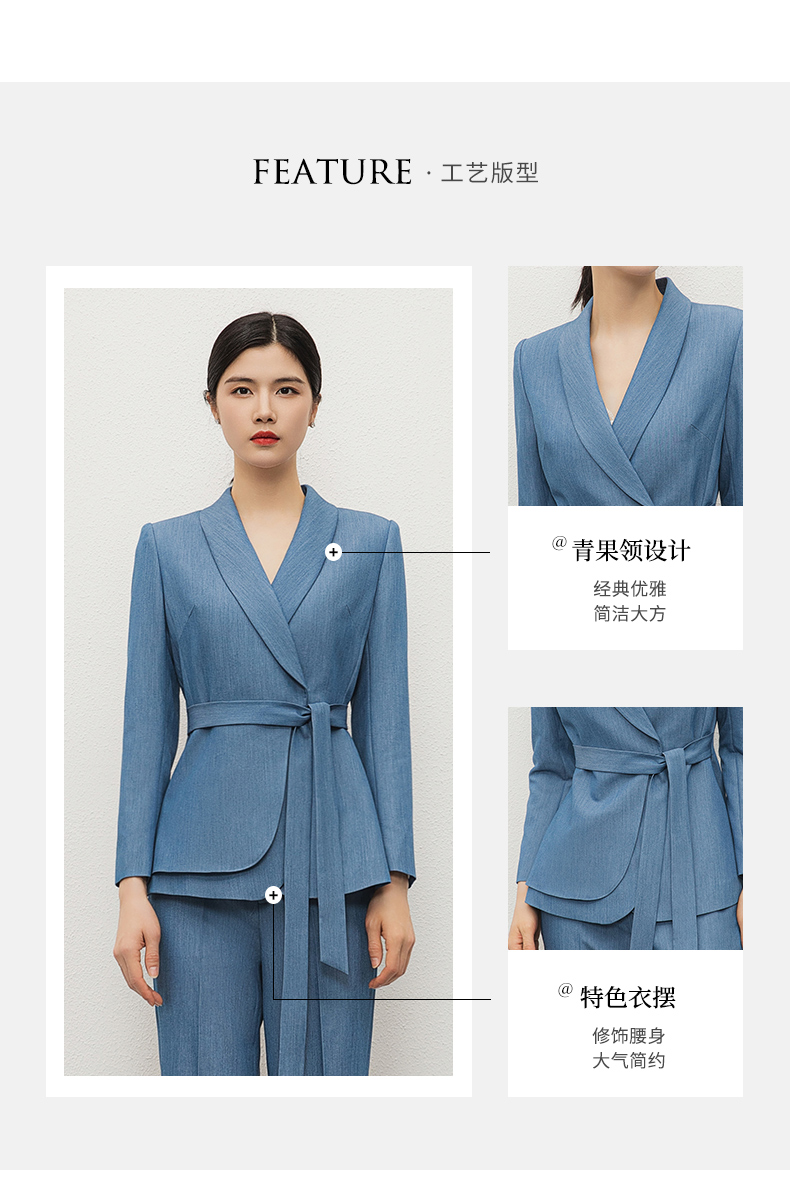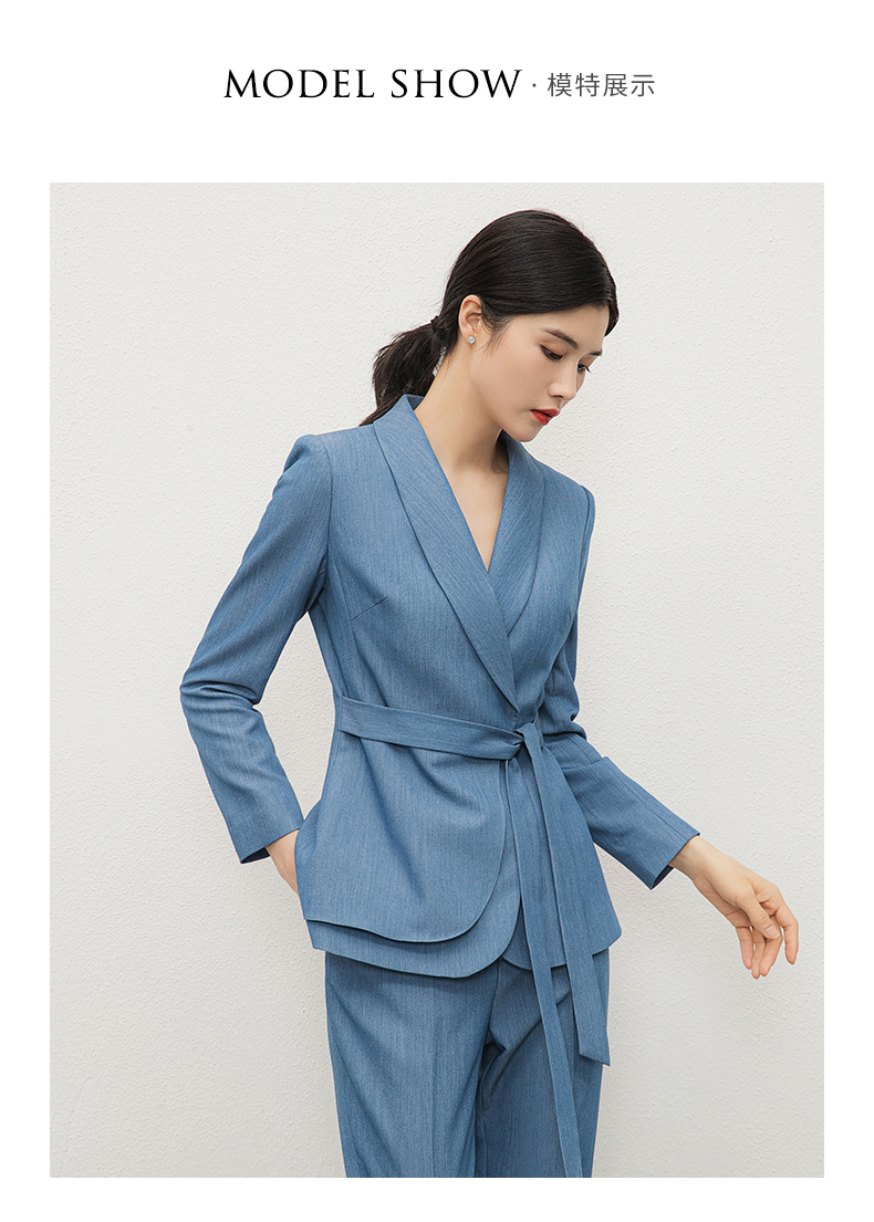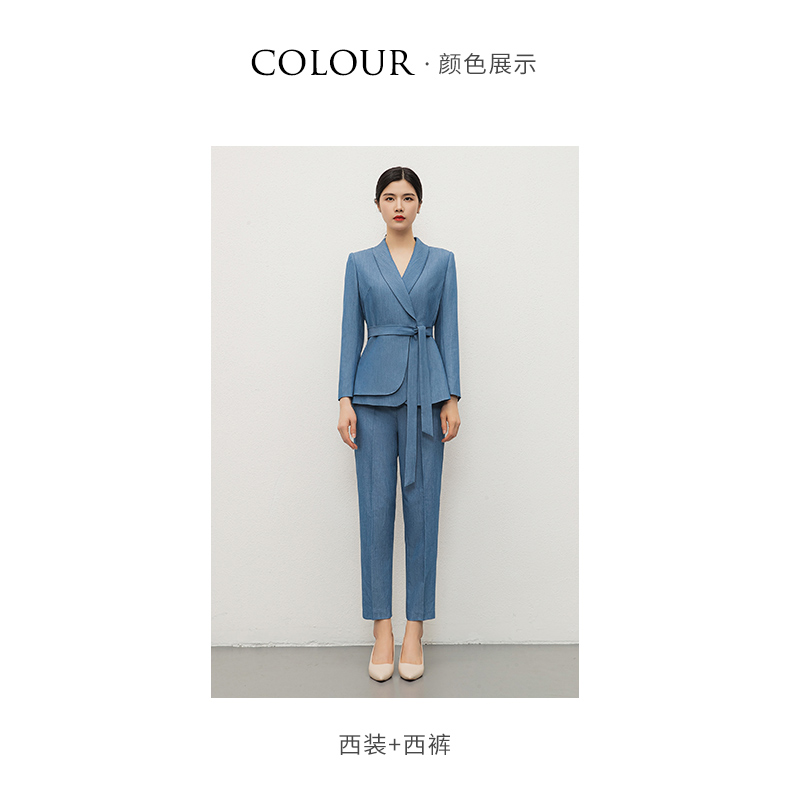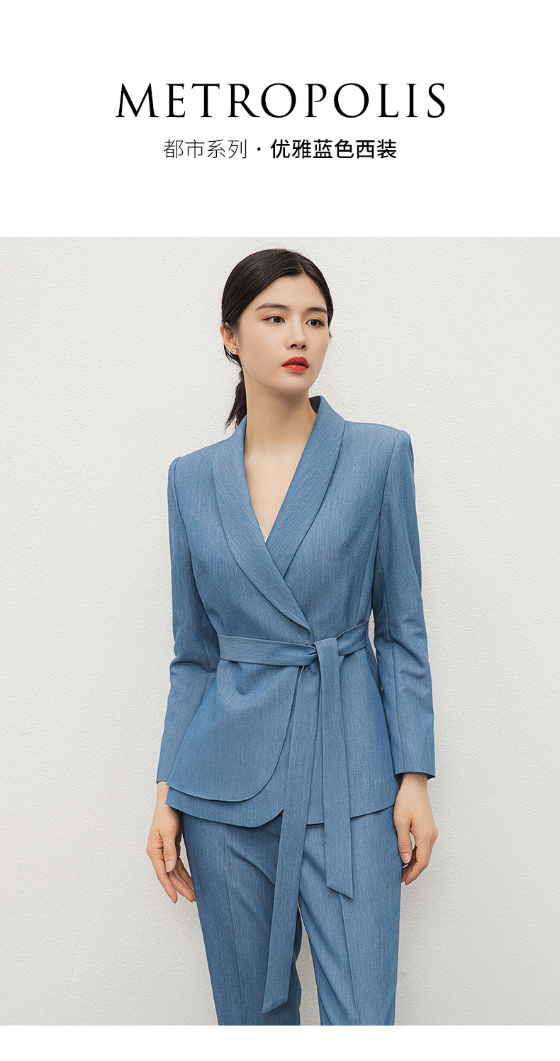 IWY/蓝色正式场合职业套装女士西装上班通勤女装西服珠宝店绑带工作服CP13142