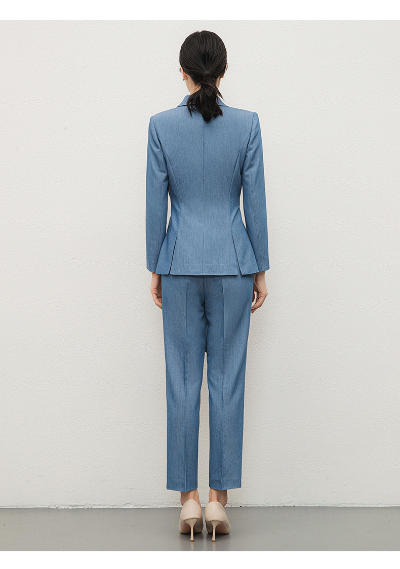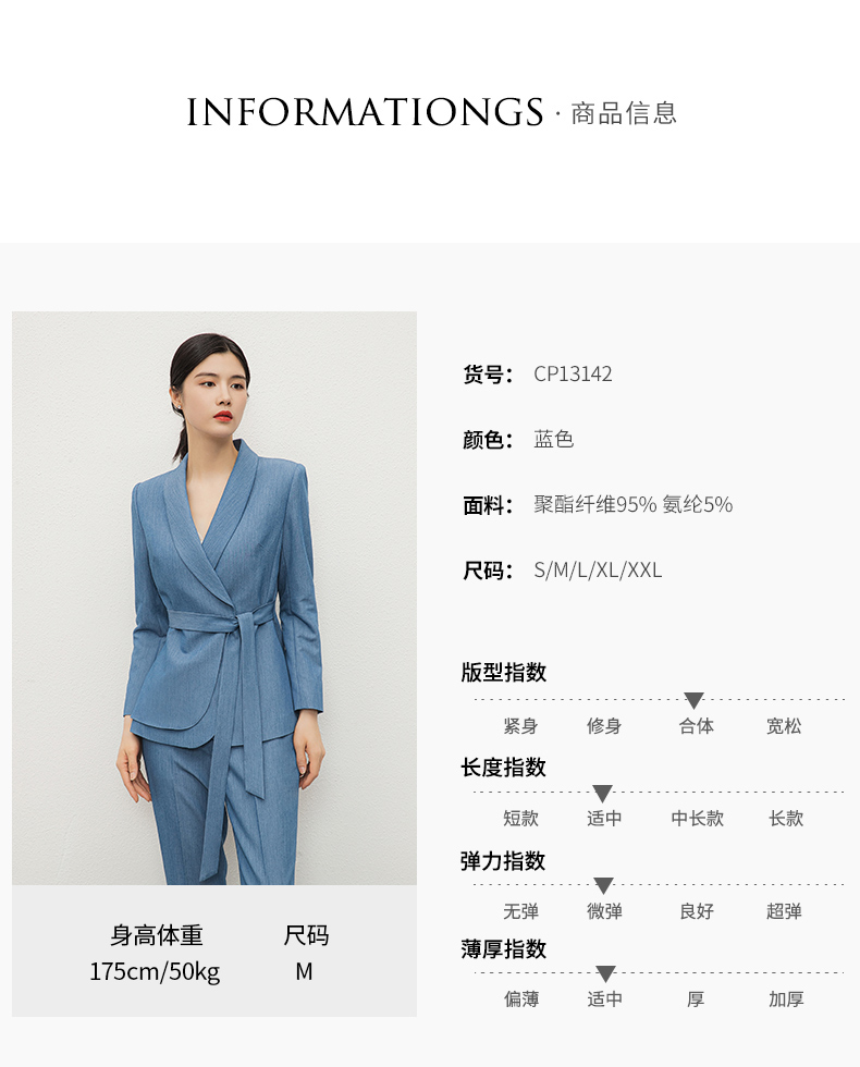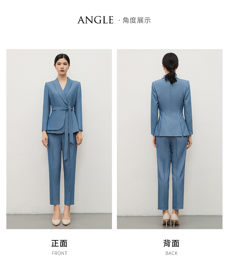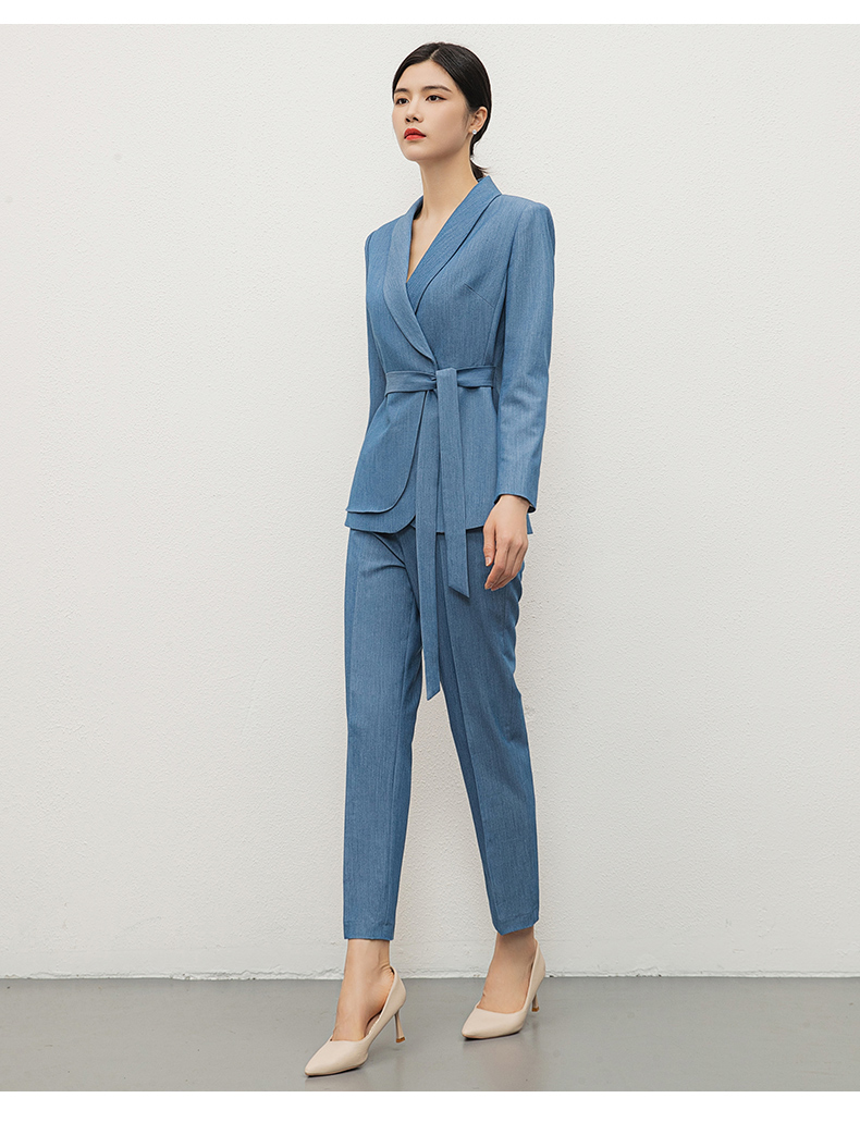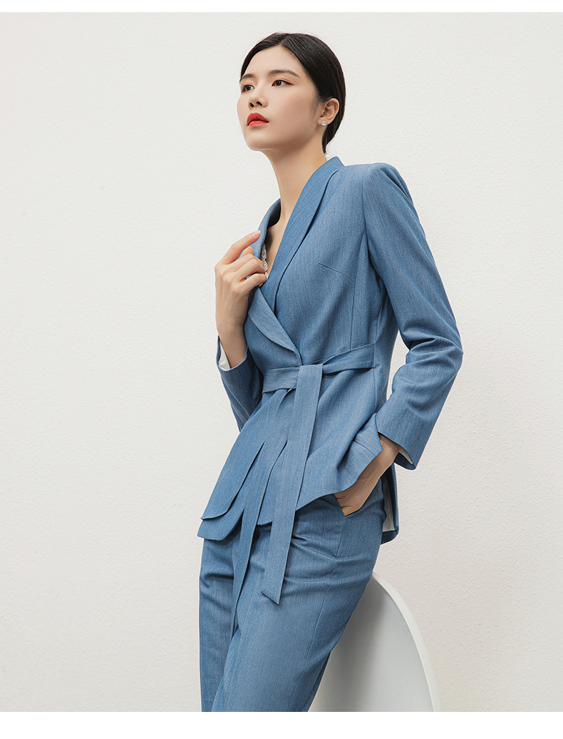 IWY/蓝色正式场合职业套装女士西装上班通勤女装西服珠宝店绑带工作服CP13142