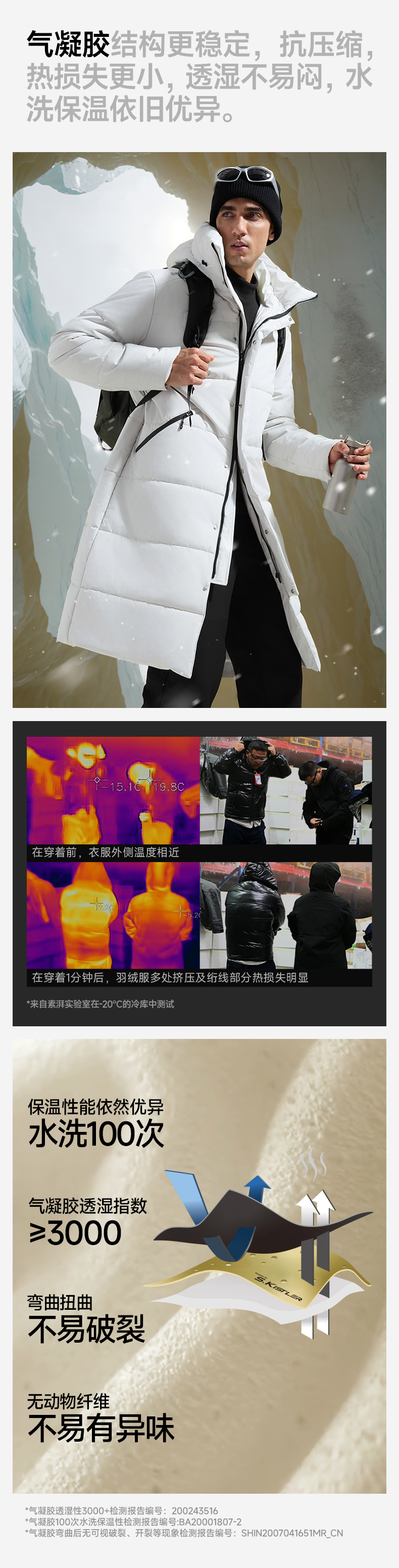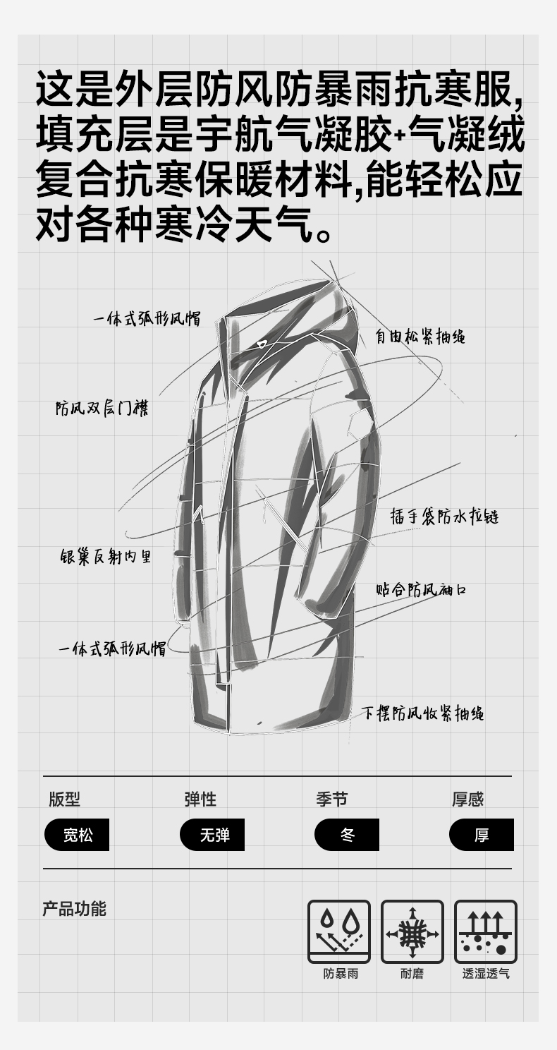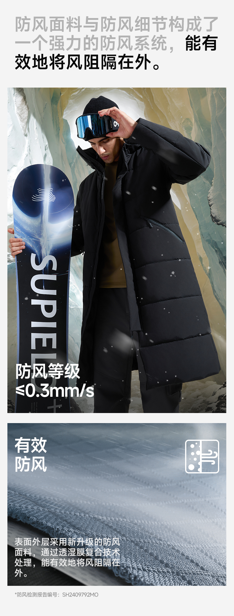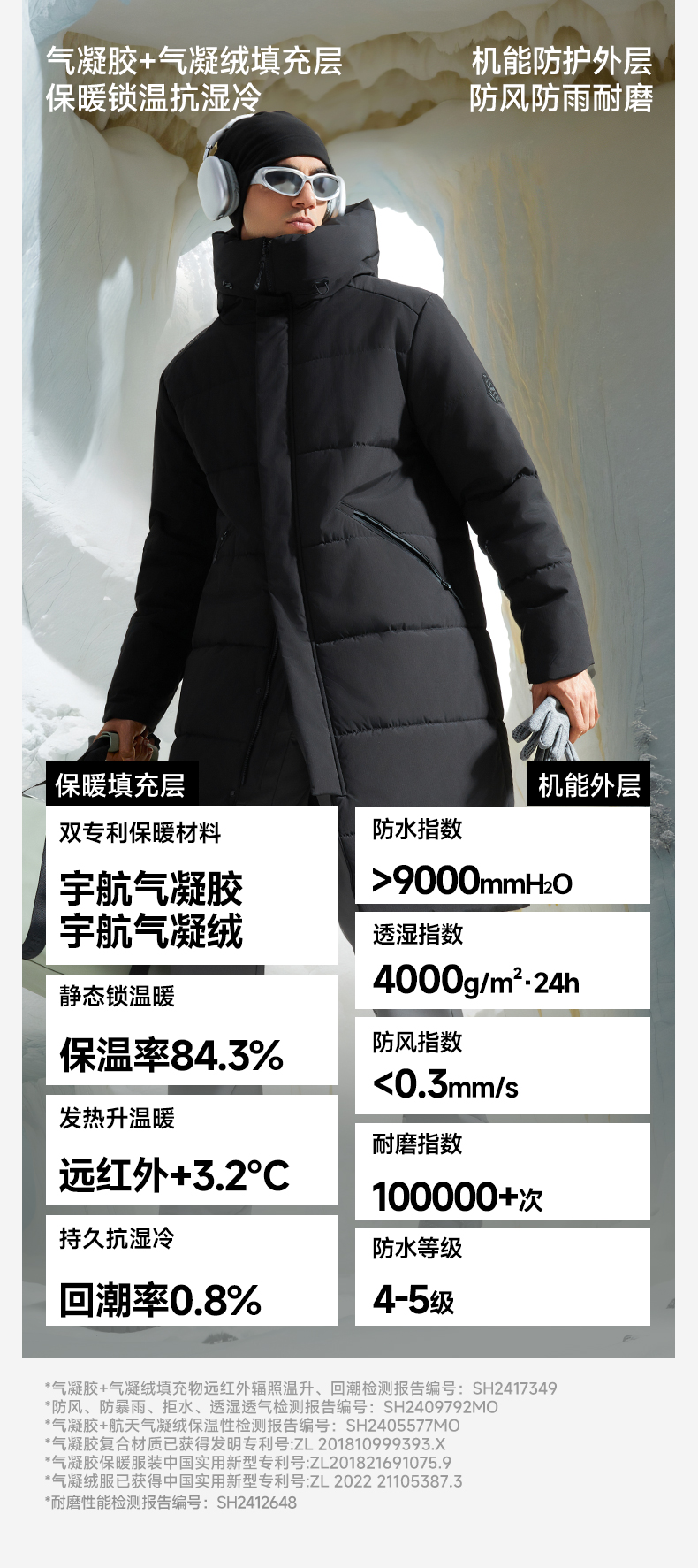 素湃SUPIELD宇航星壳极寒长款过膝外套冬季气凝胶气凝绒双重保暖