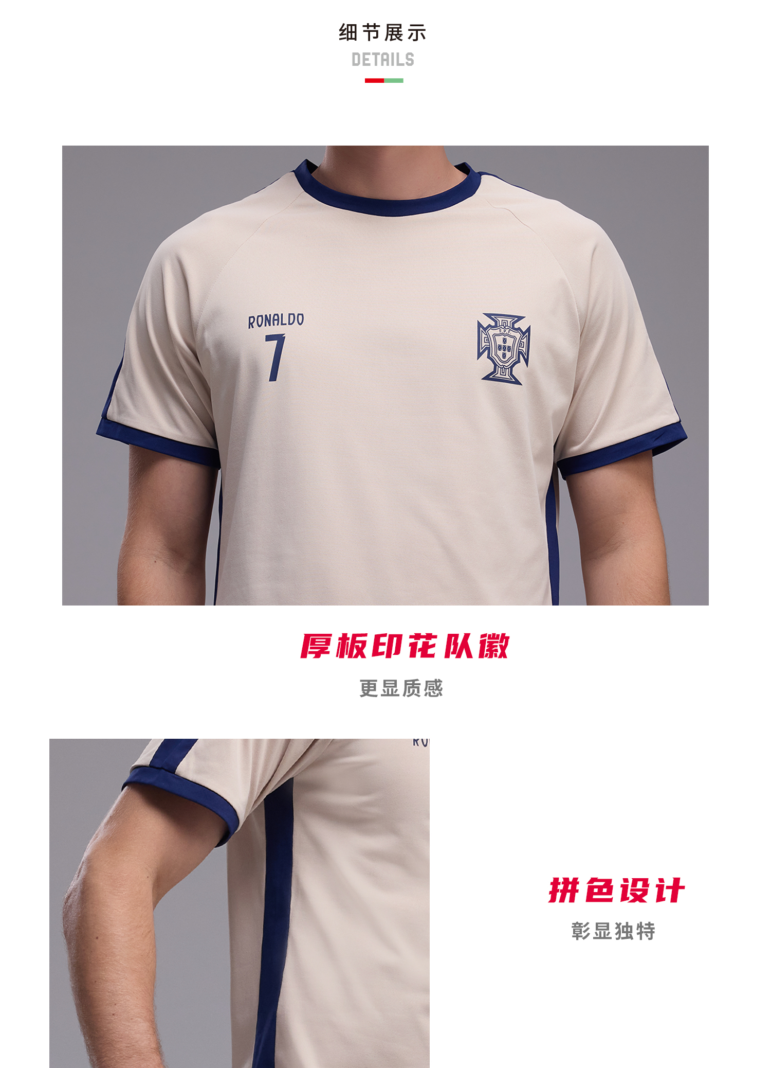 【官方正版】葡萄牙国家队 | 春夏白色印号拼色圆领T恤舒适透气