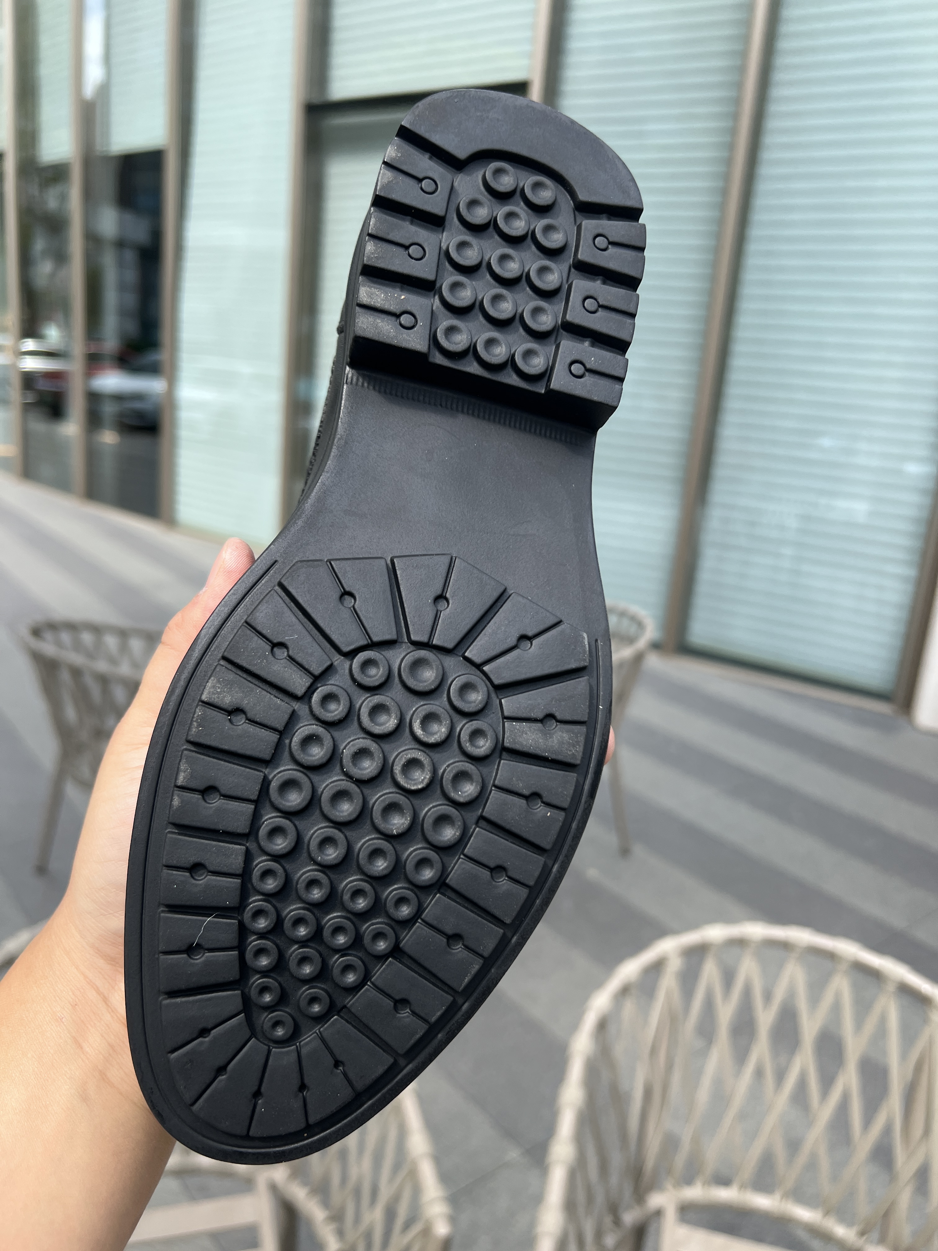 鞋型非常漂亮上脚效果非常大气 鞋面手缝工艺技术精湛 完美诠释出一针一线勾勒出来的外贸风!鞋口设计松紧大小脚事宜!