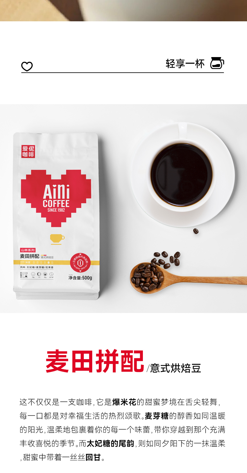 【三大产区拼配】爱伲庄园 麦田拼配 意市深烘咖啡豆 500g/袋