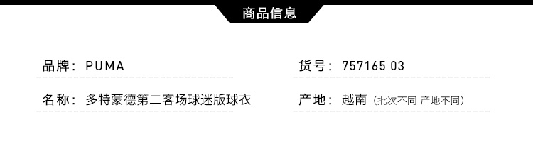 小李子PUMA彪马20-21赛季多特蒙德第三客场球迷短袖T恤757165-03