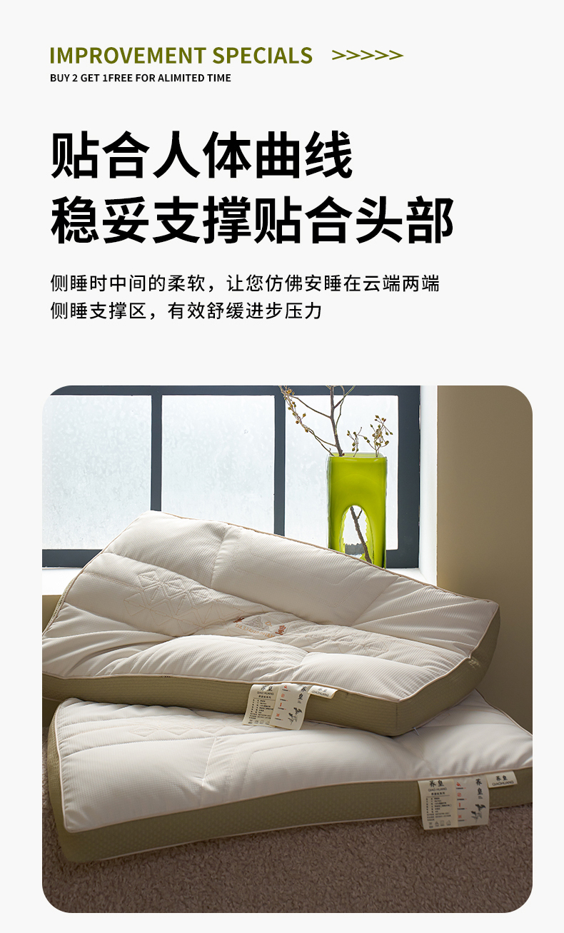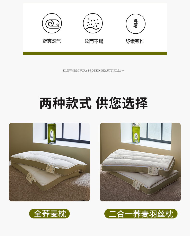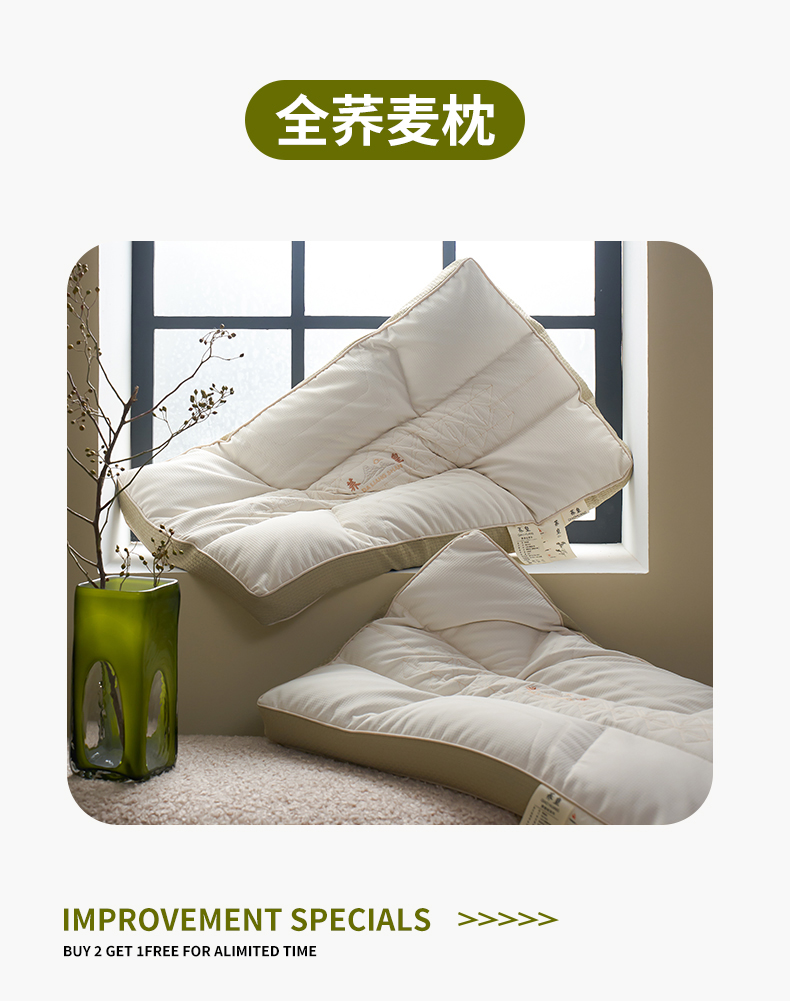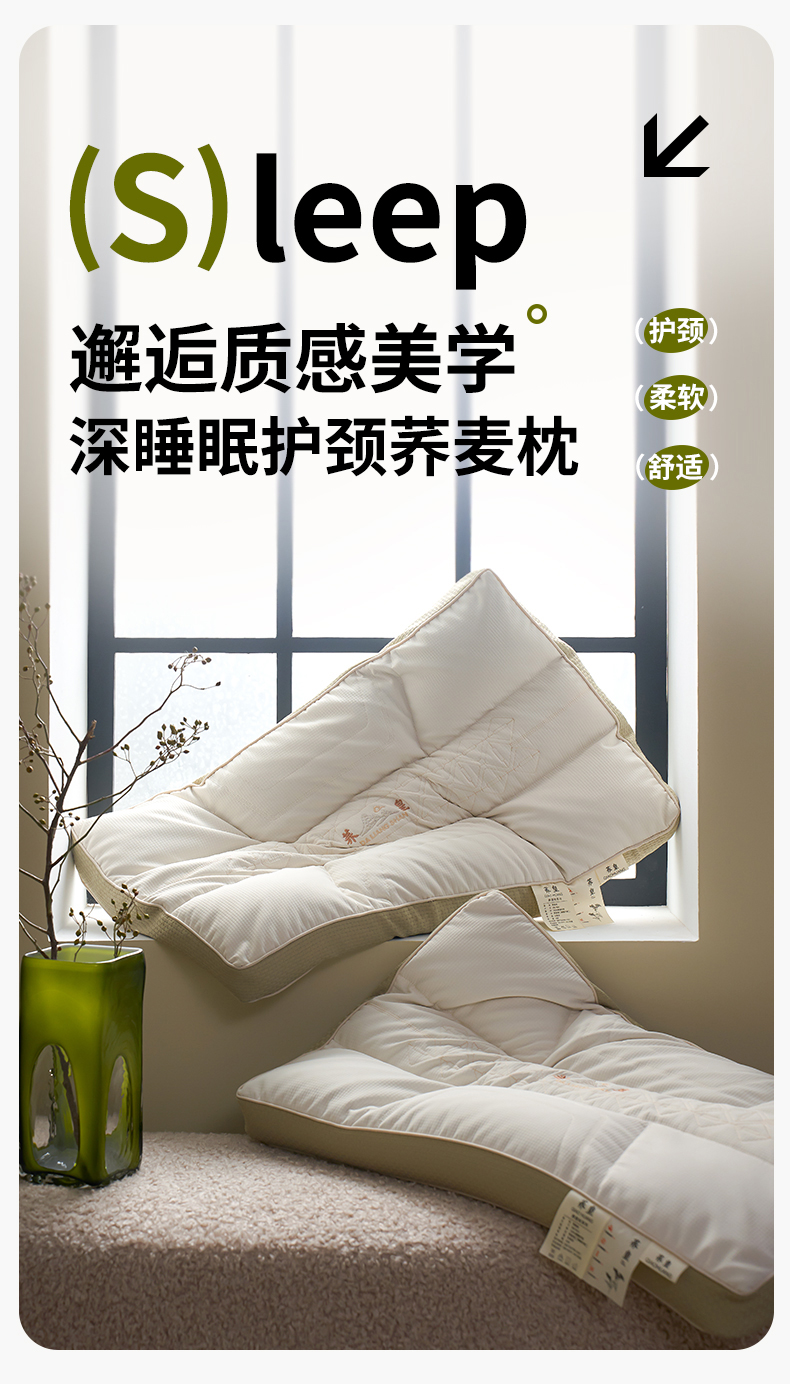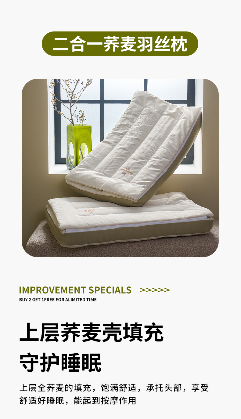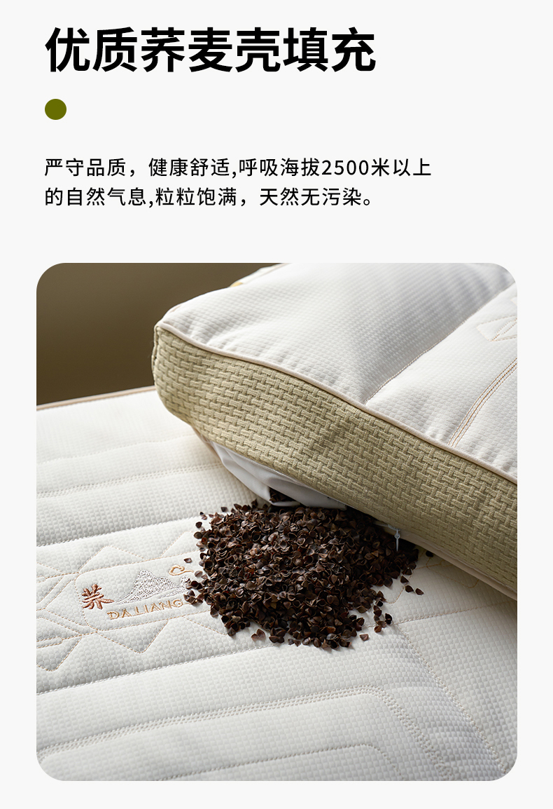 二合一深睡眠护颈荞麦枕头 全荞麦明目枕芯