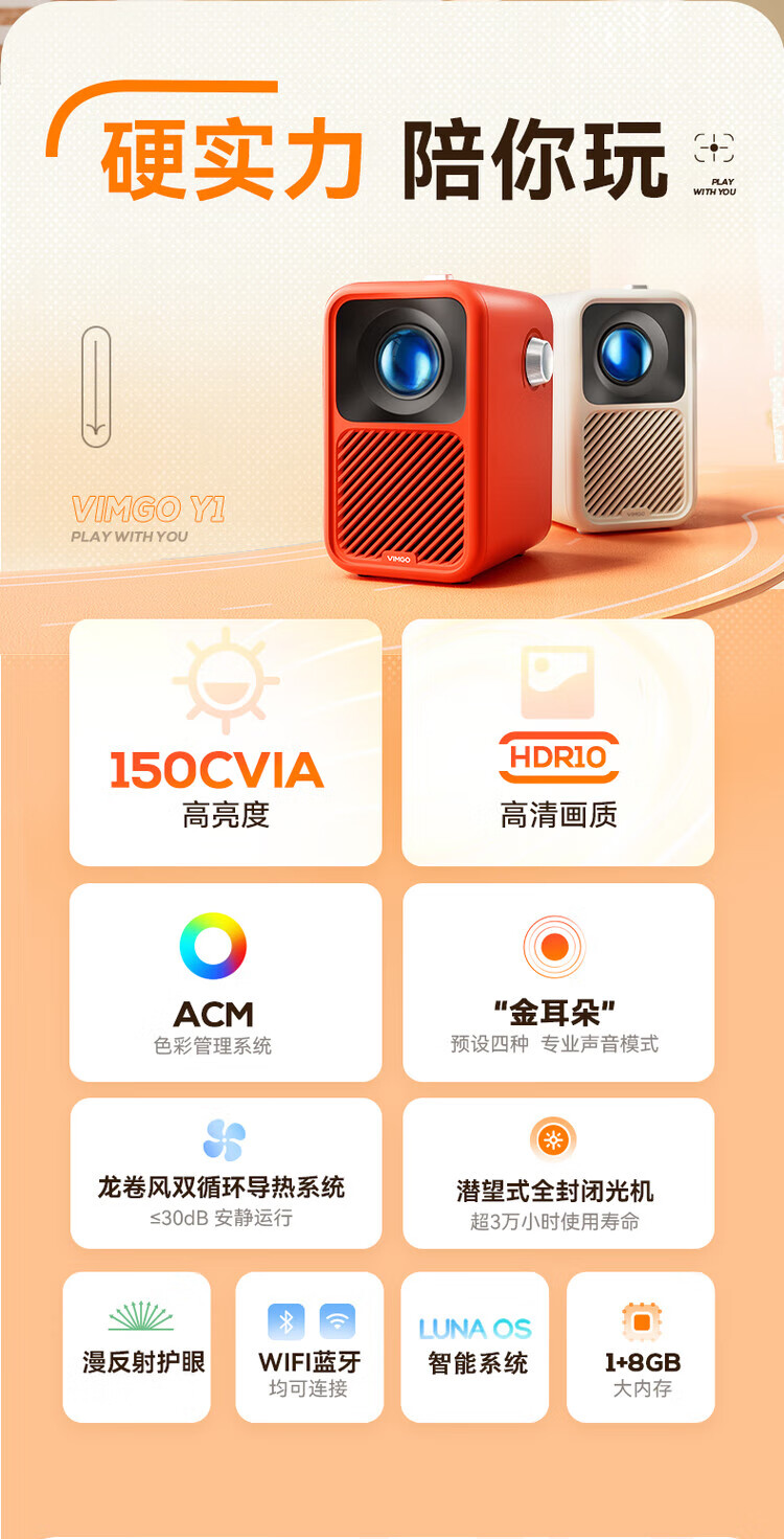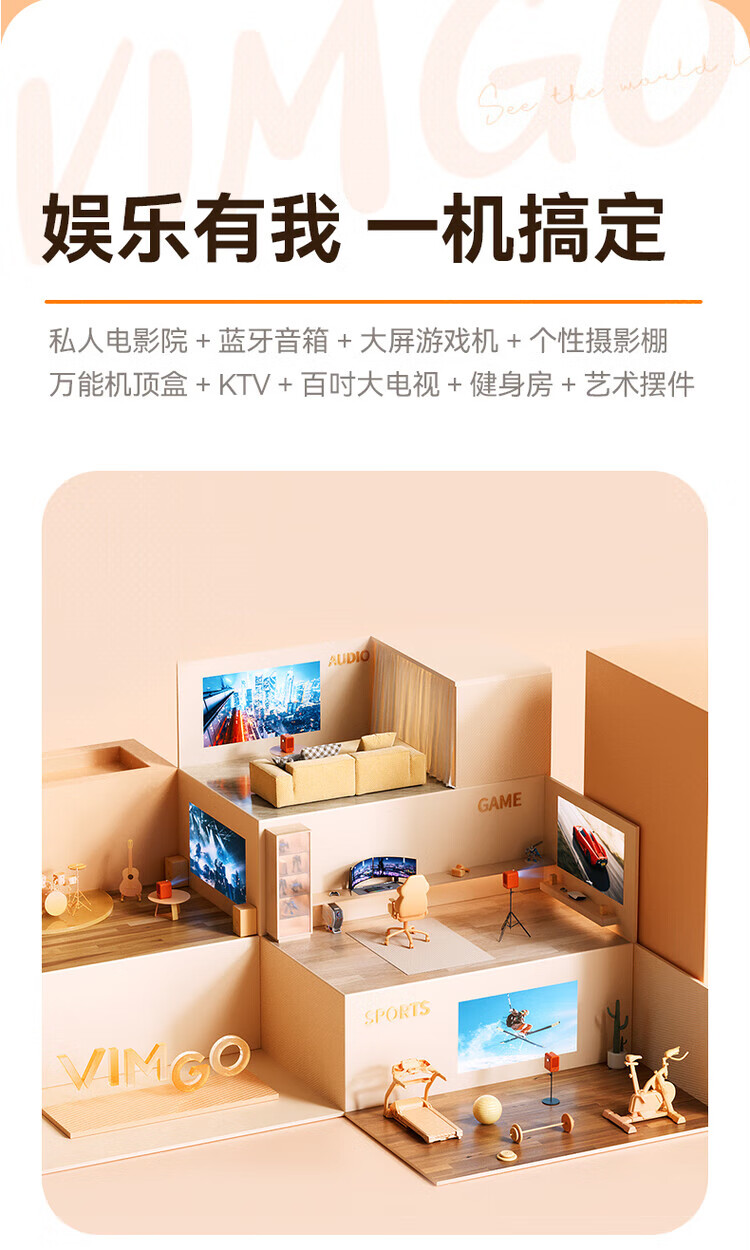 微果(VIMGO)Y1投影仪家用家庭影院小型便携投影机卧室办公智能手机投屏