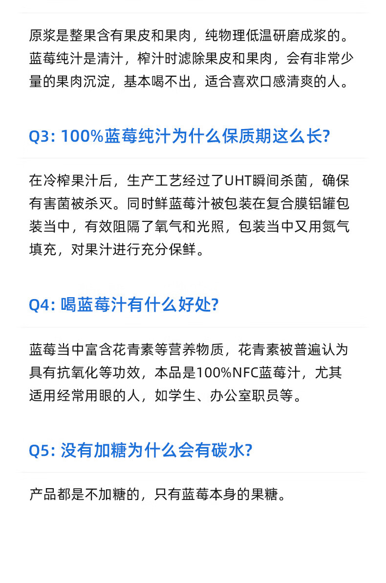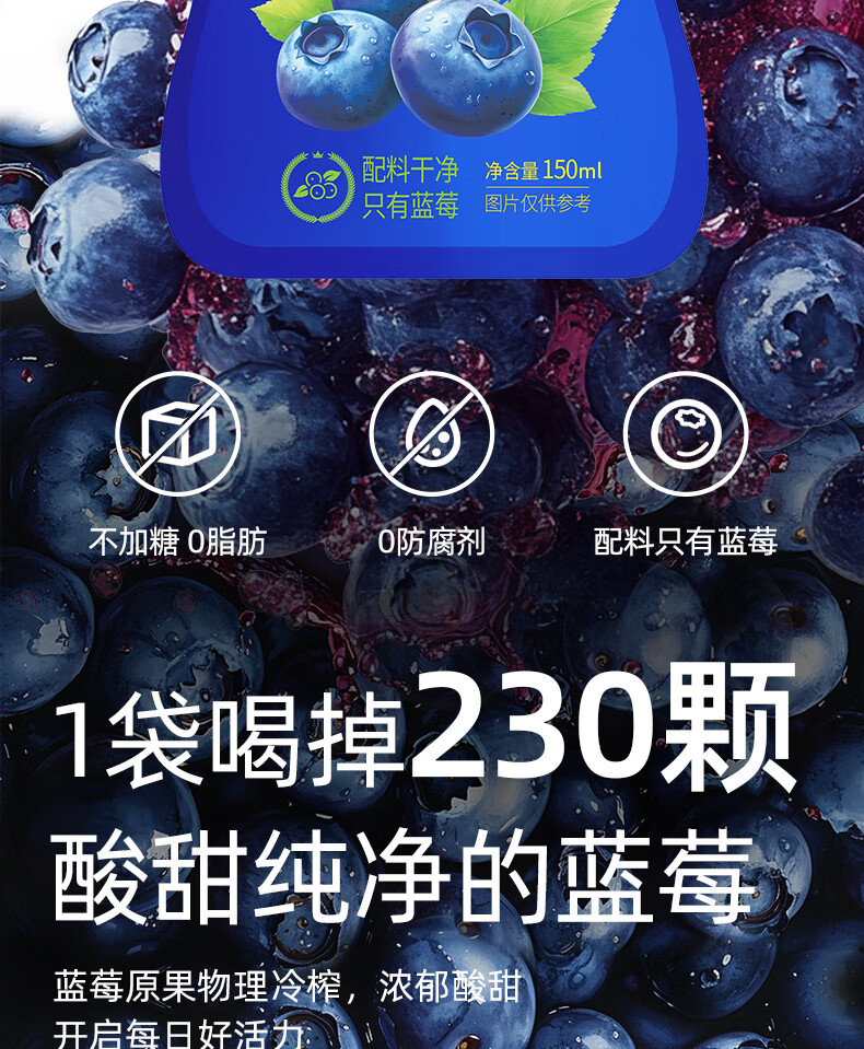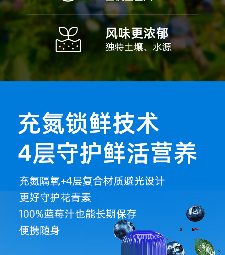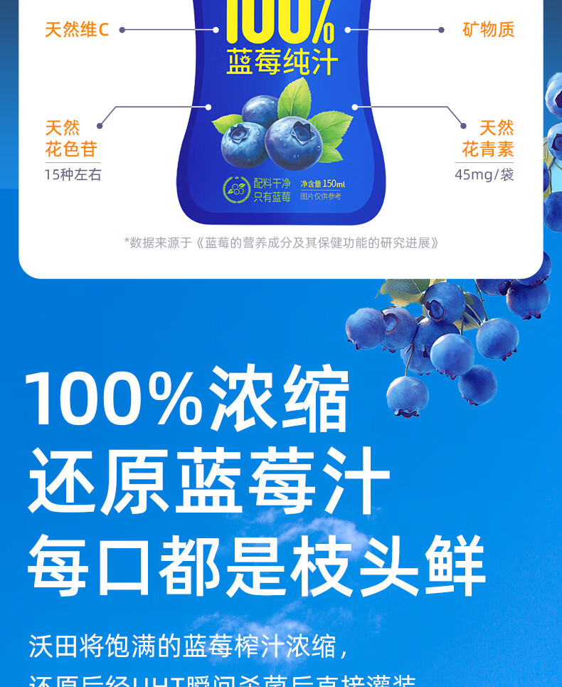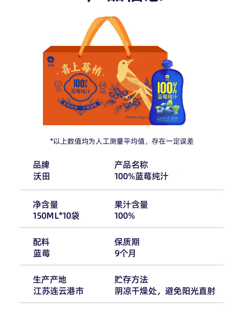 沃田喜上莓梢蓝莓纯汁150ml*10
