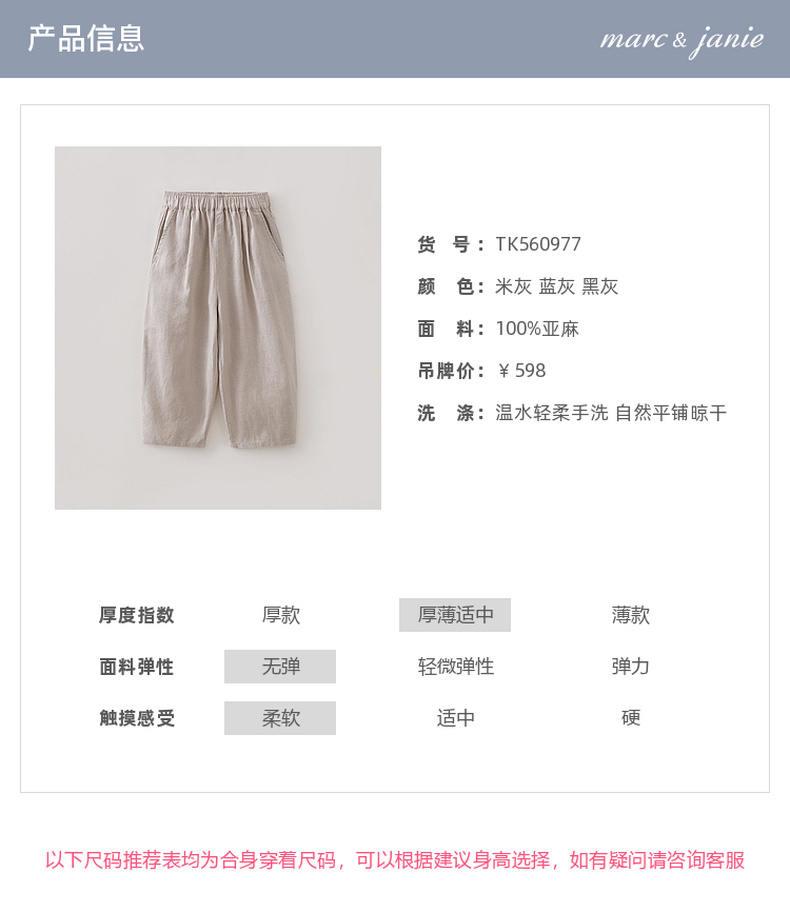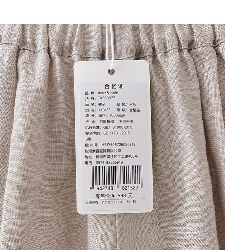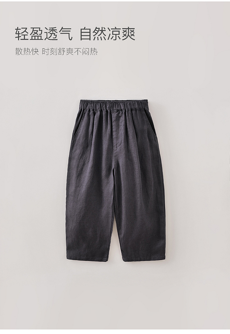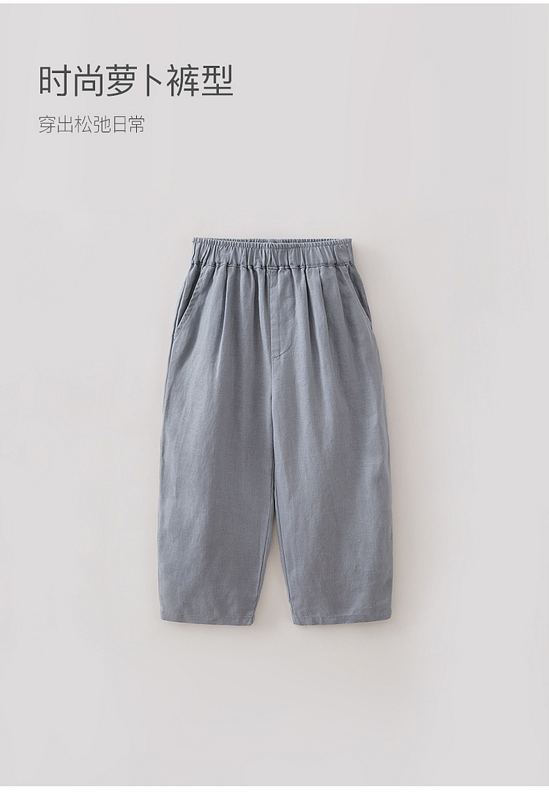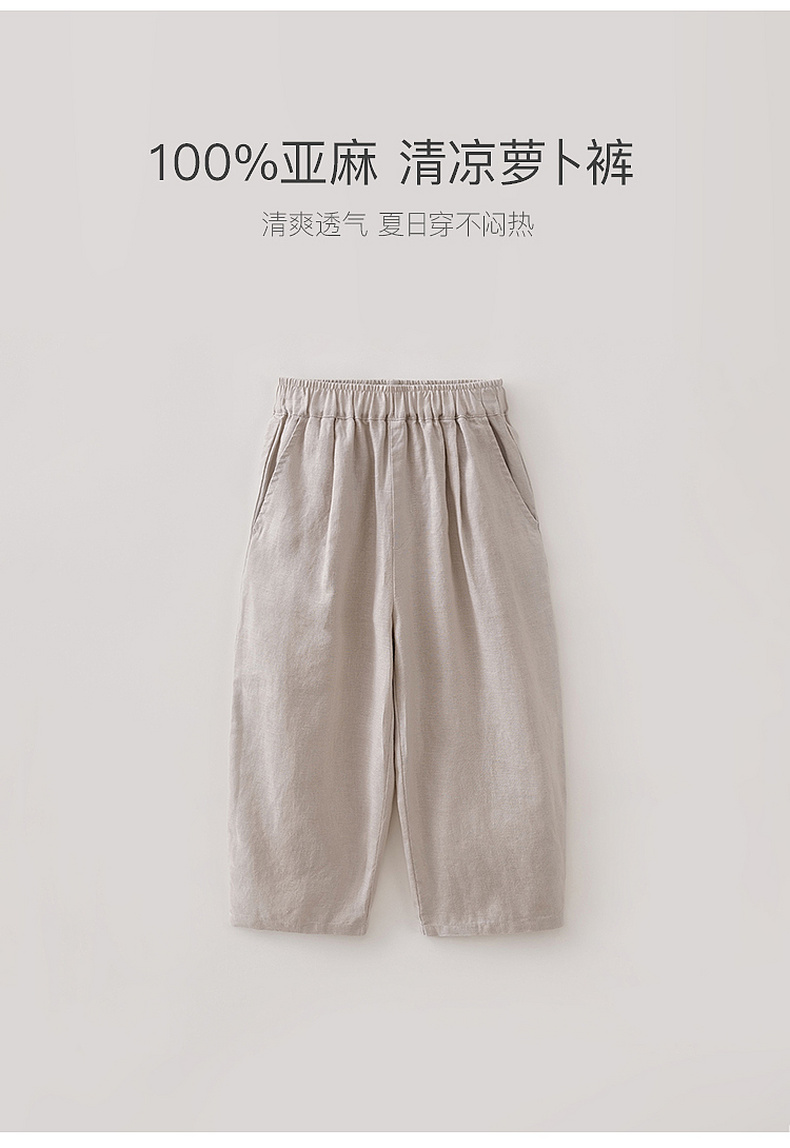 马克珍妮100%亚麻男童清凉萝卜裤2026年夏装新款560977