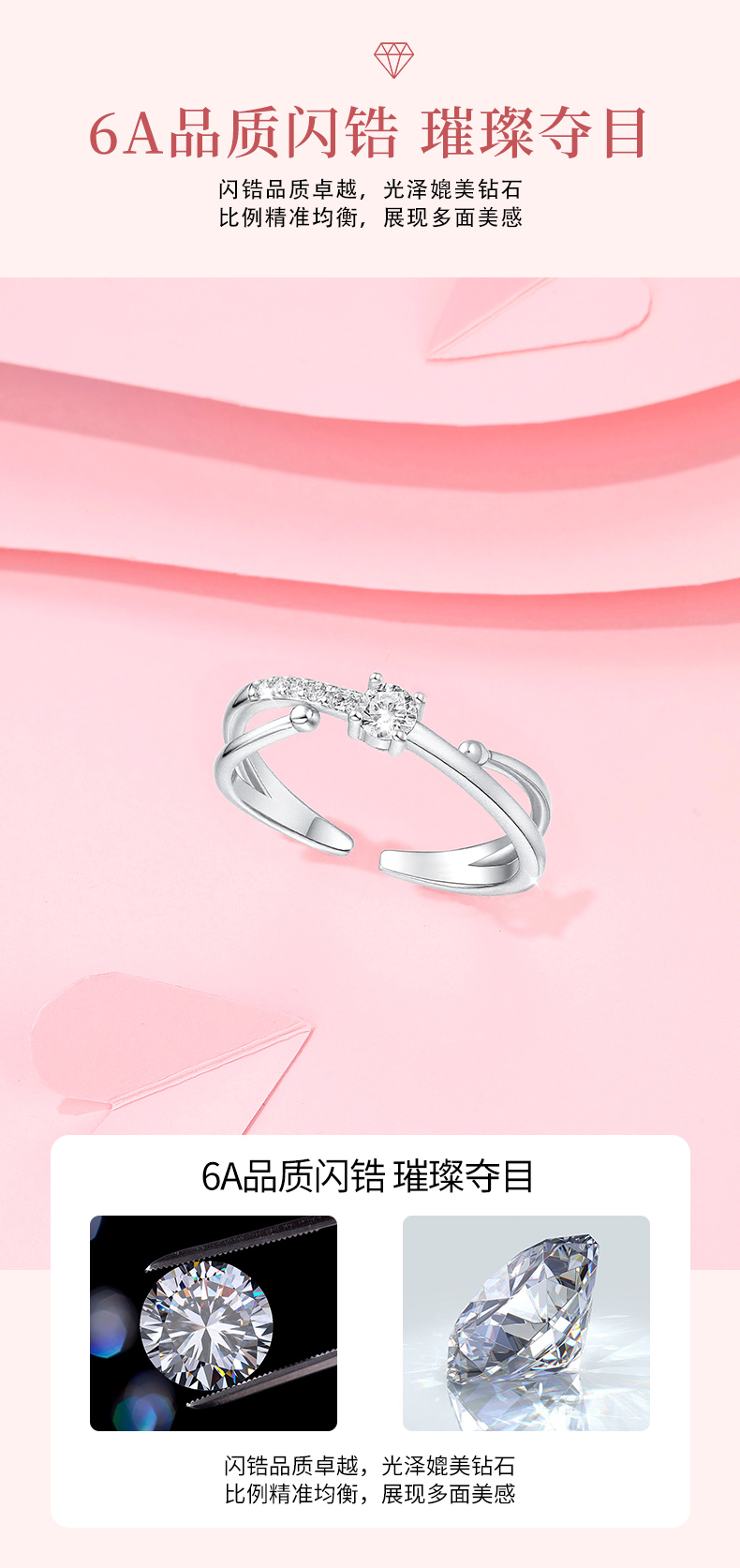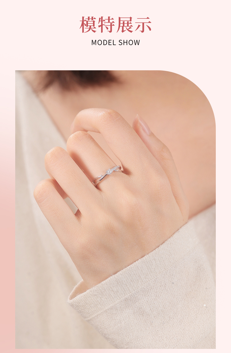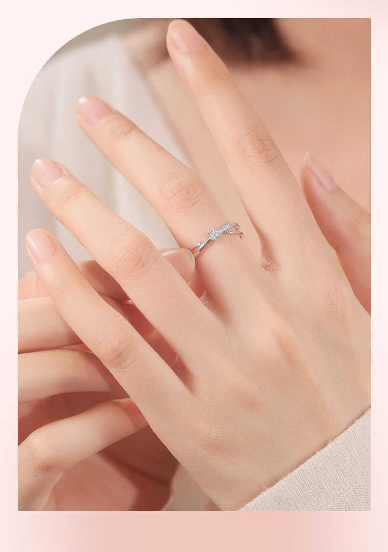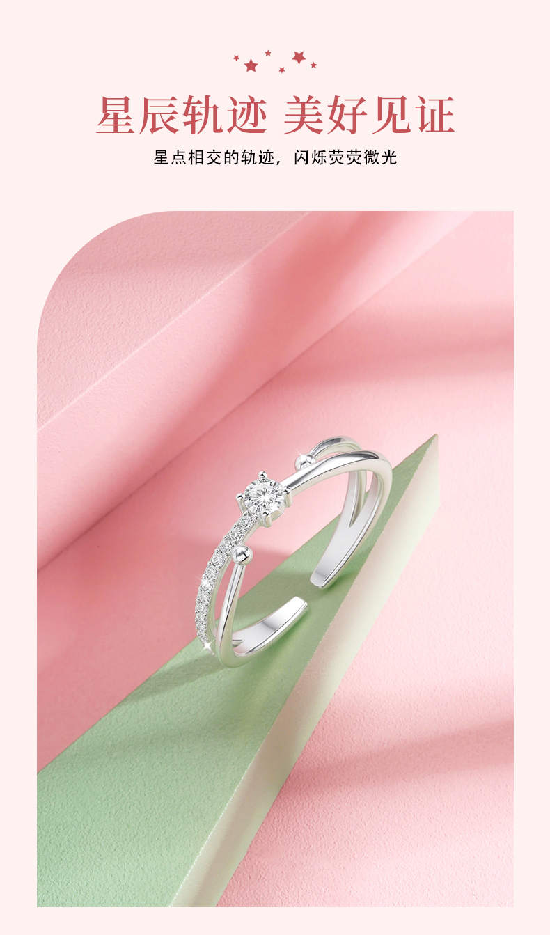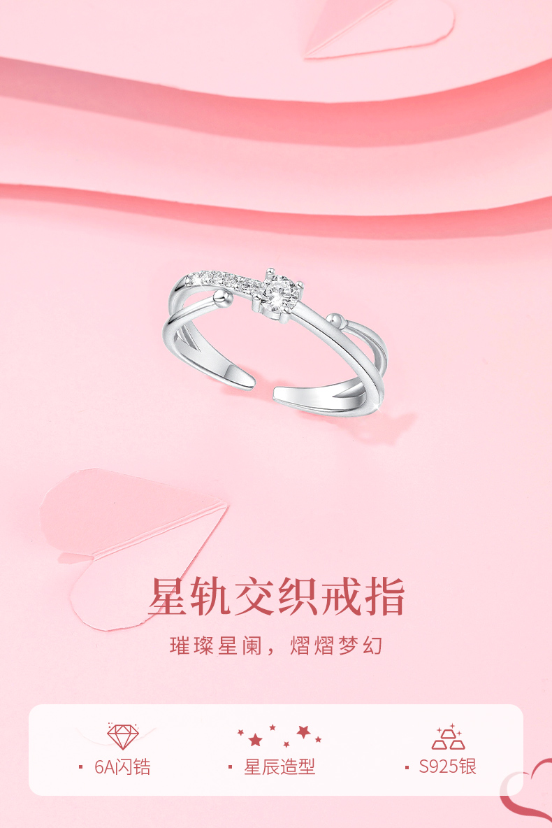 卡蒂罗/KADER 星轨交织戒指 恋爱羁绊心心相惜闪耀精致设计镶嵌大颗闪锆爱意交织可调节素圈戒 小众设计甜美可爱
