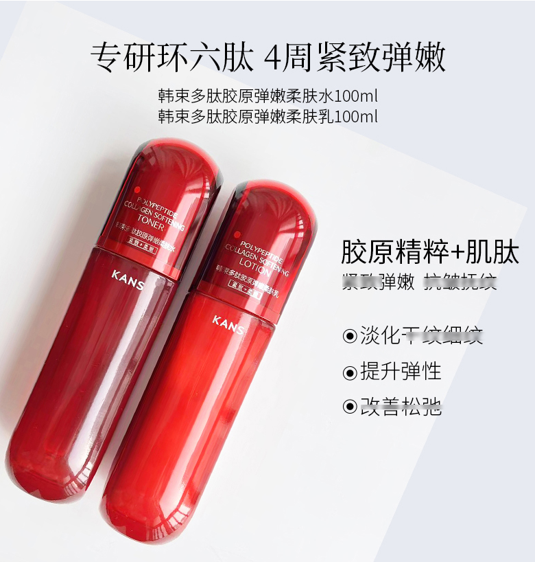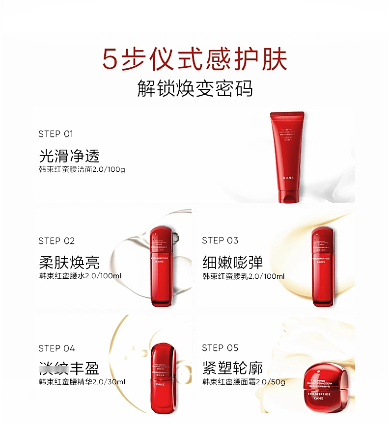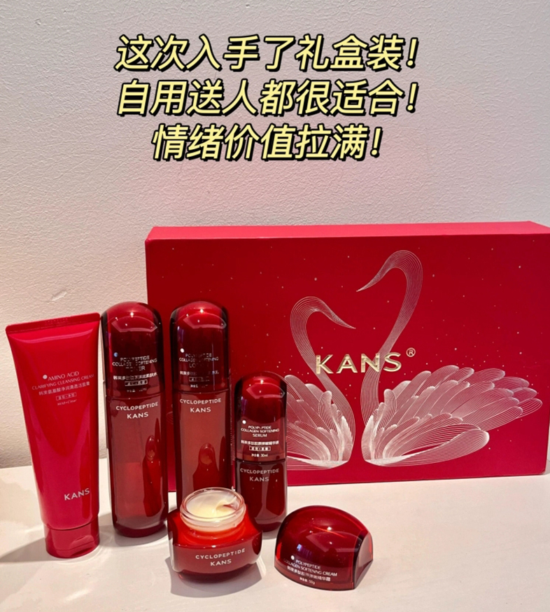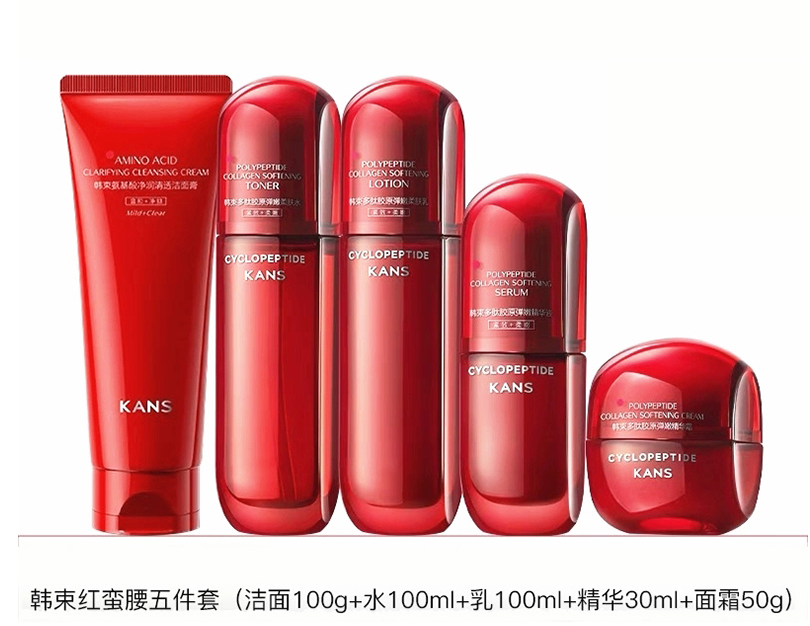 【新年礼】韩束红蛮腰礼盒2.0小天鹅版五件套,针对熬夜、脸部有干文松垮肌肤 ,改善暗黄 添加“环六肽”成分针对胶原流失,有效淡化干文细文,减缓皱文产生,像给皮肤底层搭支架,把松垮的皮肤一点点托起来。