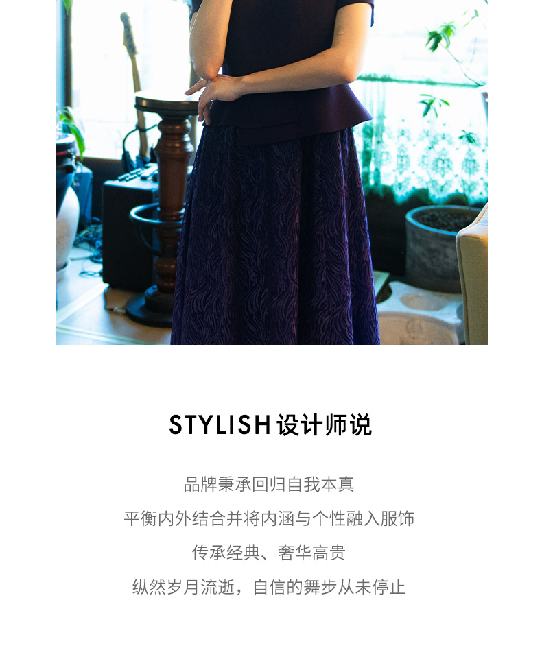 成熟、稳重、高贵典雅、大方得体 融合东方文化的含蓄和法国的浪漫 将创意的艺术性与消费需求相结合 为自信女性塑造高品质场合服装