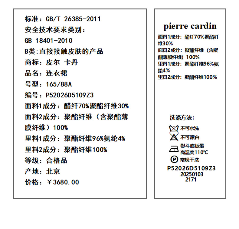 皮尔卡丹女装连衣裙P52026D5109Z3