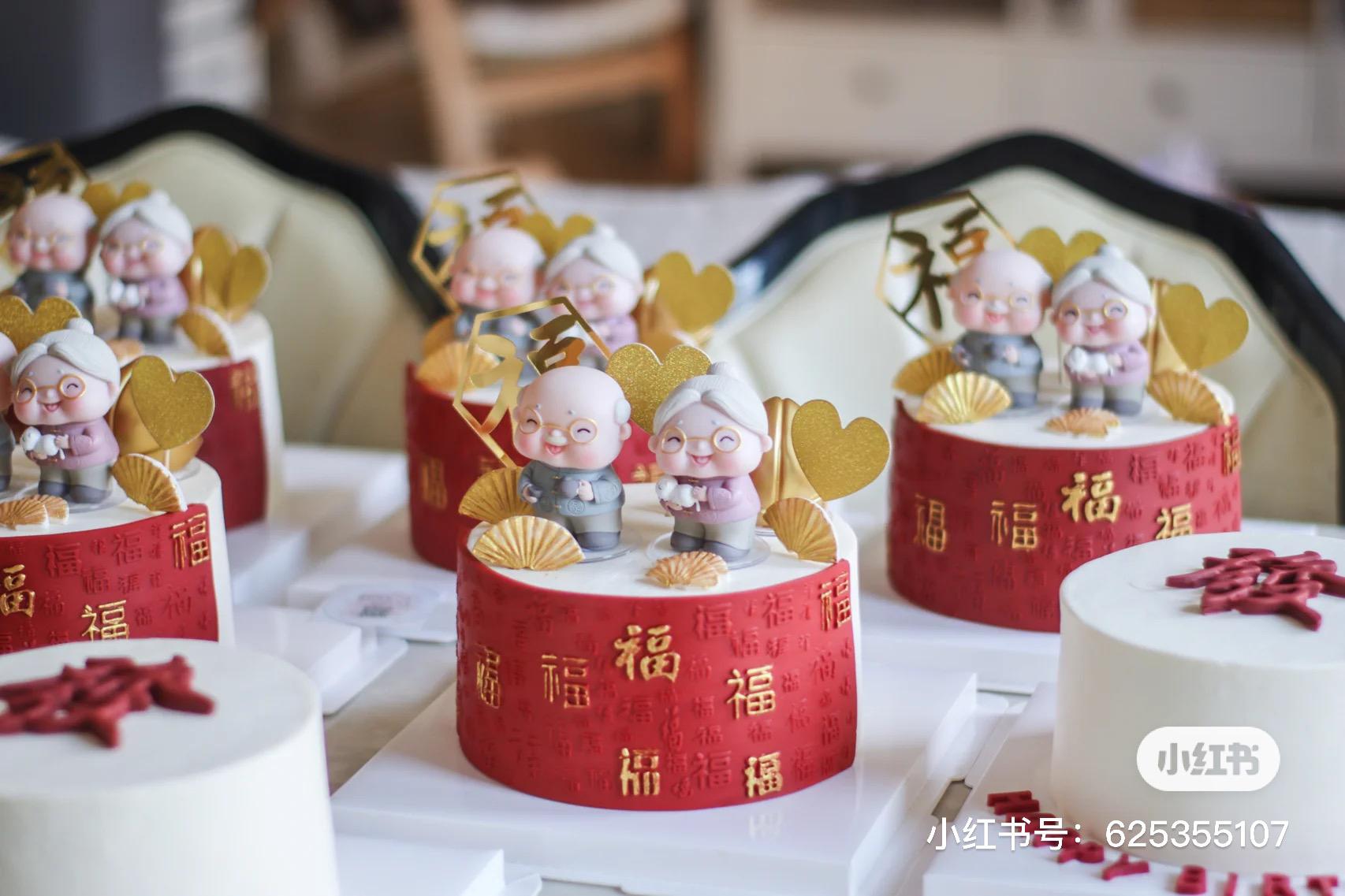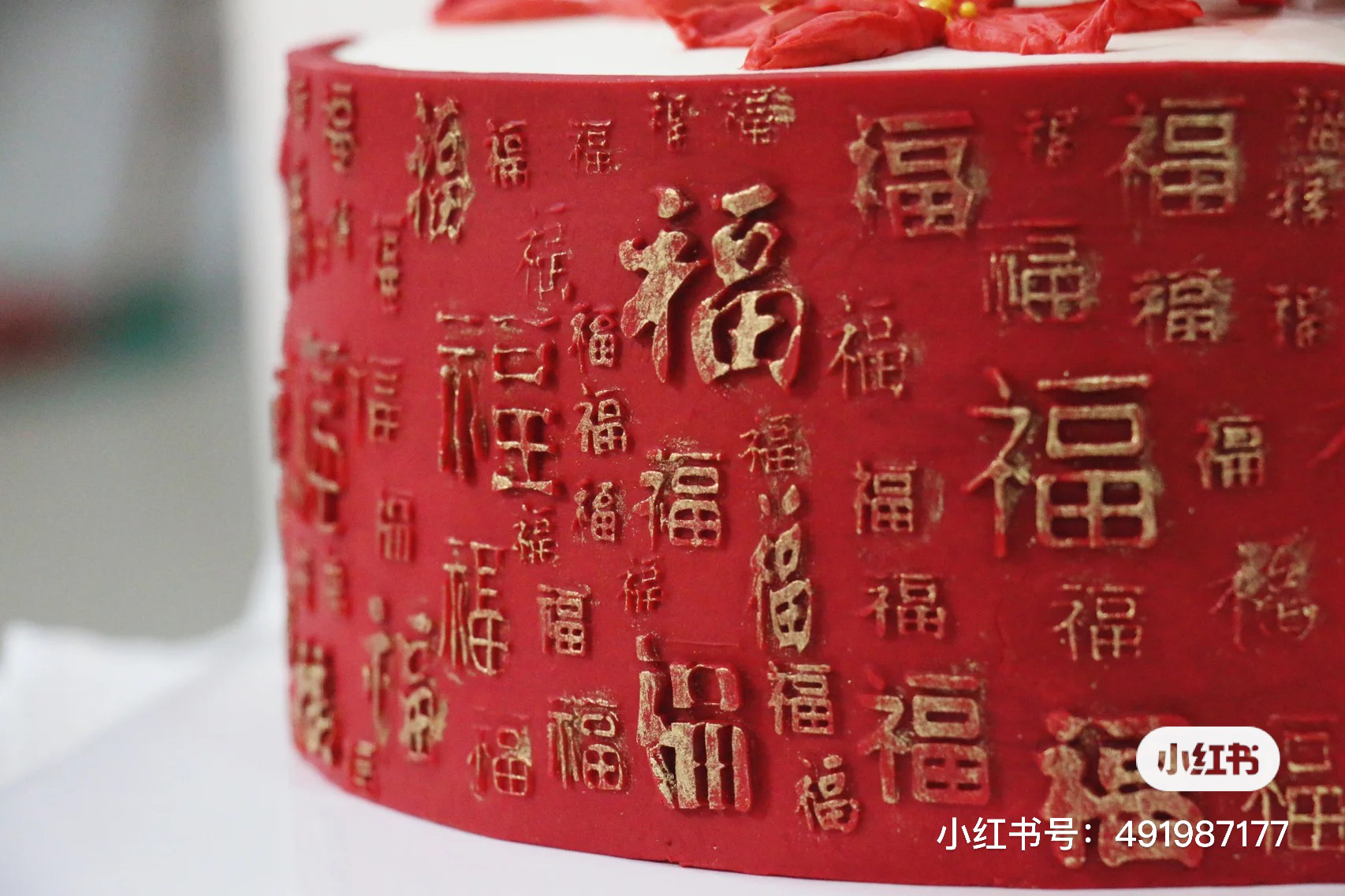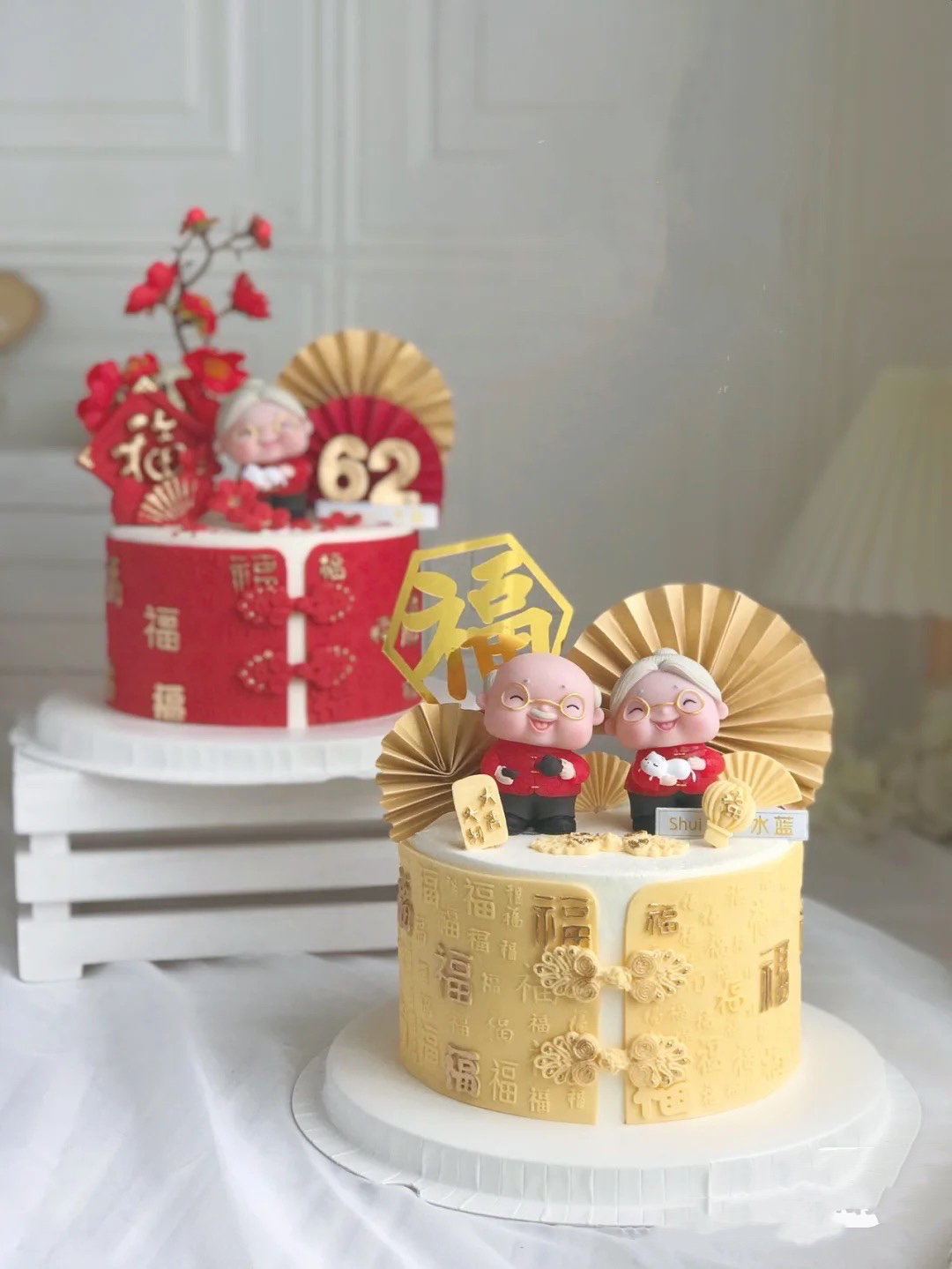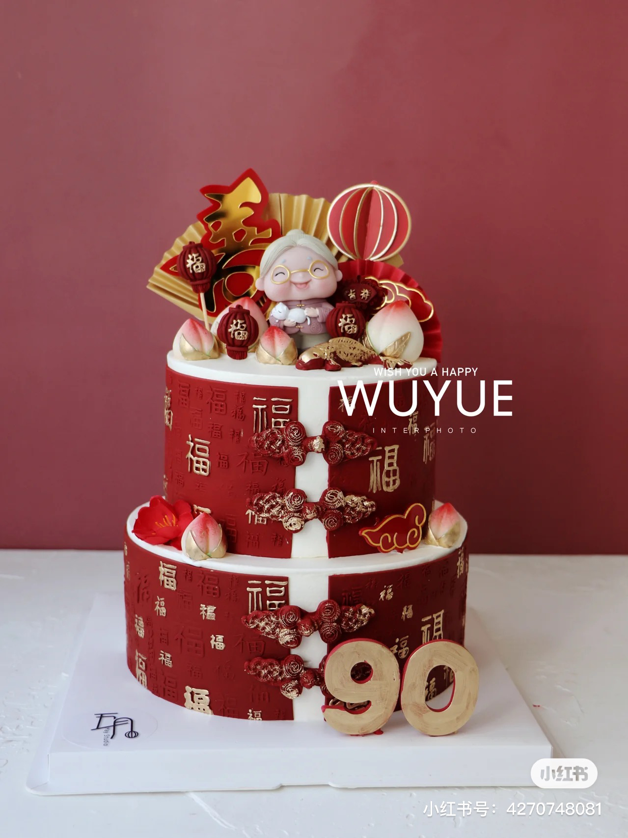 寿星:中国风翻糖蛋糕+奶油,百福寿星,福寿绵长,手工翻糖制作百福围边可食用,请提前48小时以上预订