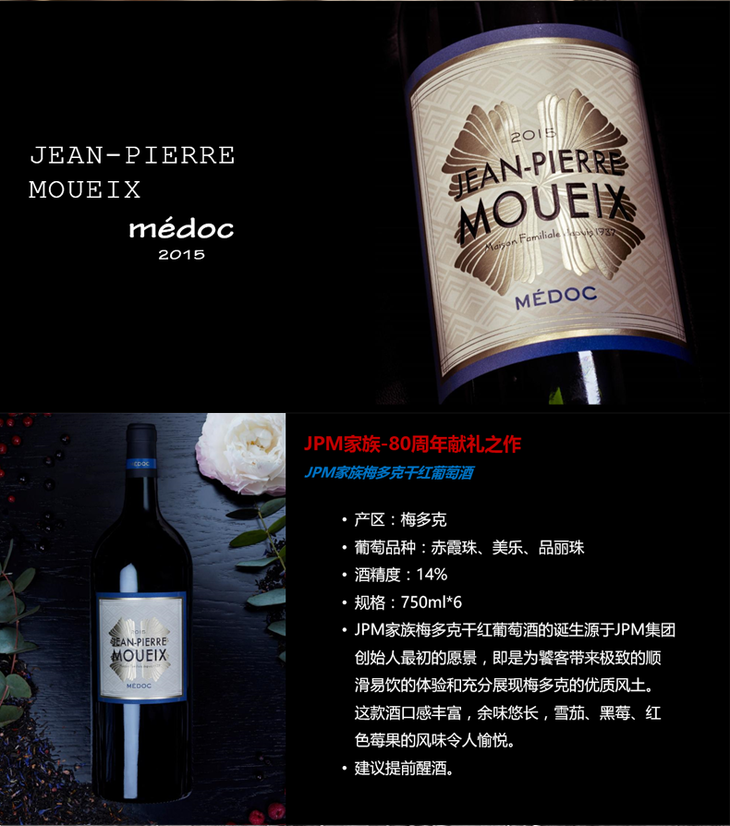 JPM家族梅多克干红葡萄酒(750mL)