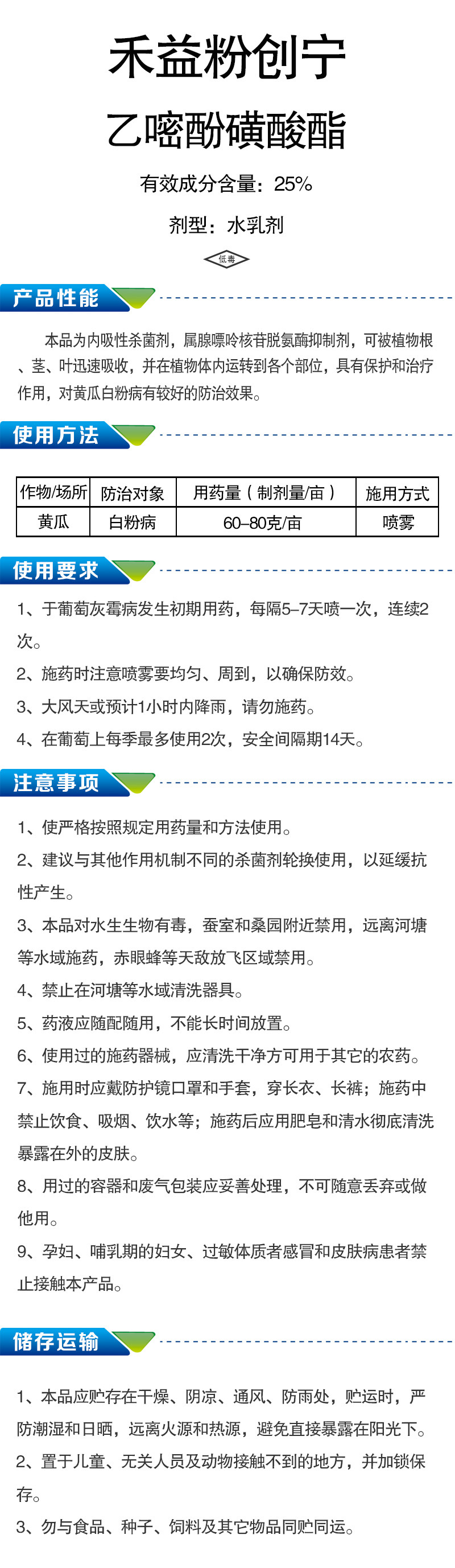 粉创宁 乙嘧酚磺酸酯 对葡萄白粉病有较好的防治效果