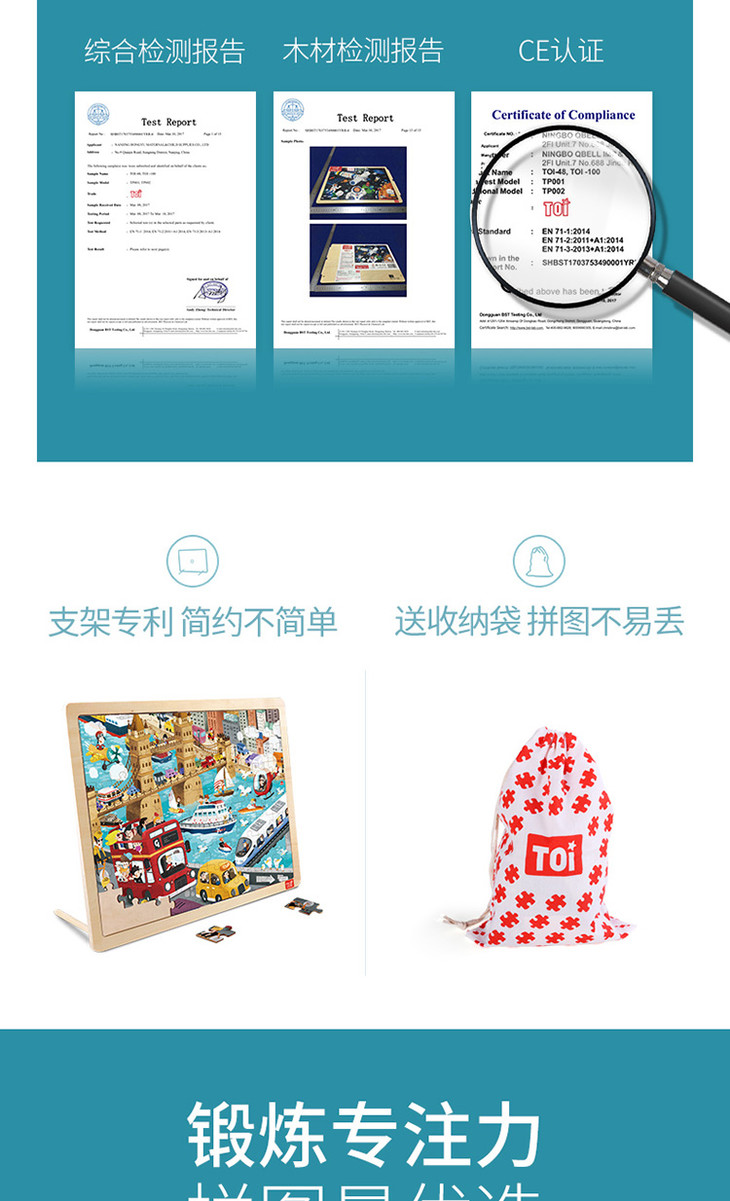 TOi拼图100片儿童木质益智玩具宝宝大块拼板男孩女孩