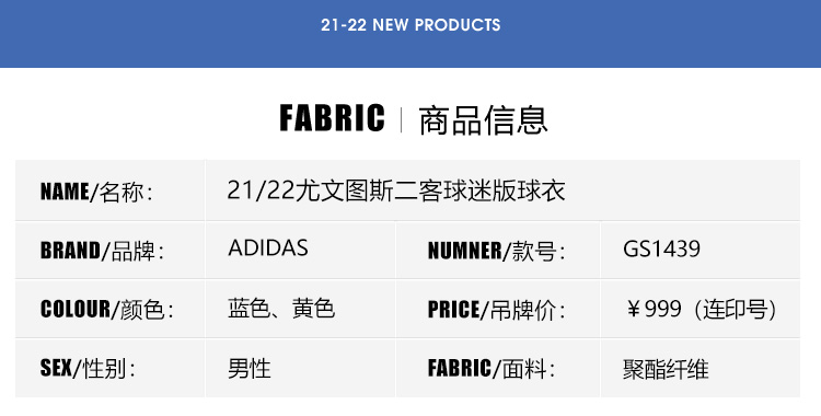 SFS阿迪达斯正品21-22尤文图斯二客球衣 球迷版短袖足球服 GS1439