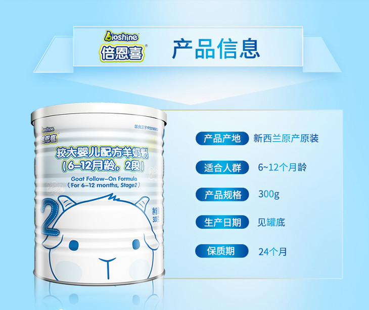 倍恩喜较大婴儿配方羊奶粉2段300克