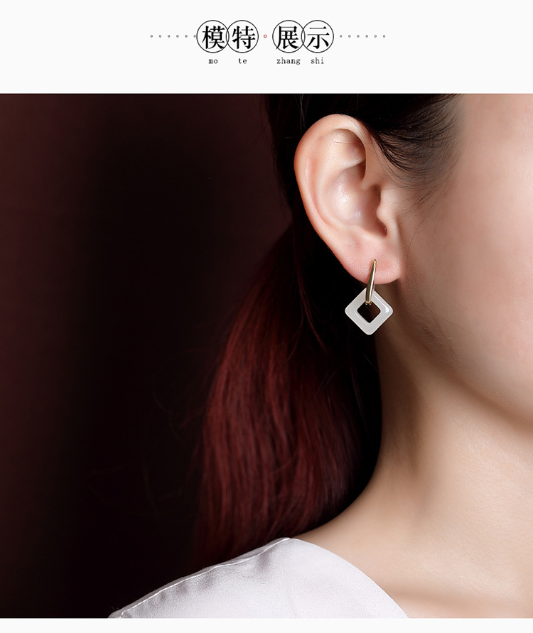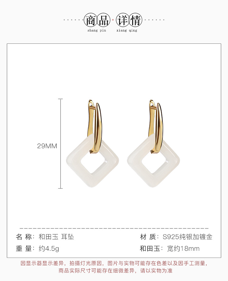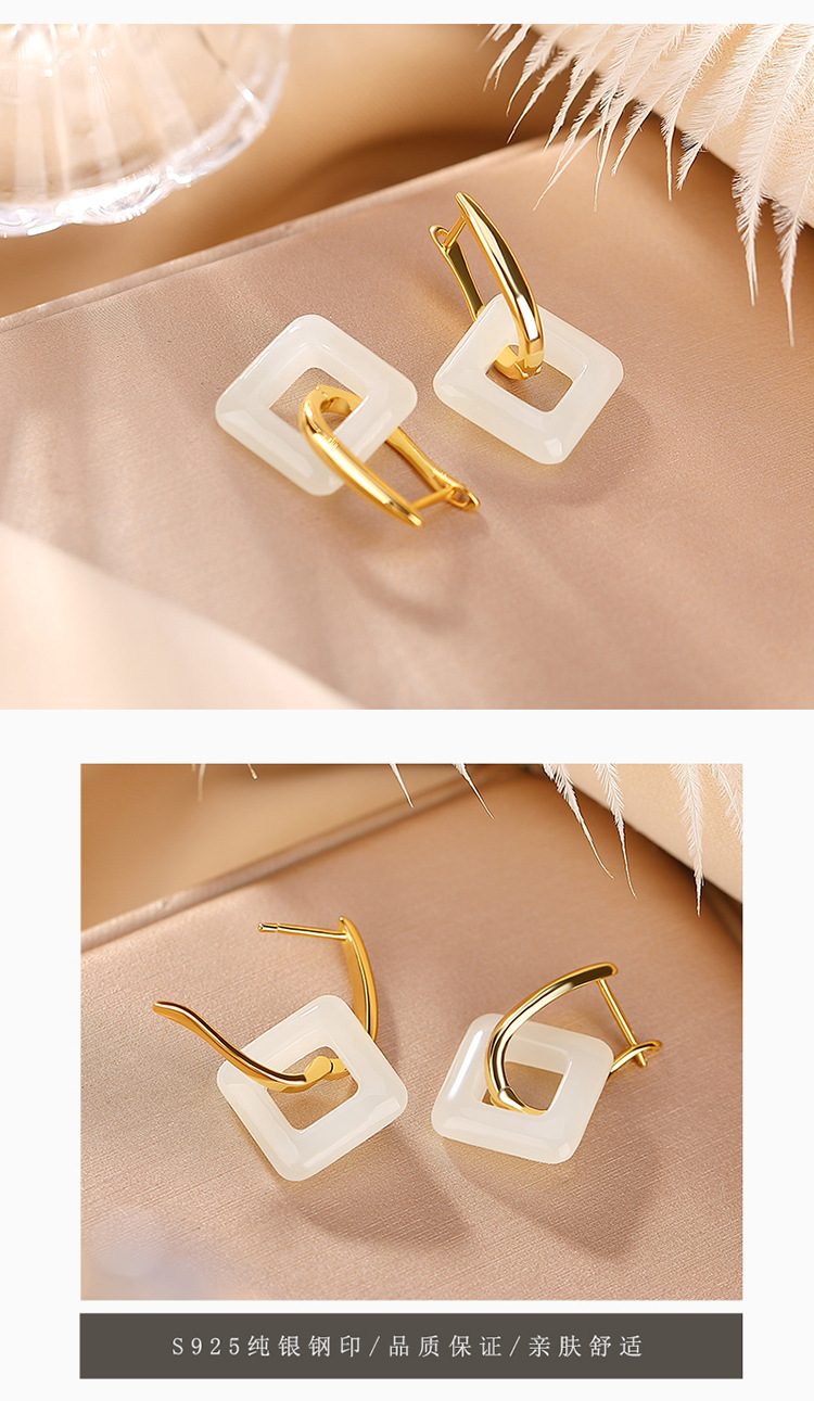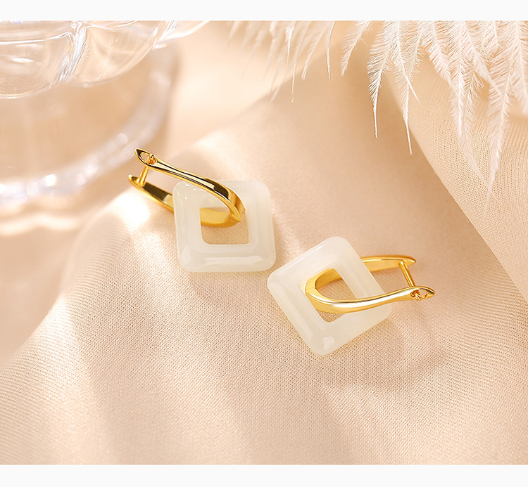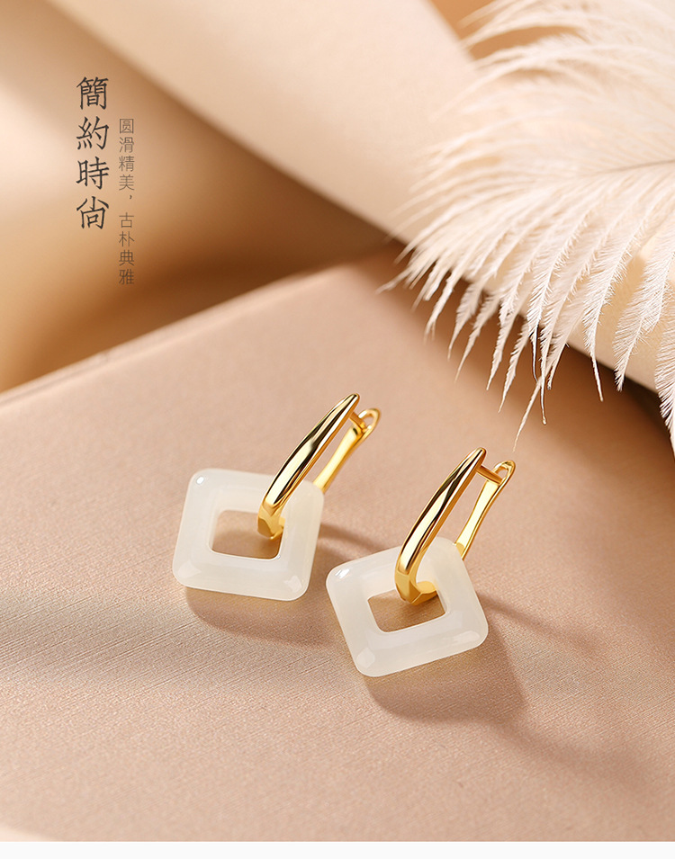 【长亭旧雪】S925银镀金和田玉几何方形耳饰【CW-EJ00291】