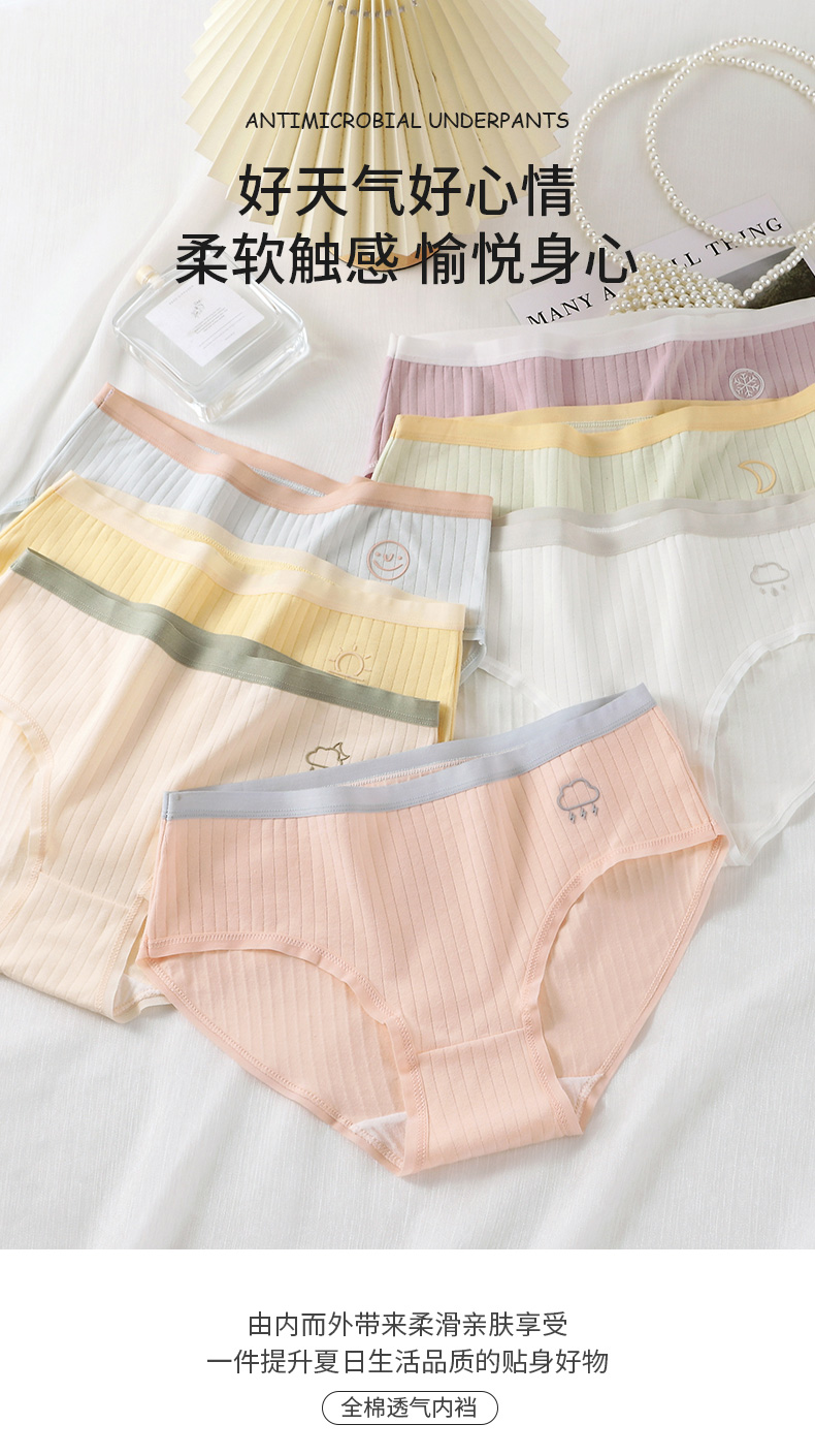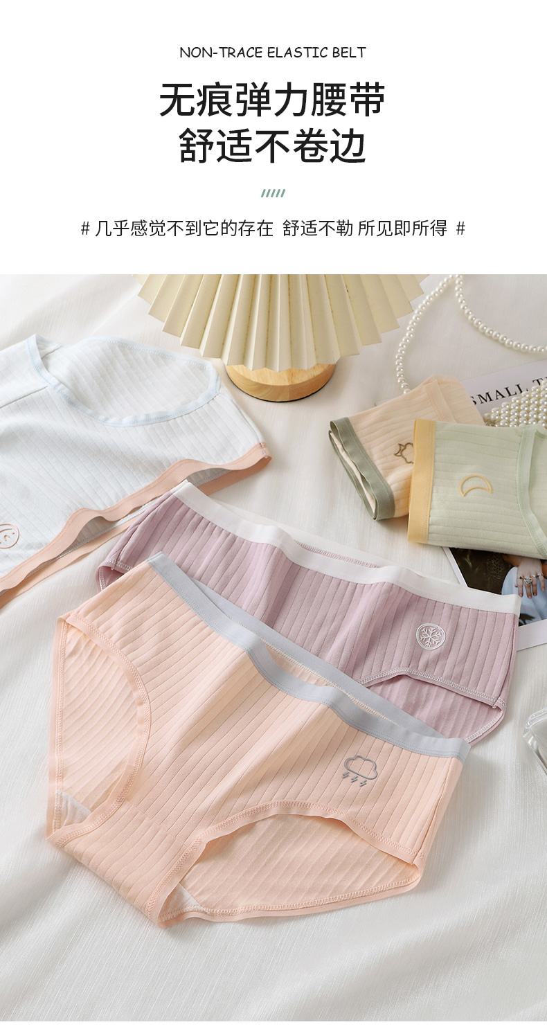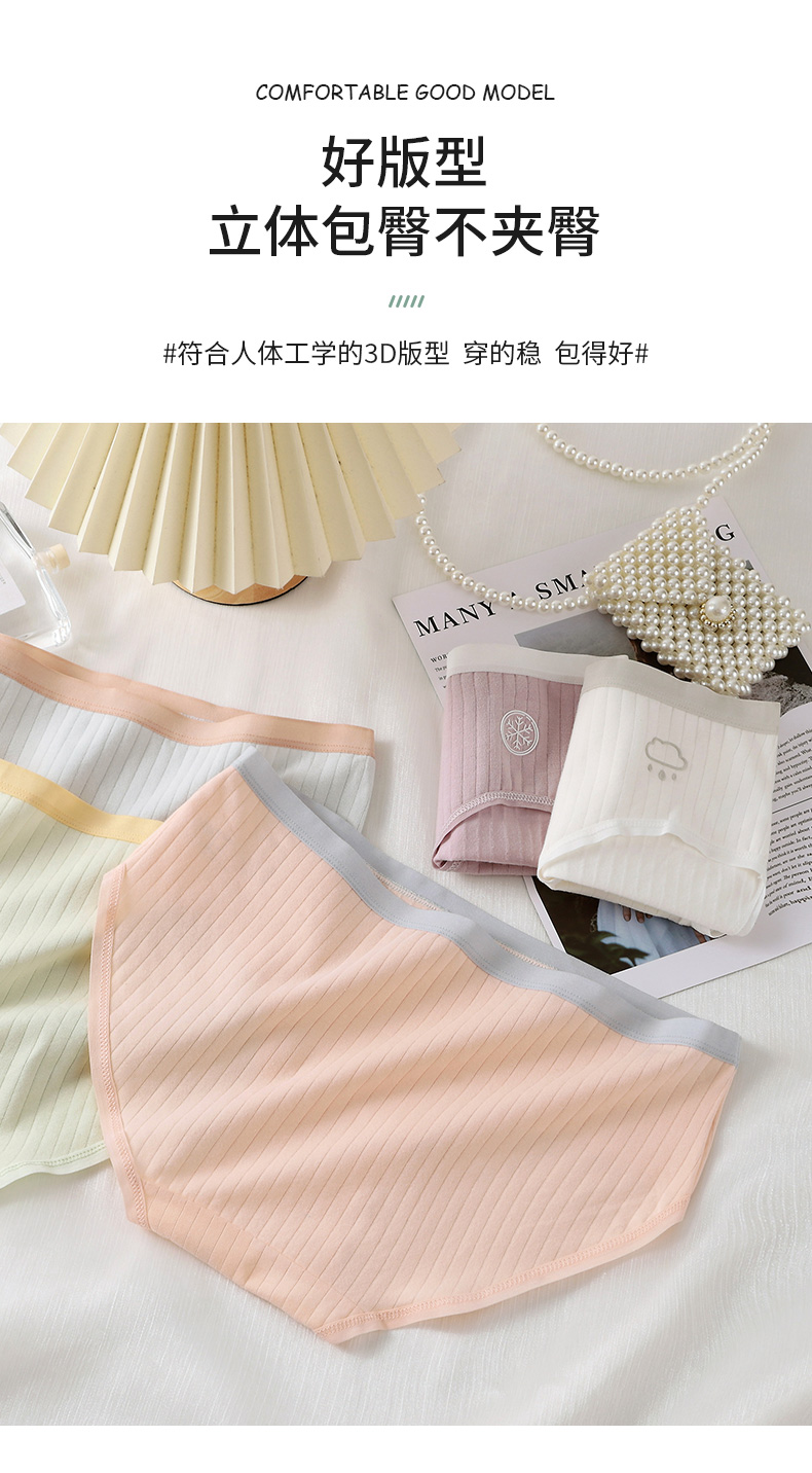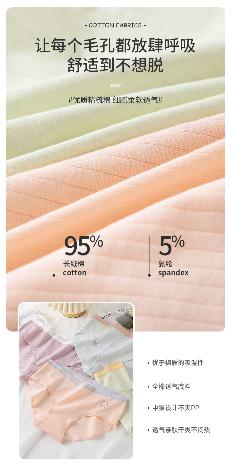 洁丽雅5条装中腰纯棉女士内裤少女色系舒适亲肤高弹三角裤