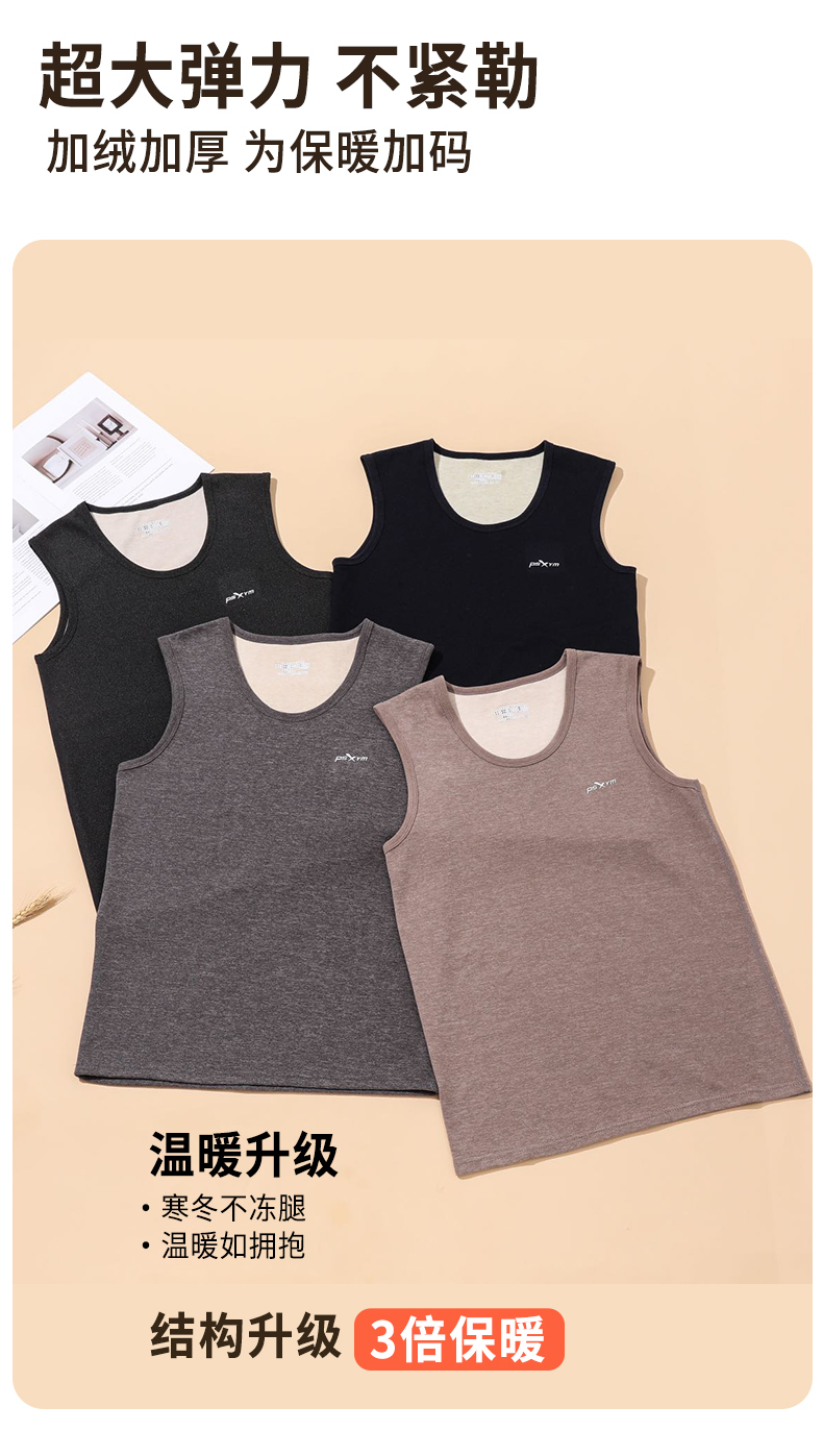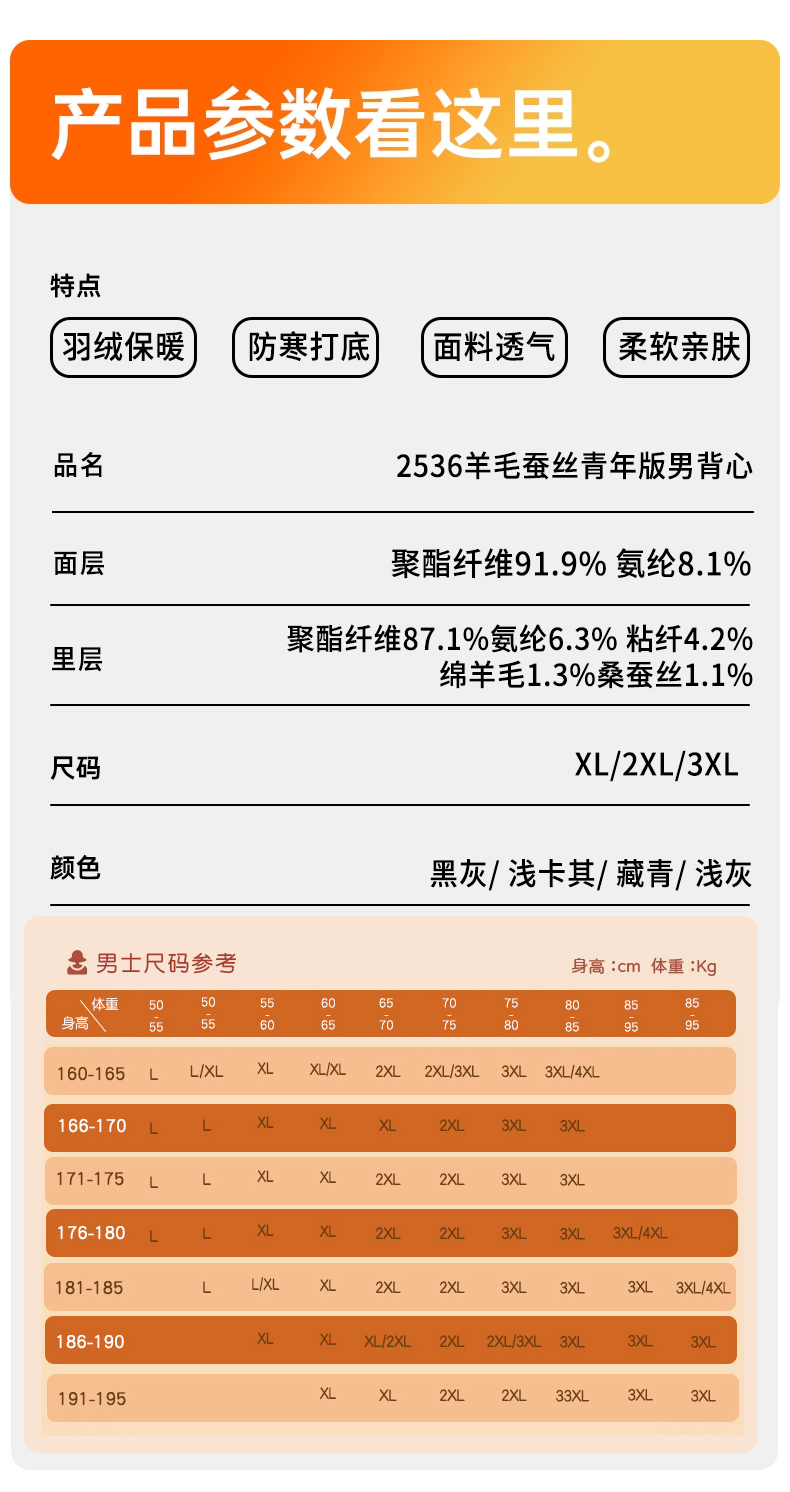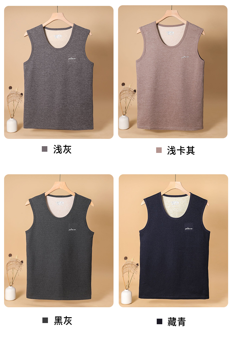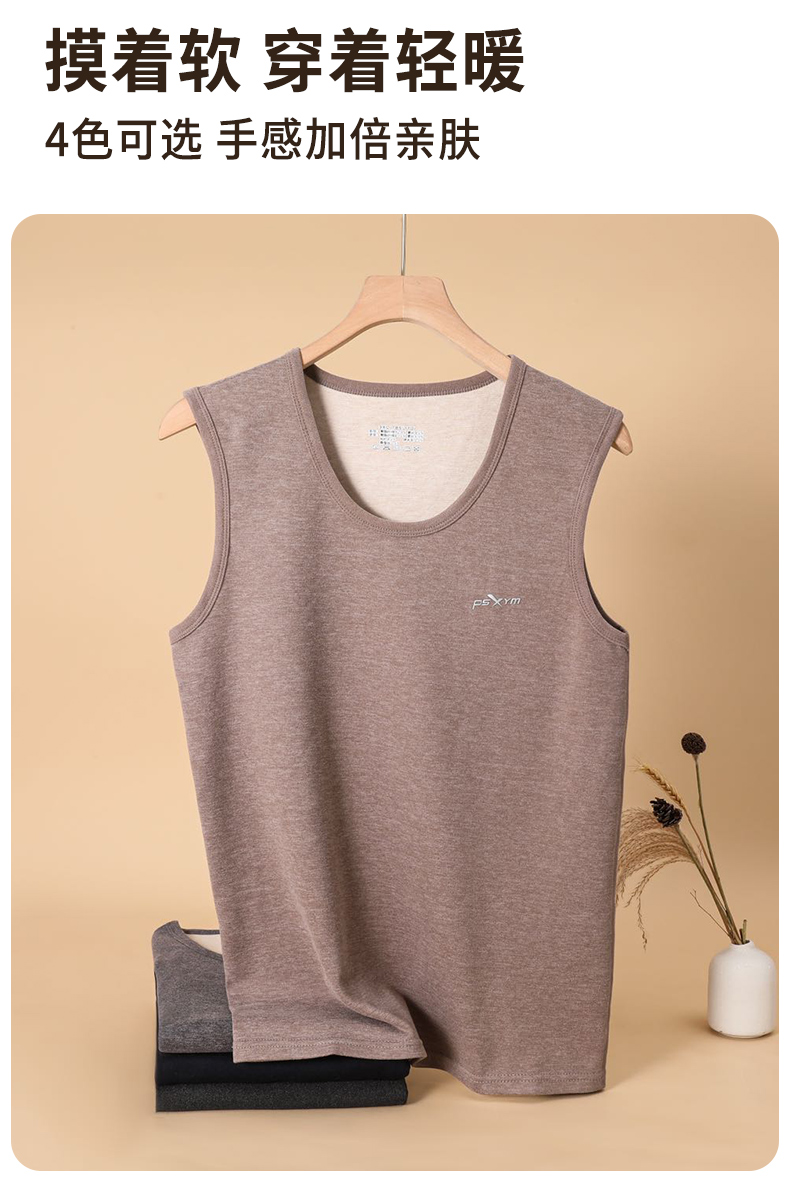 秋冬保暖加绒加厚聚暖羊毛蚕丝男士打底背心2536