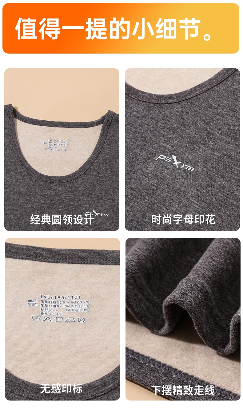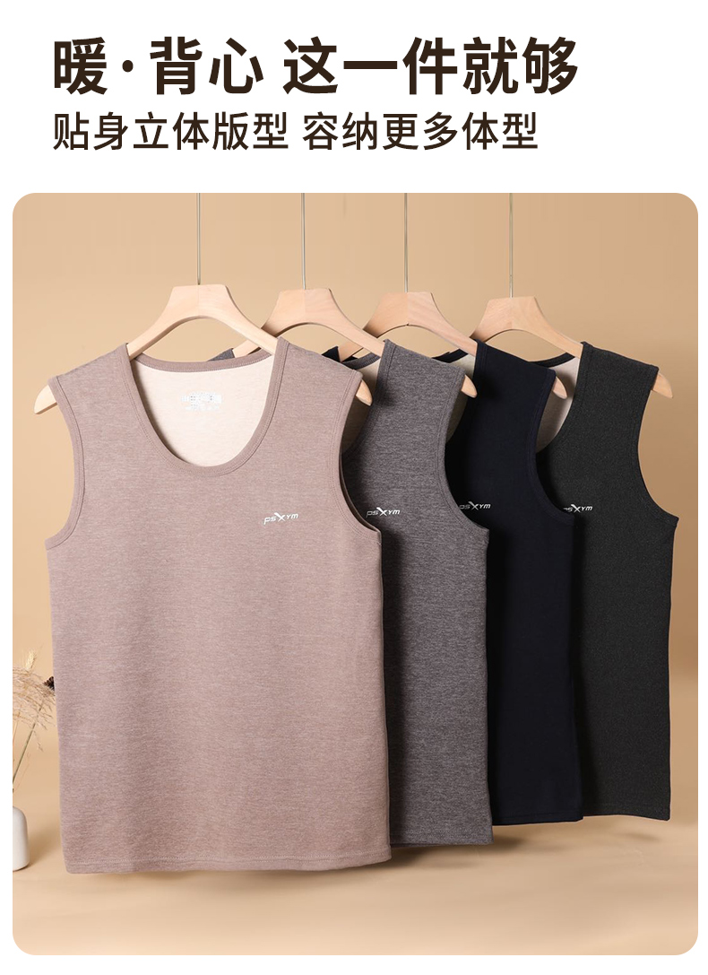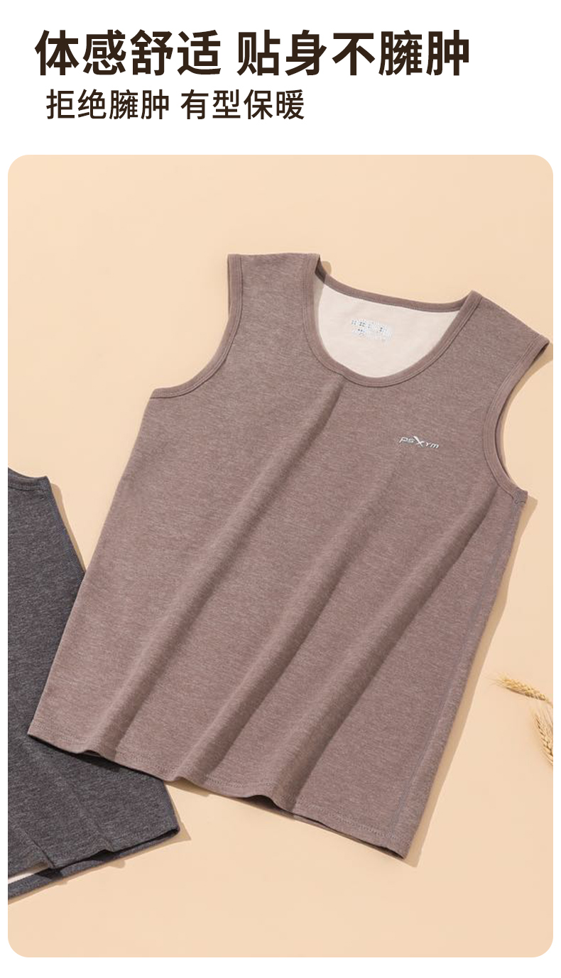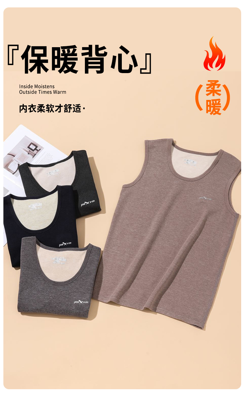 秋冬保暖加绒加厚聚暖羊毛蚕丝男士打底背心2536