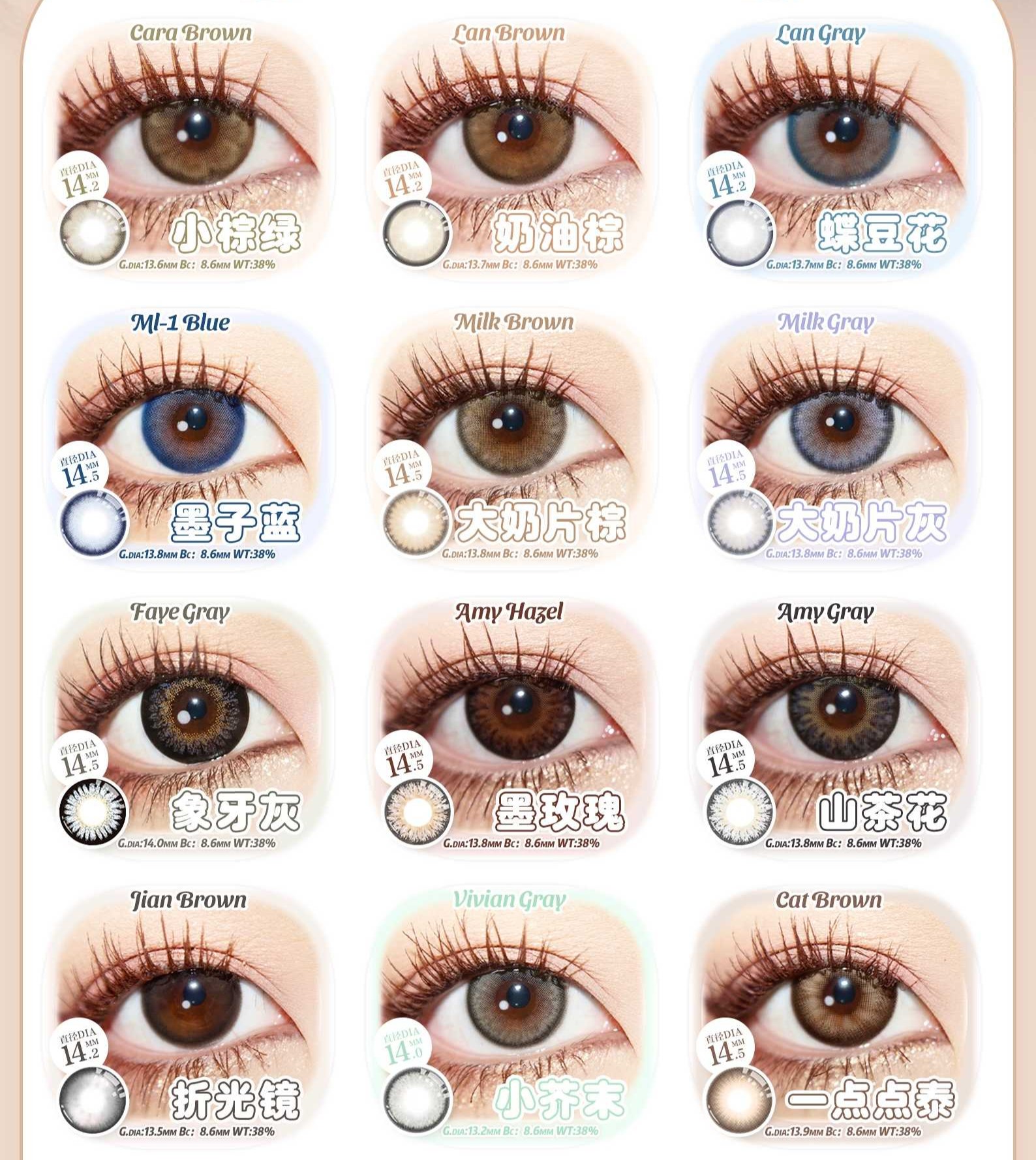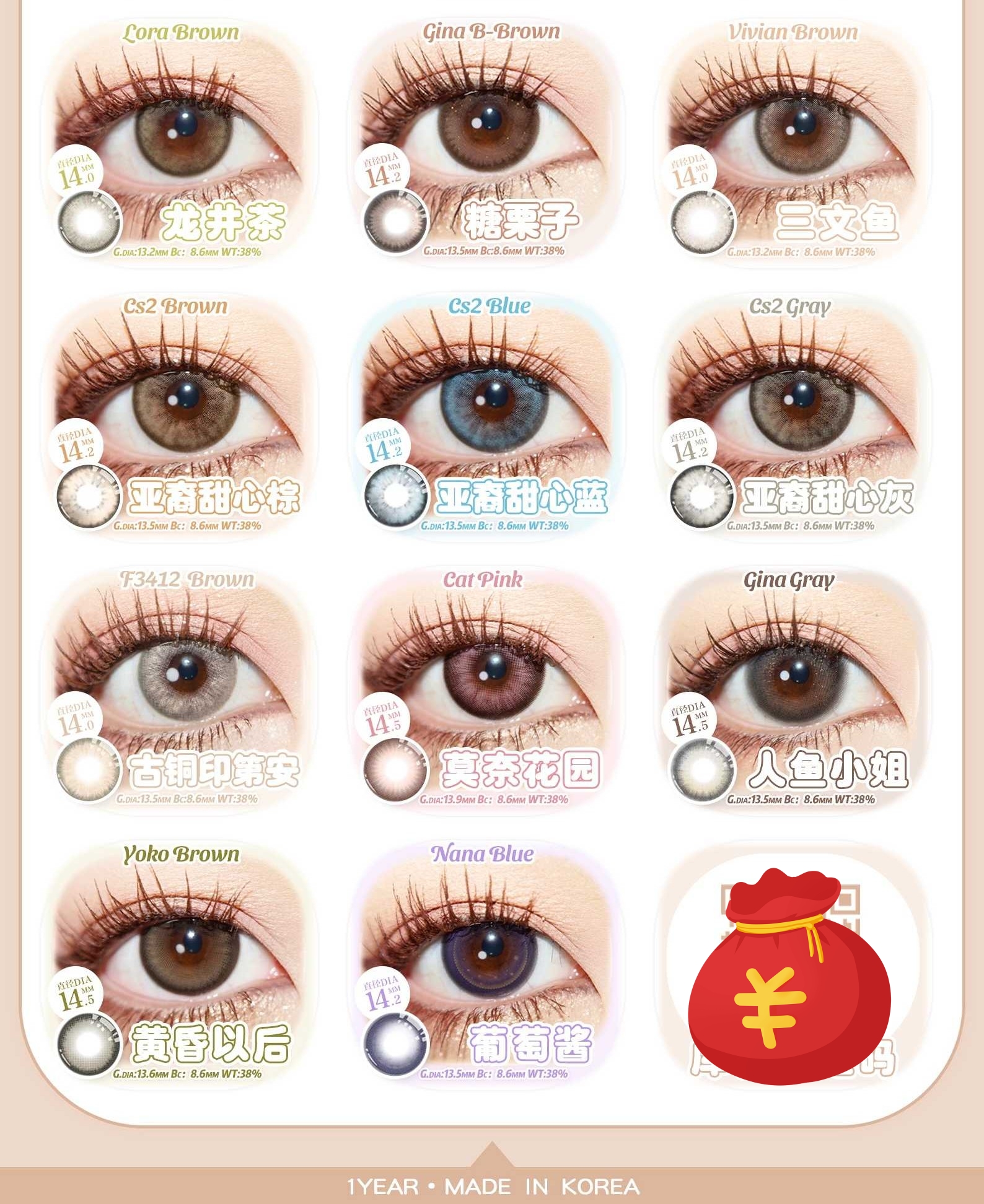 Leenscolor正品年抛清仓39/副100/3副,小棕绿奶油棕蝶豆花墨子蓝大奶片棕,最高度数1000