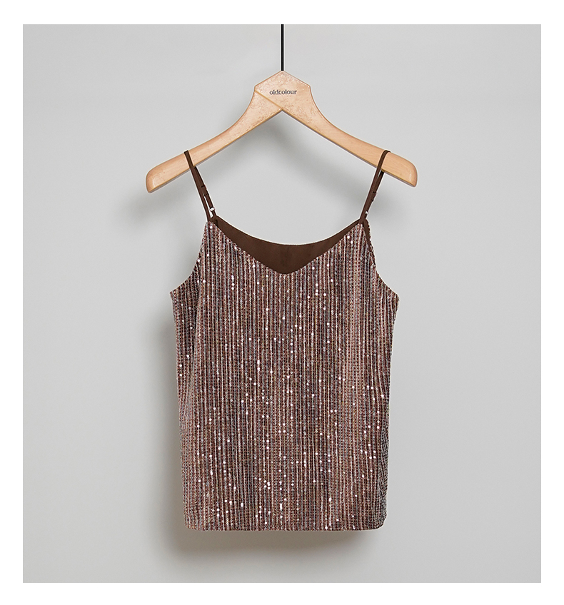 oldcolour亮片设计感气质V领内搭吊带背心女N30008011