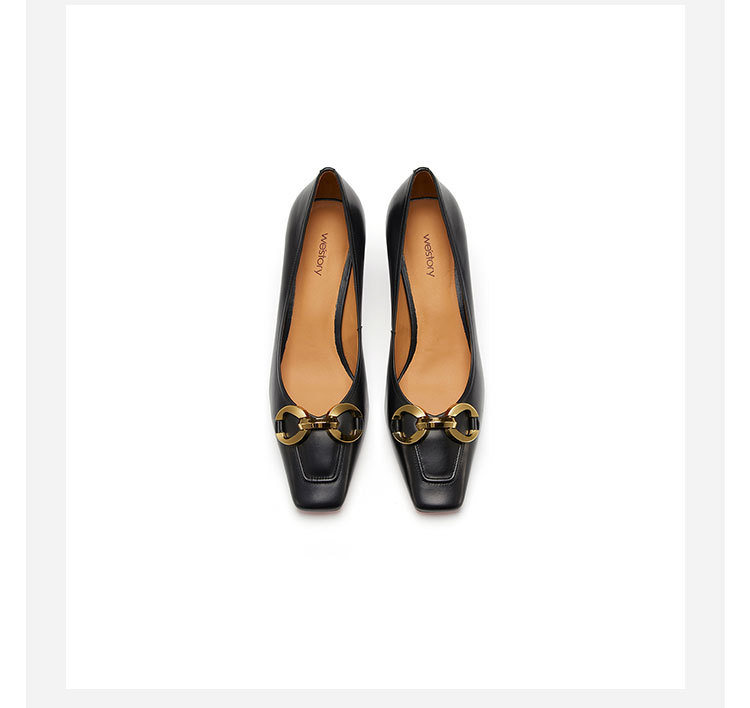 westory2018年冬季新款皮鞋内里加绒粗跟单鞋毛毛鞋女W284M80981