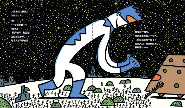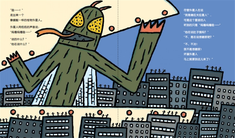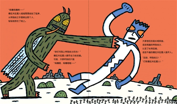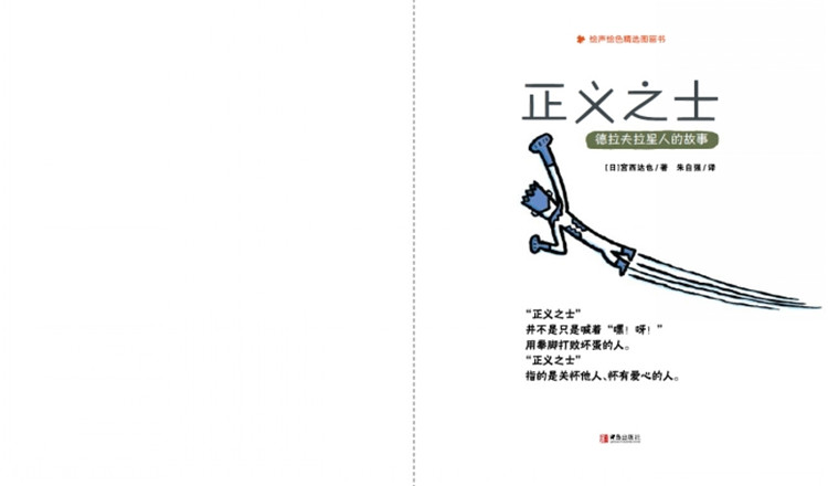 《正义之士》这是一个关于勇气和正义的故事。一个曾经获救的外星人,冒着危险来拯救人类,可是,因为长得很奇怪,语言也让大家听不懂,遭受到人类曲解与无情的攻击,但它最终仍愿意牺牲自己来报恩。读到最后,孩子和大人都会感动地领悟到:温柔、体贴,一副爱护人的好心肠,胜过语言、外貌,更能跨过逆境。这个故事让孩子学会坚持做对的事,做一个正义之士。