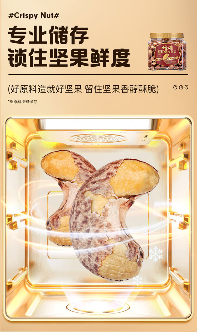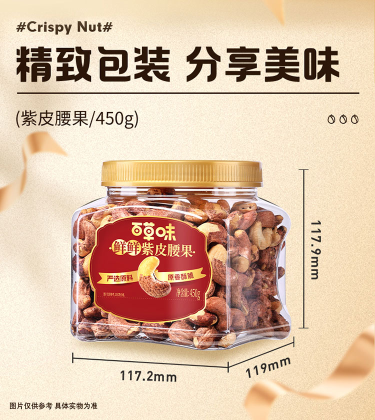 【百草味】鲜鲜紫皮腰果 450g(罐装)-DY