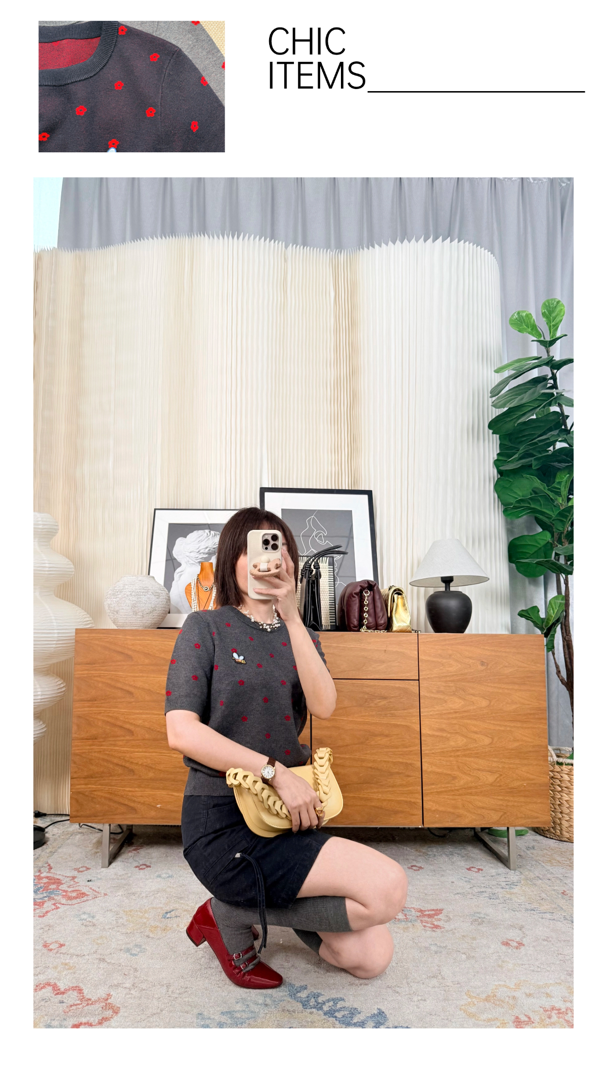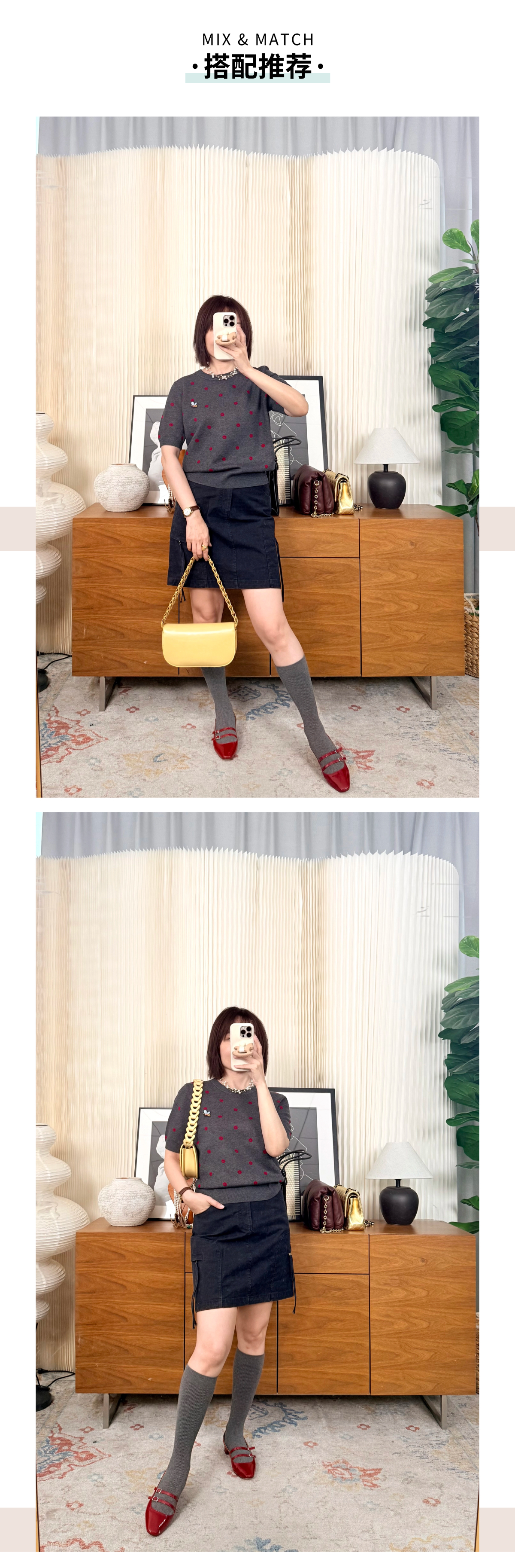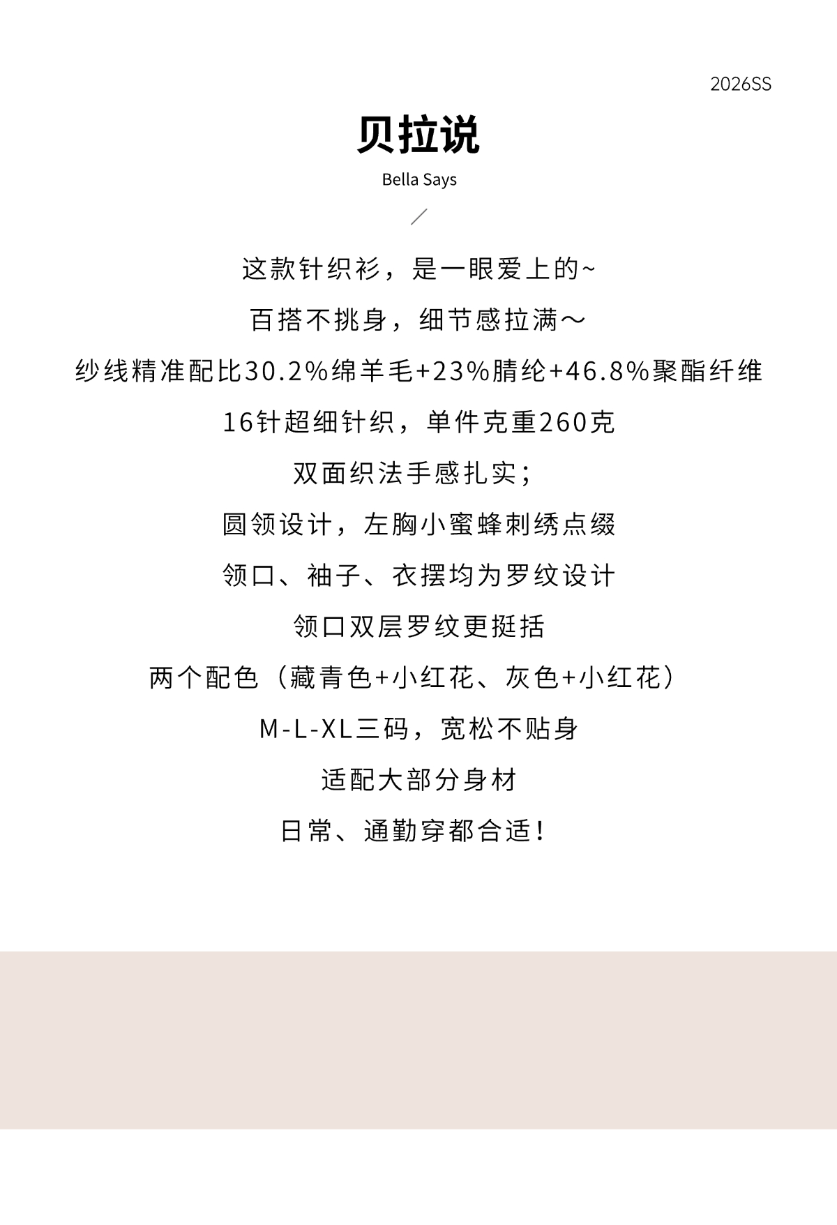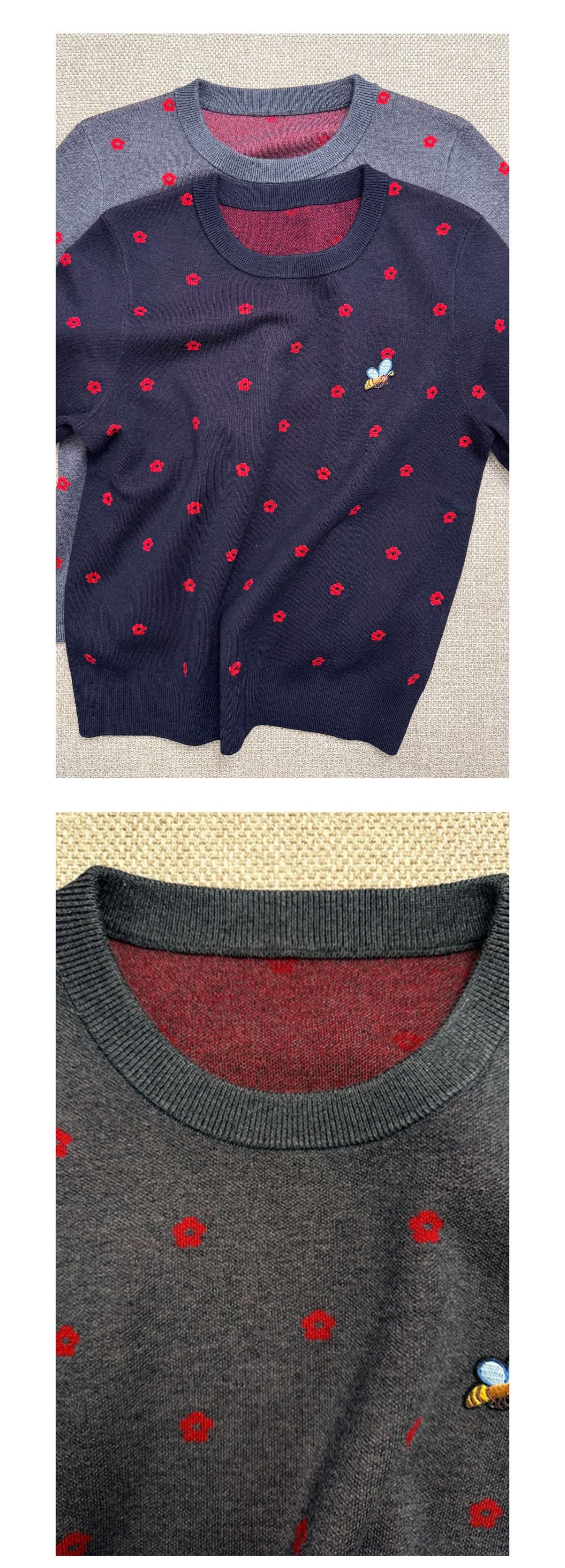 那些花儿 小禾同款羊毛混纺 圆领针织短袖T 蜜蜂刺绣宽松版型 双面织法 克重重磅