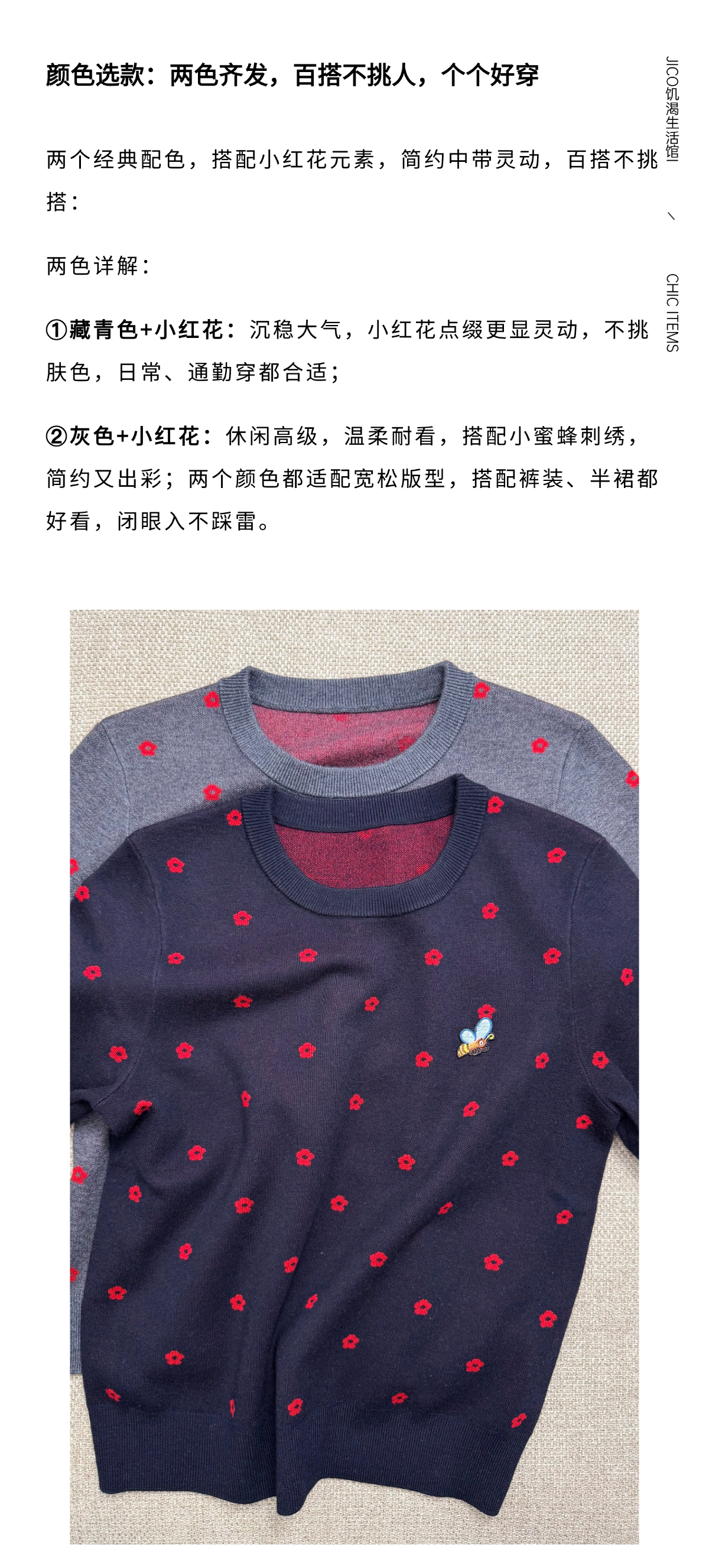 - JICO 饥渴生活馆,J代表Jerrica(小鱼),I代表Isabella(伊莎贝拉),CO代表可可。 JICO的音译是“集可”——很多很美物汇“集”在这里; 女装,美妆,母婴,生活周边