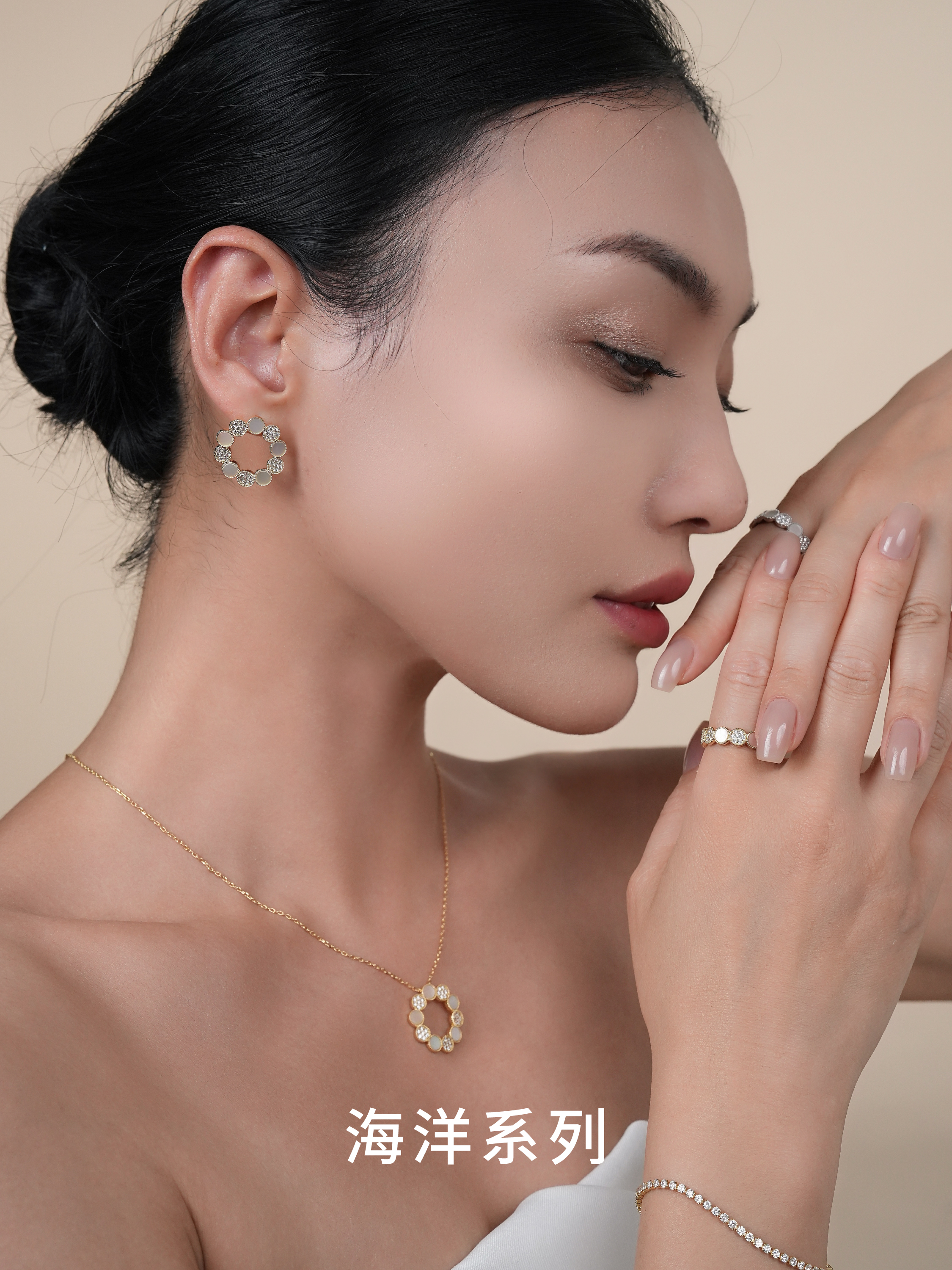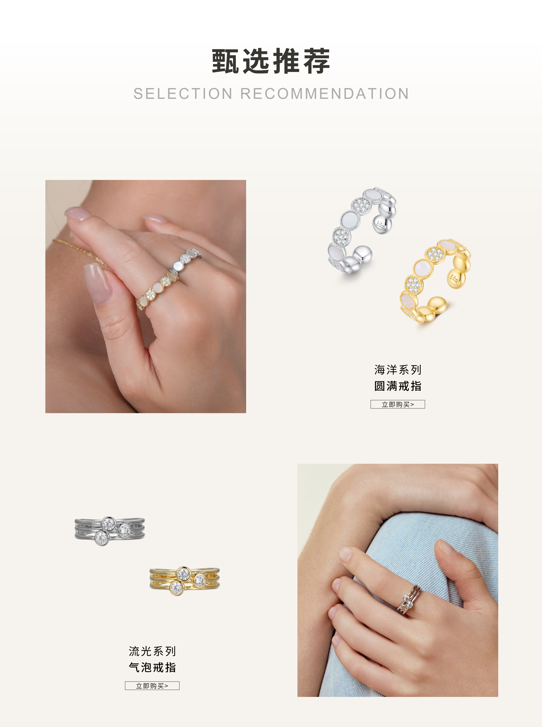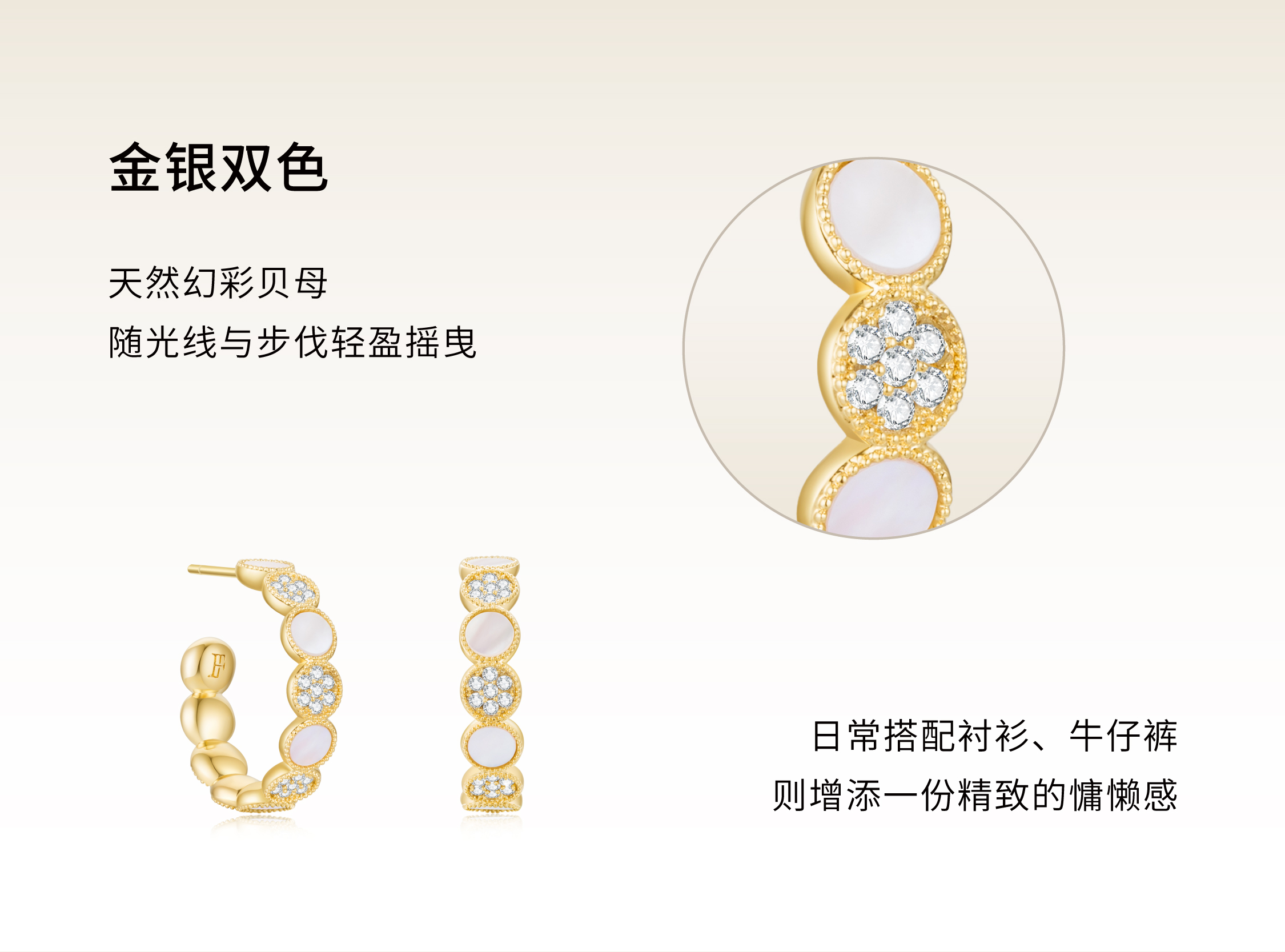 【圆满】白贝可调节戒指·金银双色