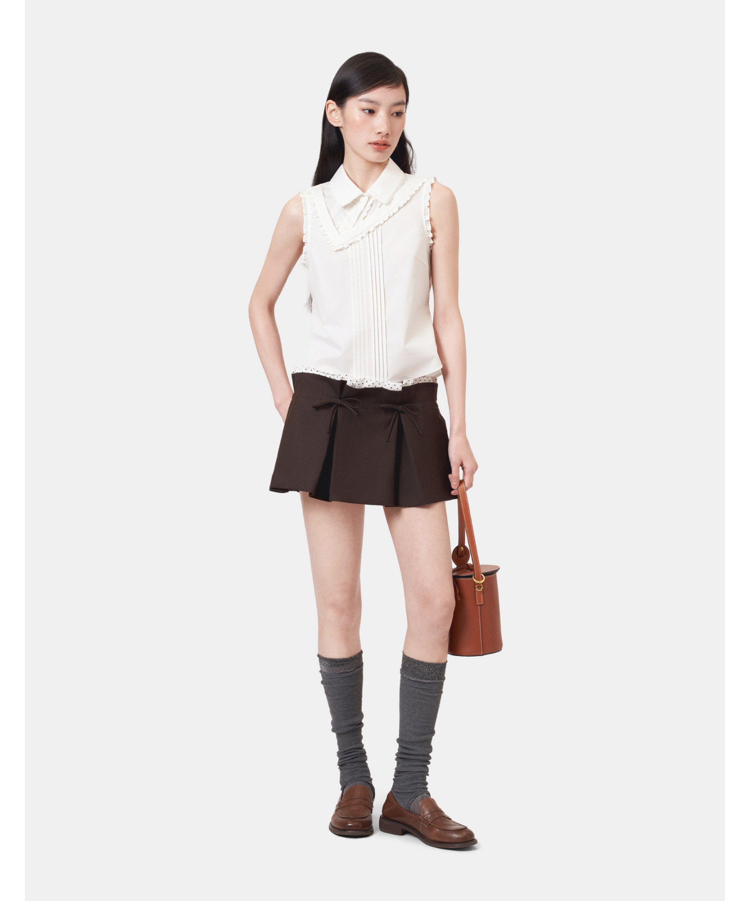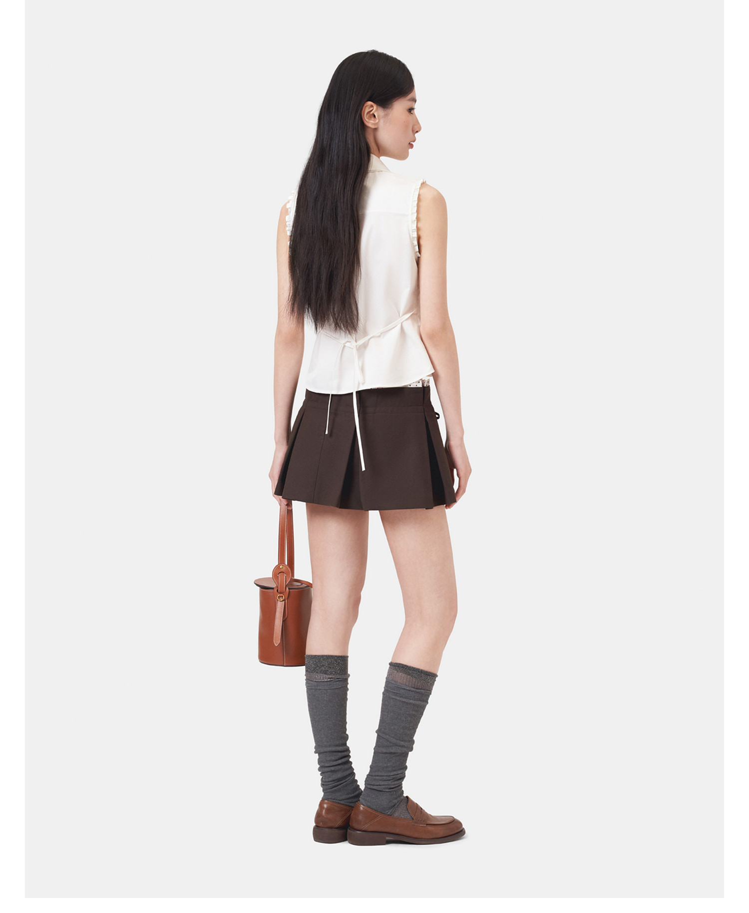 HERLIAN 2026年春季新品腰头褶皱拼接百褶裙女士A字短裙