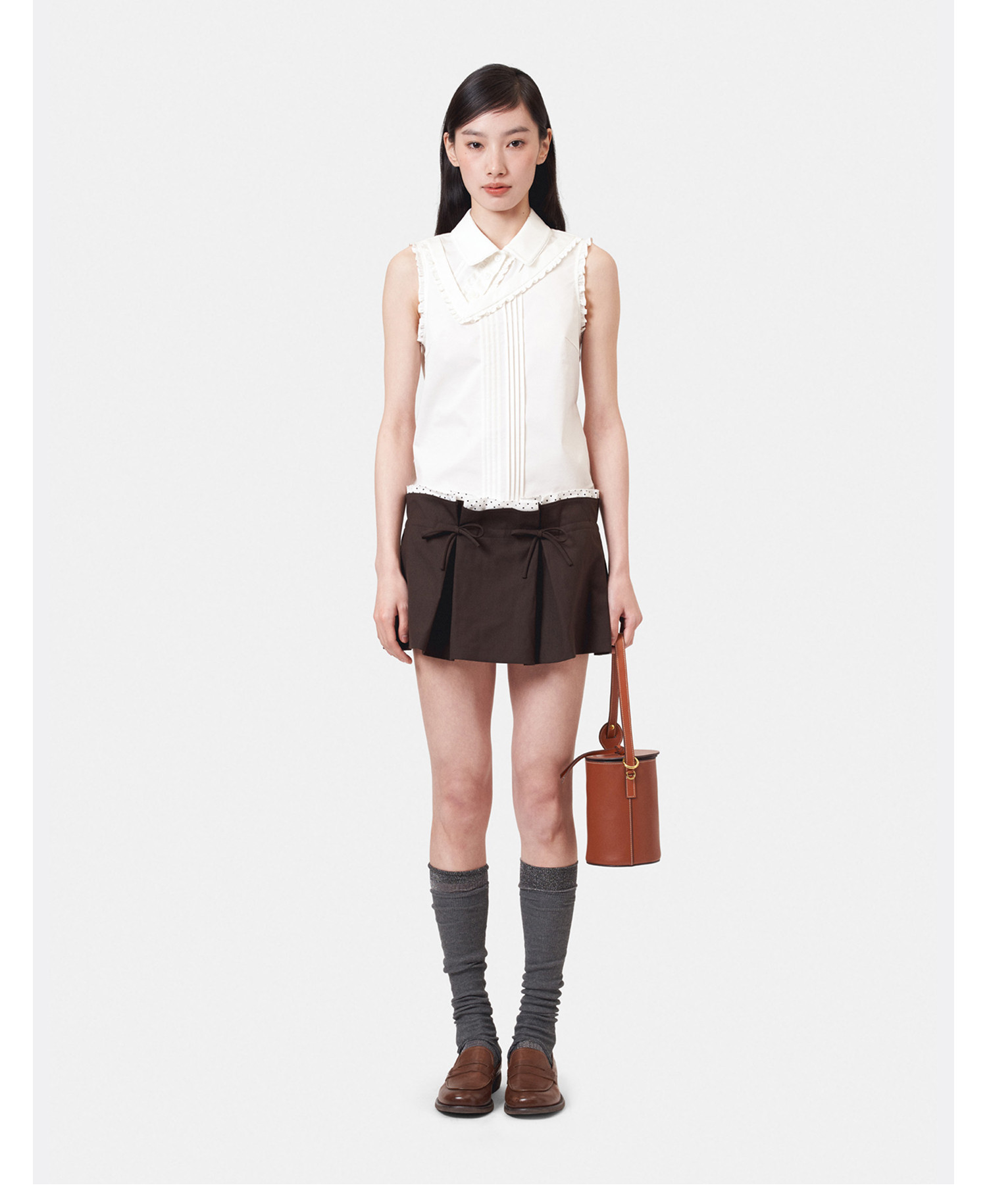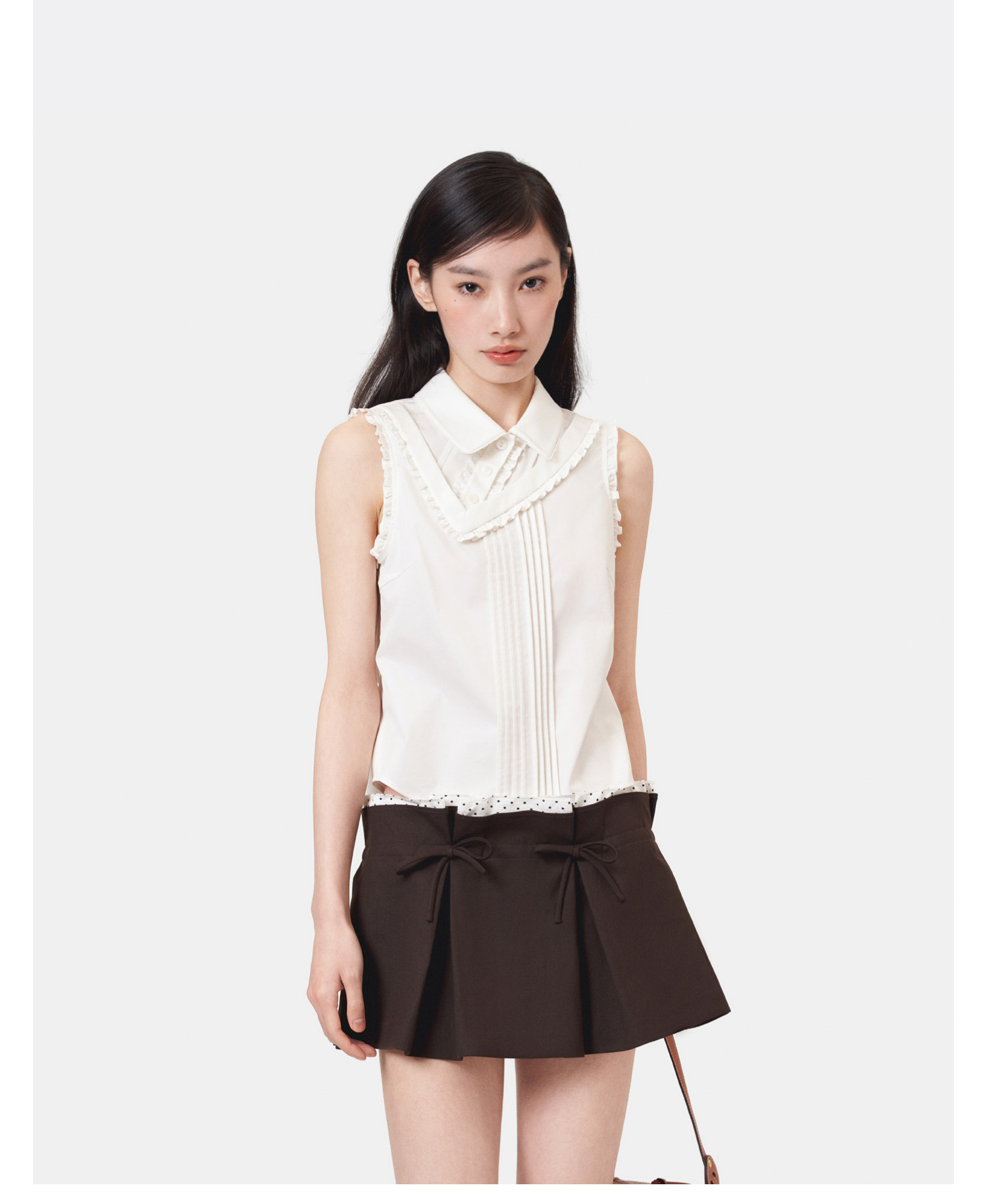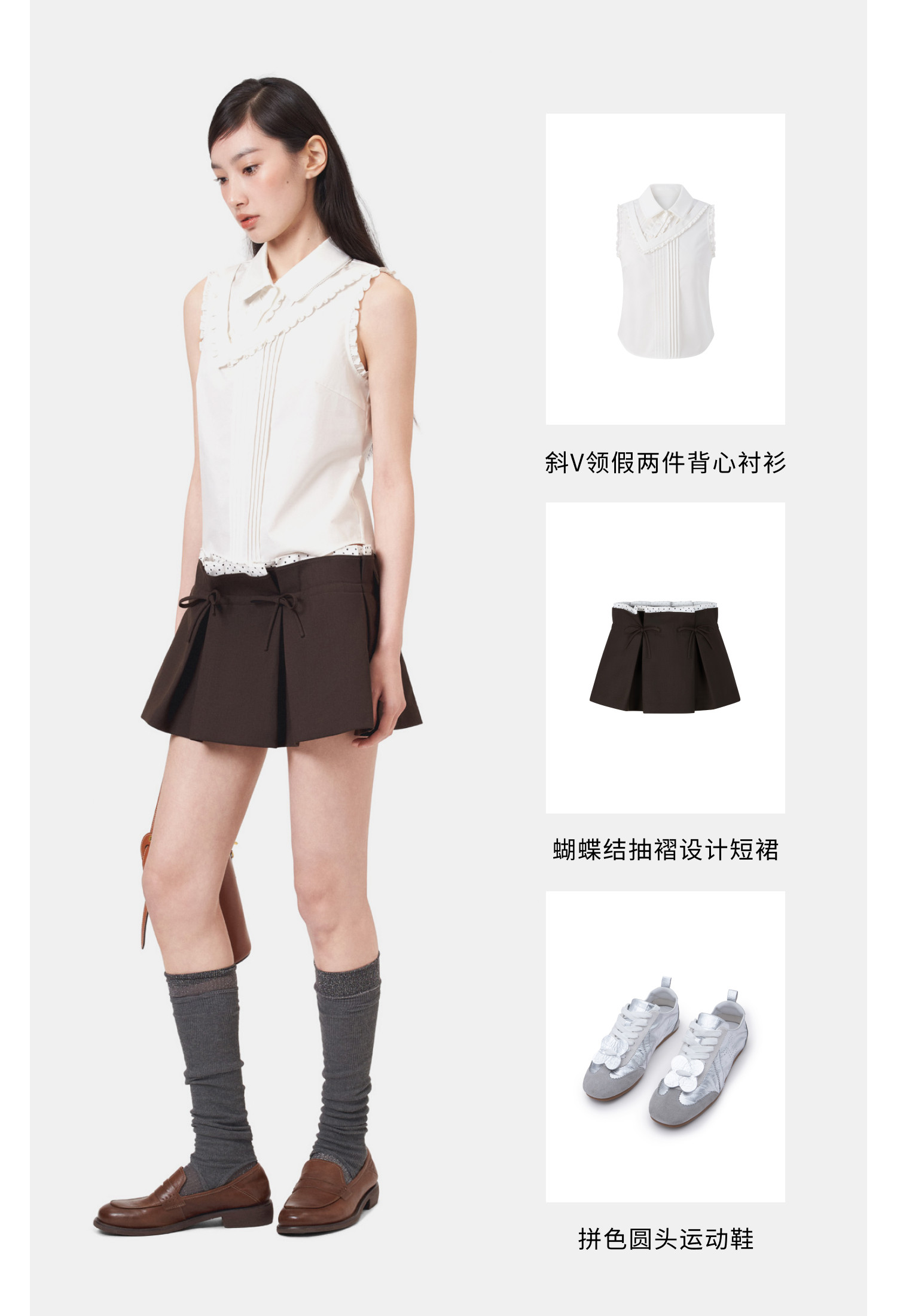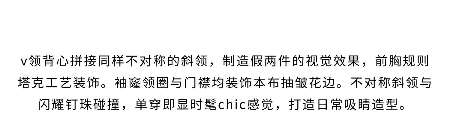 HERLIAN 2026年夏季新品斜V领假两件背心衬衫女士无袖上衣