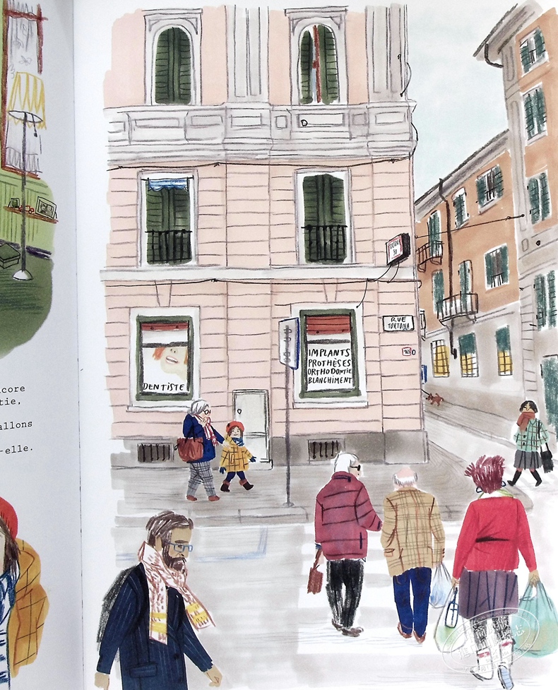 从服装摊位到物品摊位,从鱼摊到五颜六色的市场园丁摊位,市场是一个真正的探索乐园,展开了它的色彩、气味和它自己的旋律。去市场本身就成为一种冒险,当我们错过学校时,我们有幸发现了这一点!"。小读者会喜欢发现、命名和计算在市场上发现的有时很奇怪的物品,并与小叙述者一起寻找她祖母想要的手套
