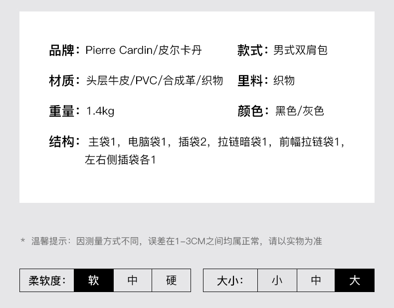 皮尔卡丹官方正品大容量旅游出行办公男女同款双肩包