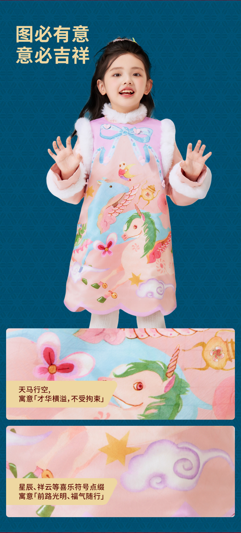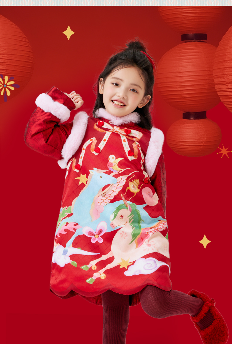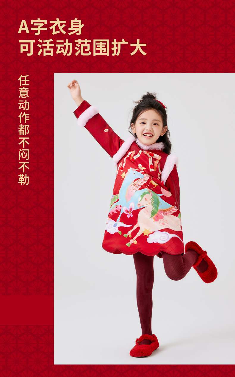 年衣童装旗袍裙冬季新款女童唐装连衣裙中式假两件天马行空旗袍裙
