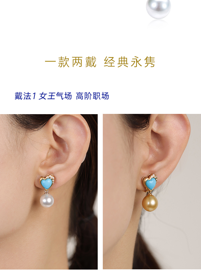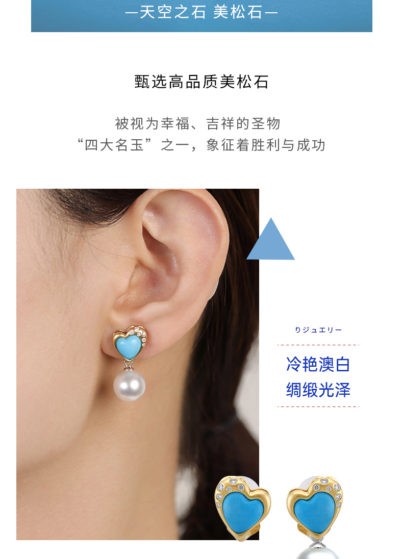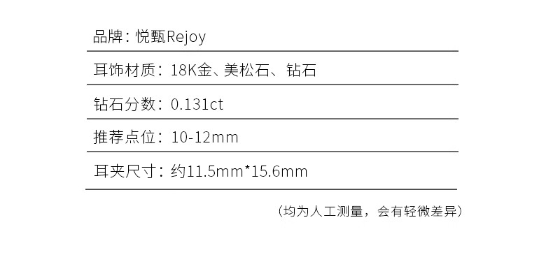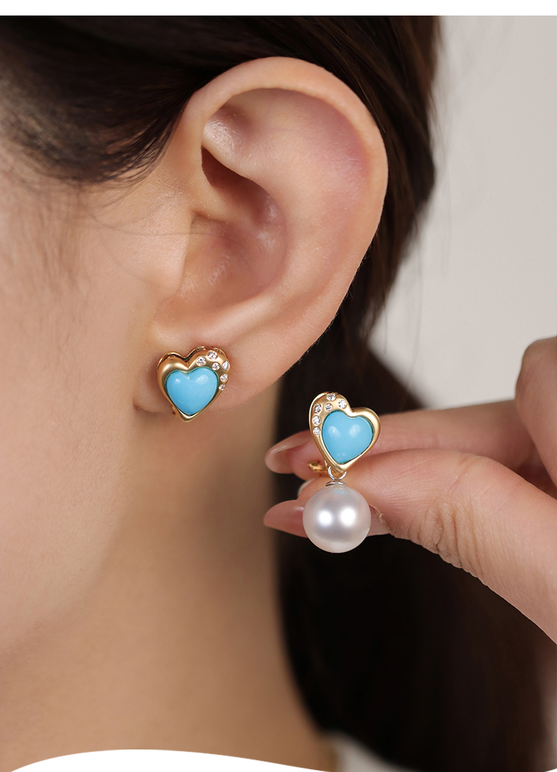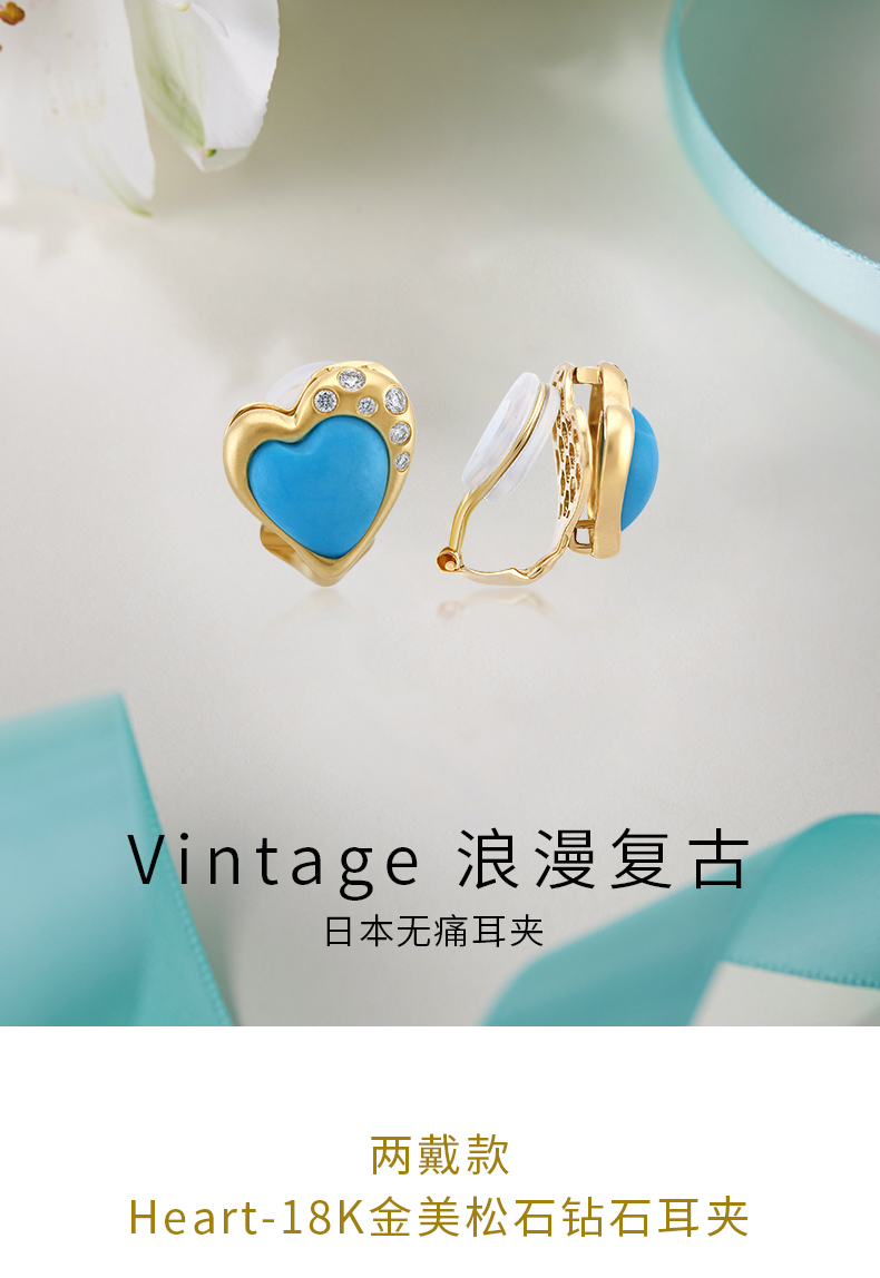 【天猫同款】悦甄 18k金钻石美松石耳夹 Heart