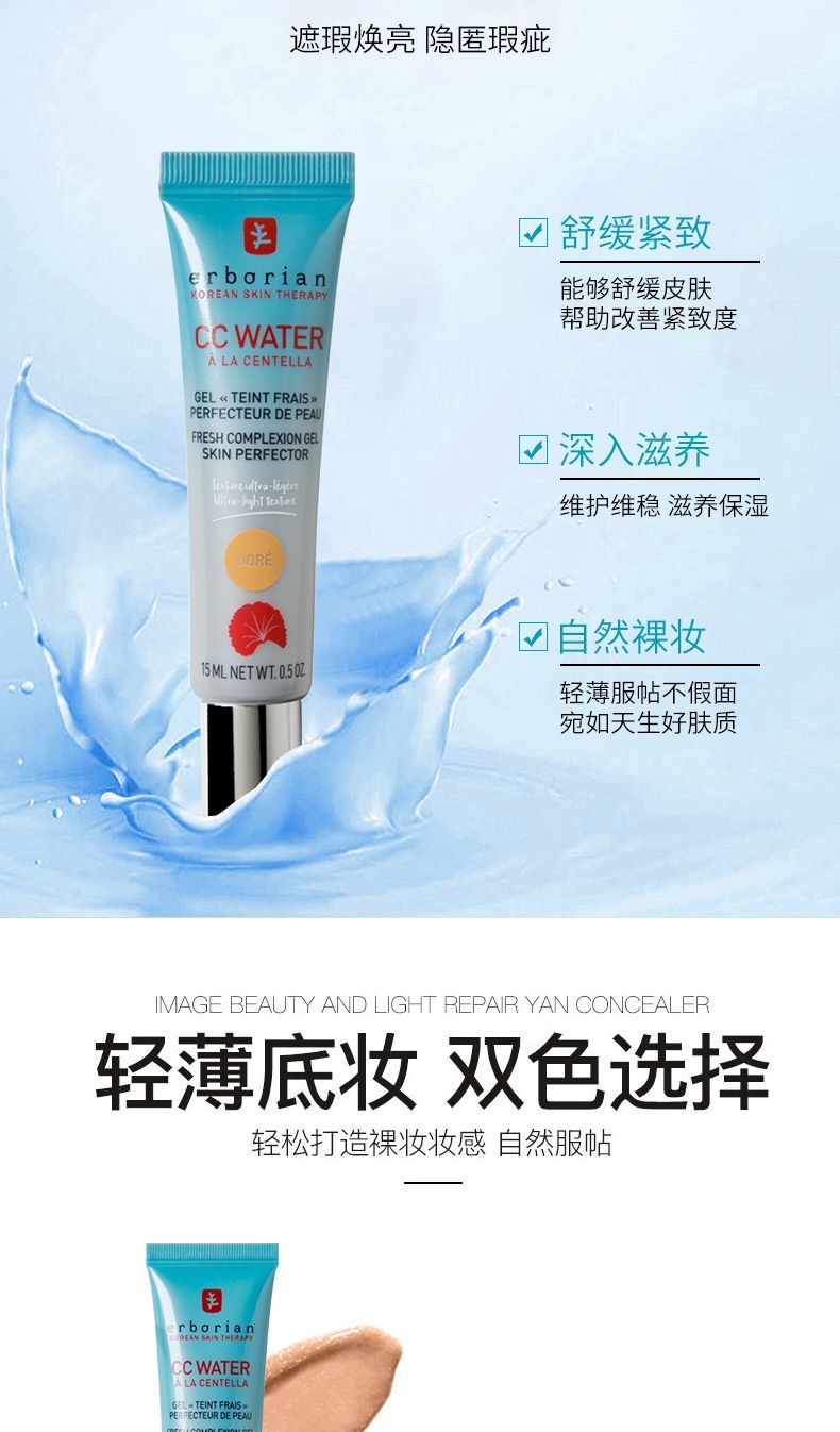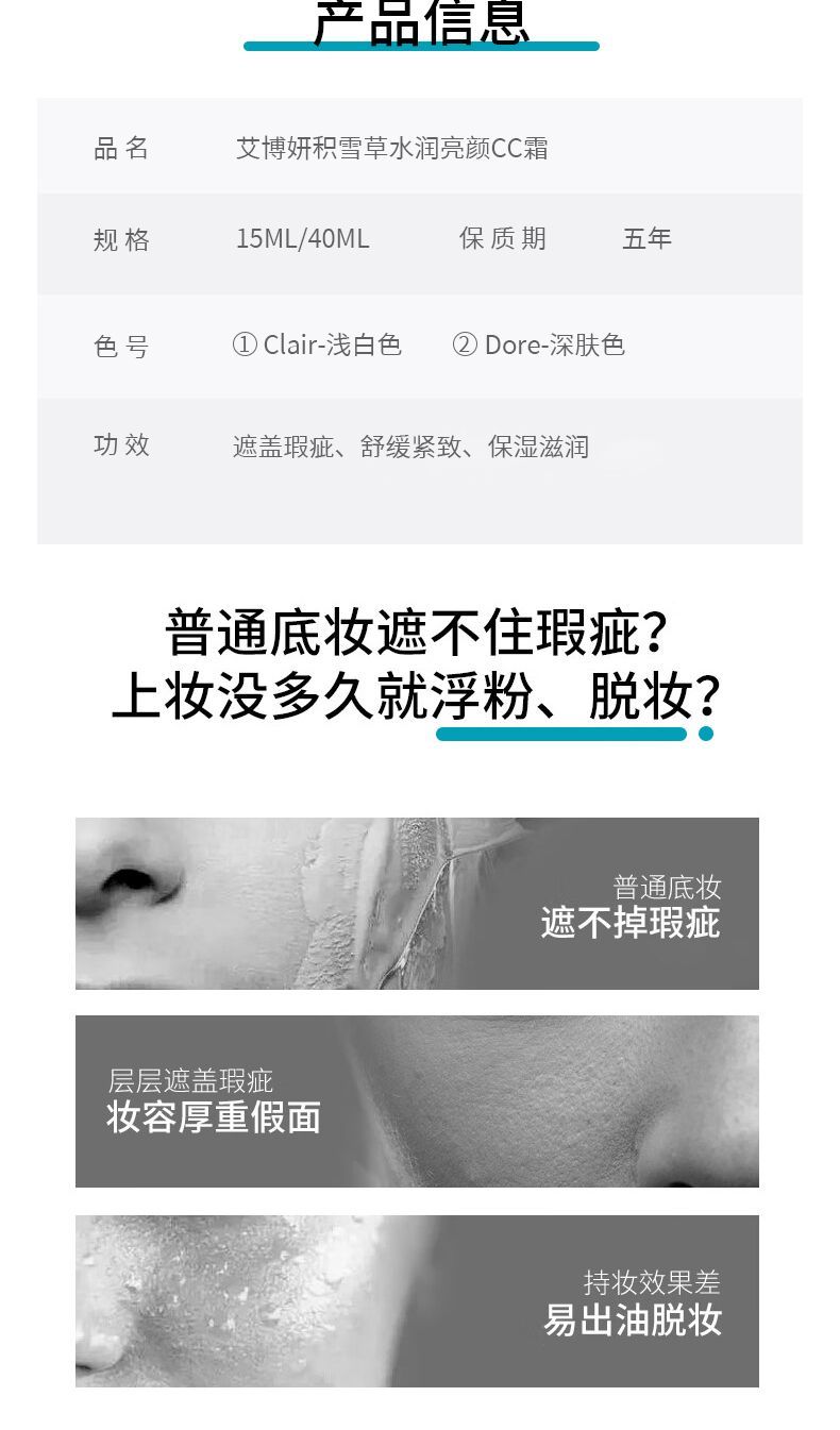 艾博妍积雪草水润亮颜CC霜15/40ml提亮清透