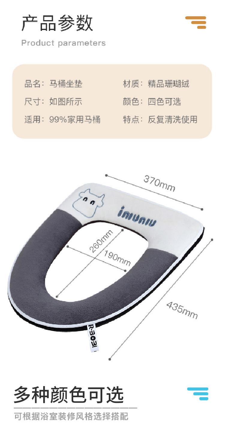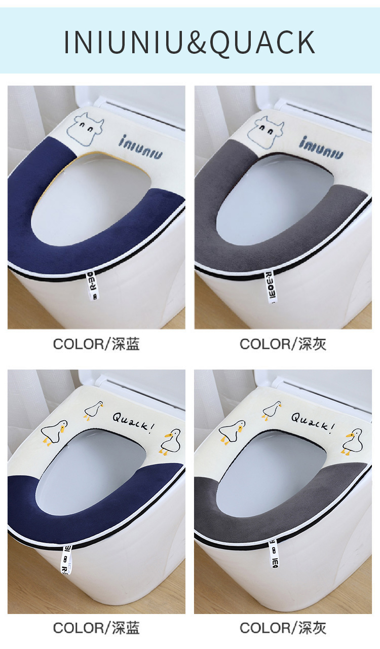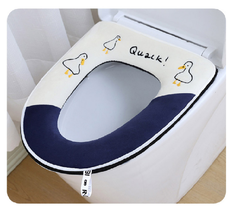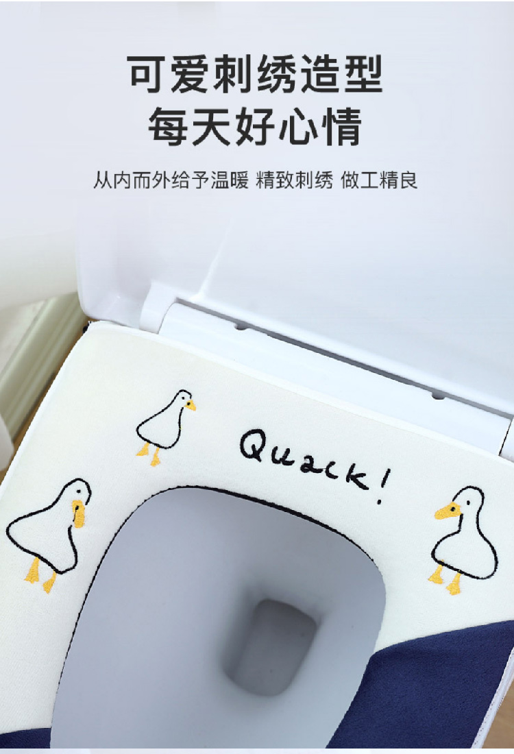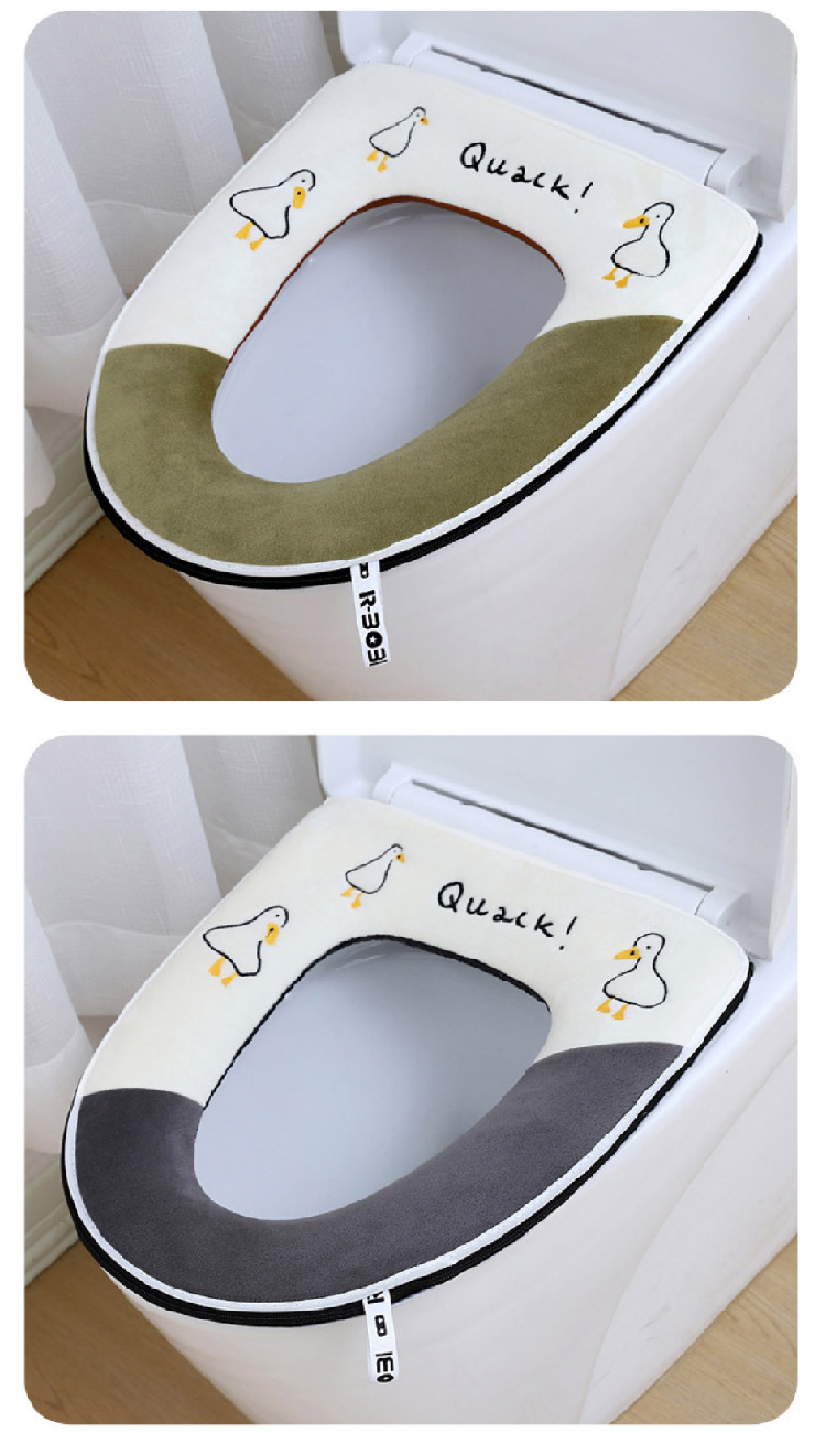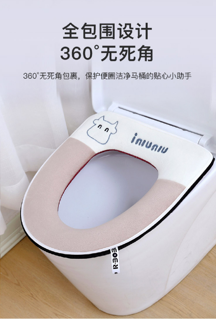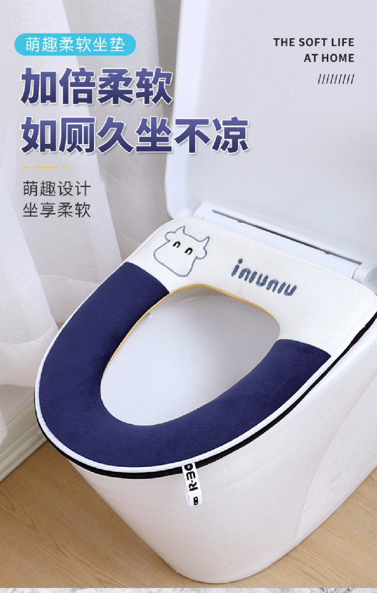 【水晶绒坐垫】家用刺绣可爱马桶垫秋冬带提手 加厚坐垫套珊瑚绒保暖拉链款坐垫(可机洗)