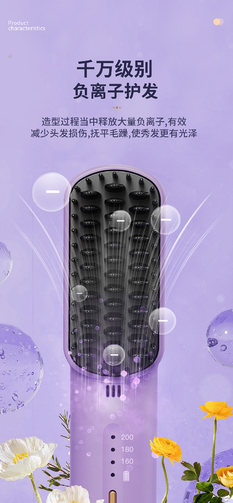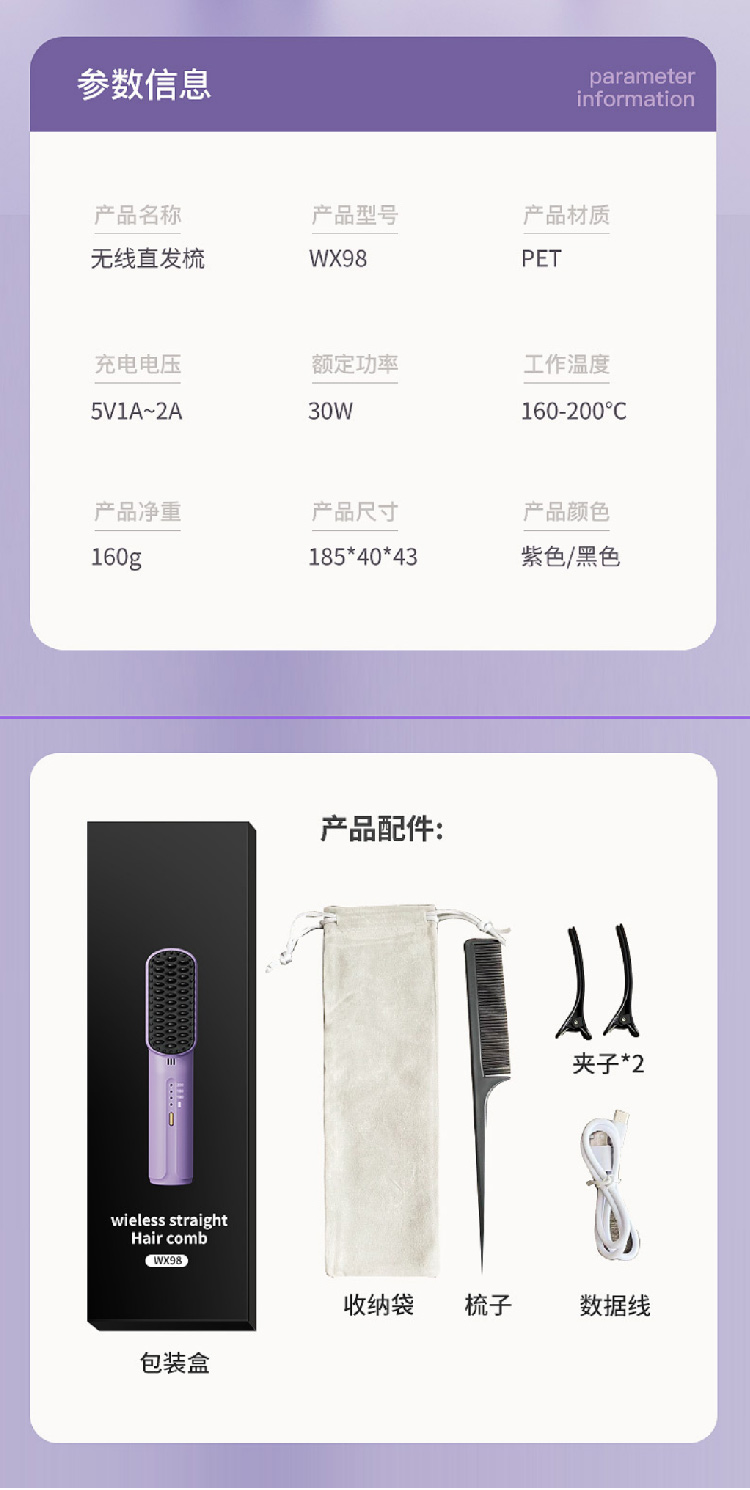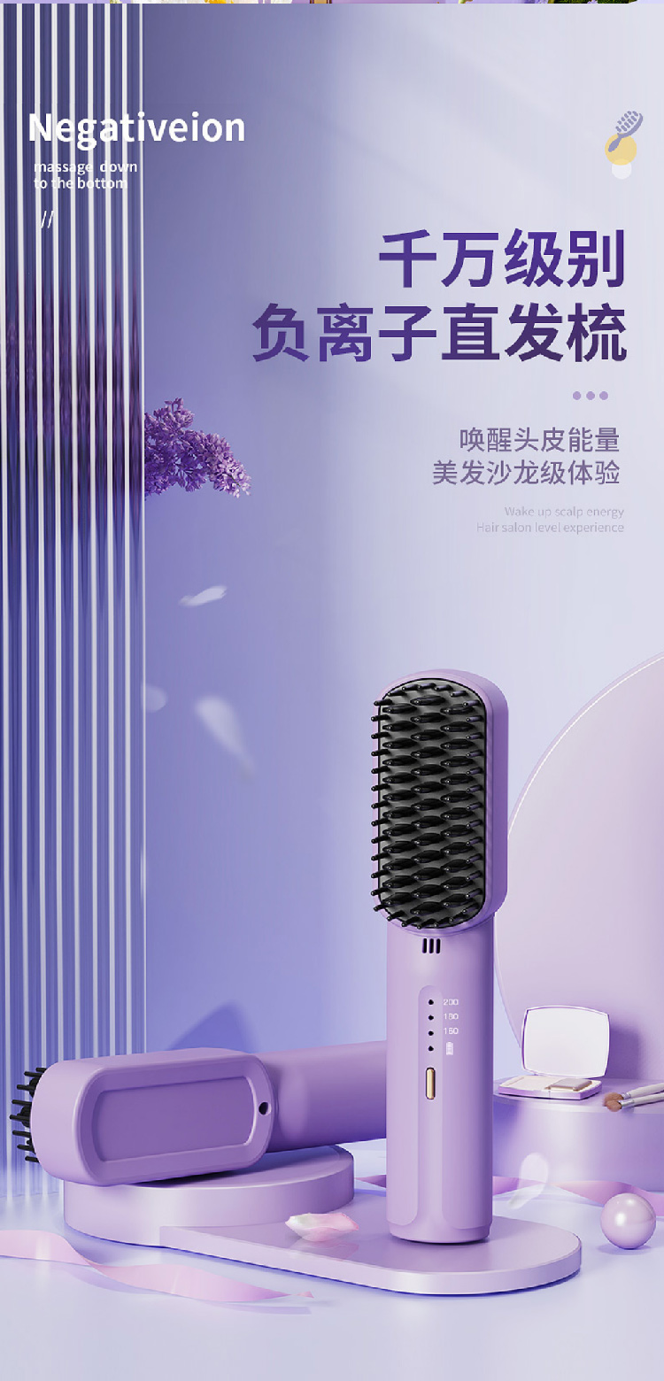 【七夕礼物】女神无线直发梳水润负离子便携式USB迷你梳