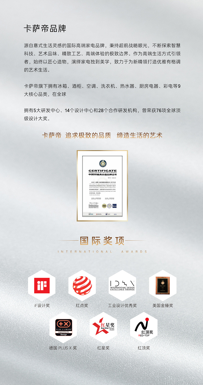 素岩-卡萨帝551L零嵌入式灰白色十字四门一级能效超薄家用冰箱