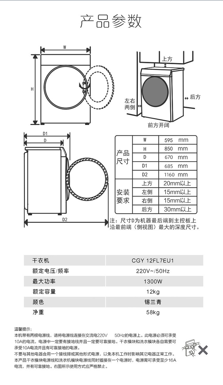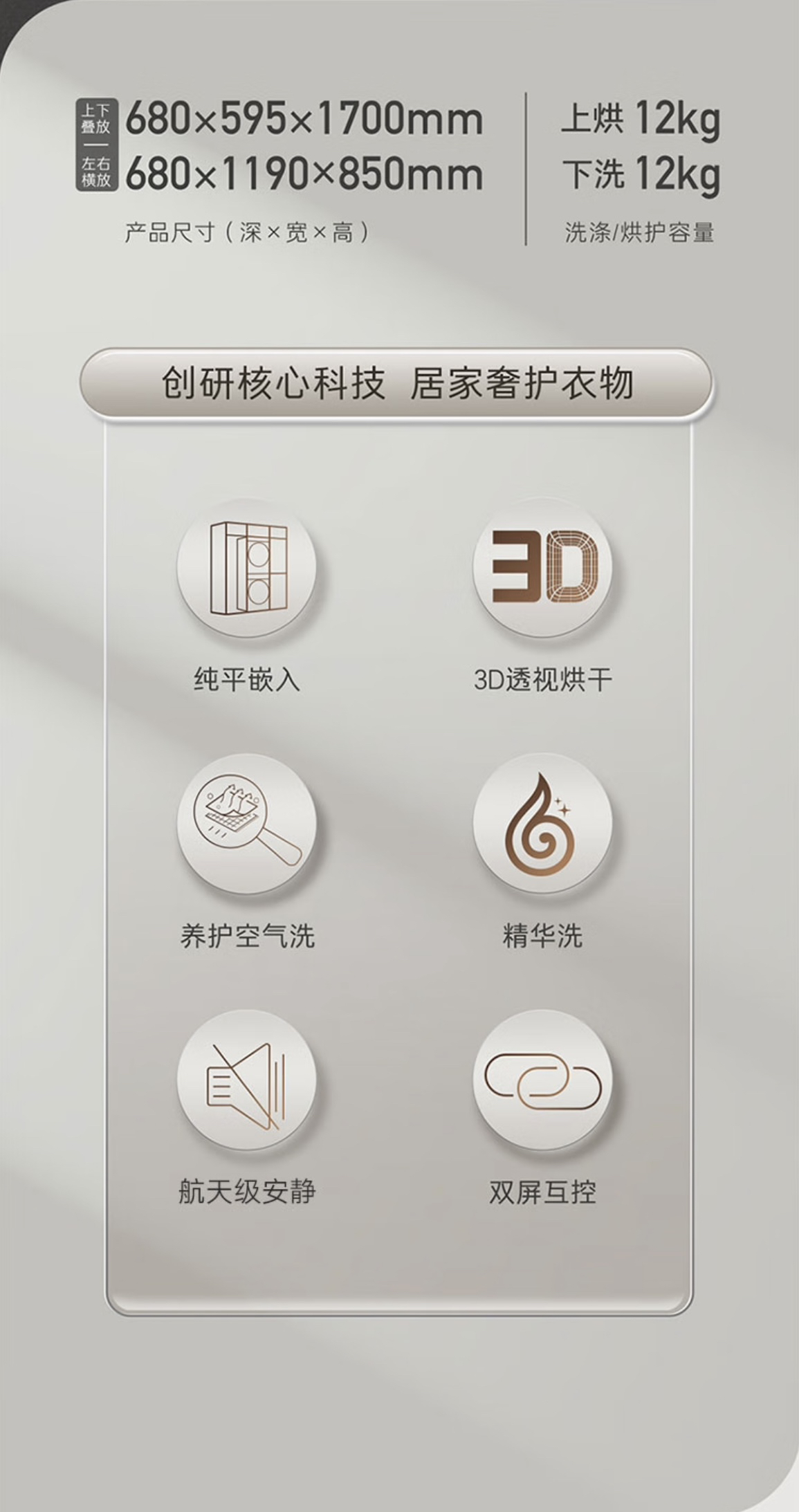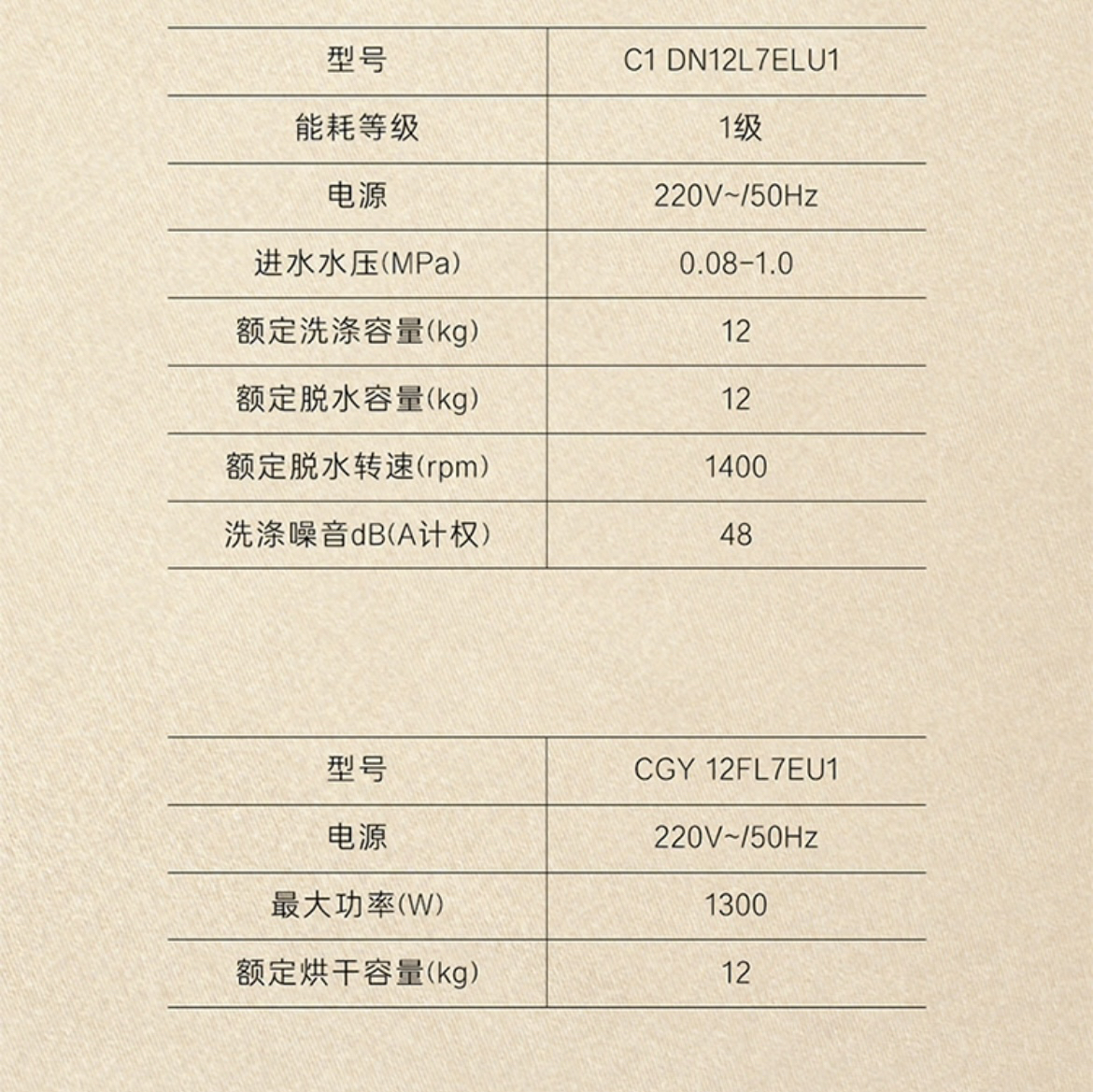 卡萨帝(Casarte)洗烘套装 C1 DN12L7ELU1+CGY 12FL7EU1