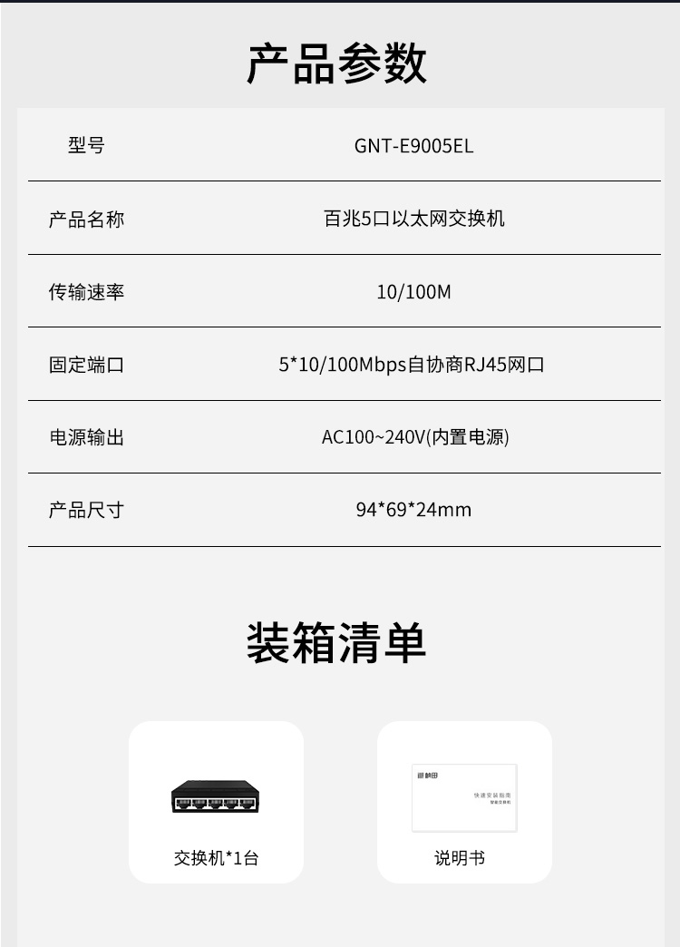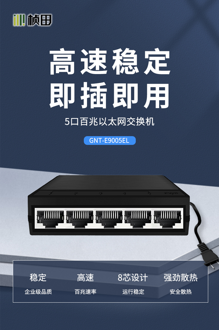 桢田5口百兆交换机塑铝外壳GNT-E9005EL