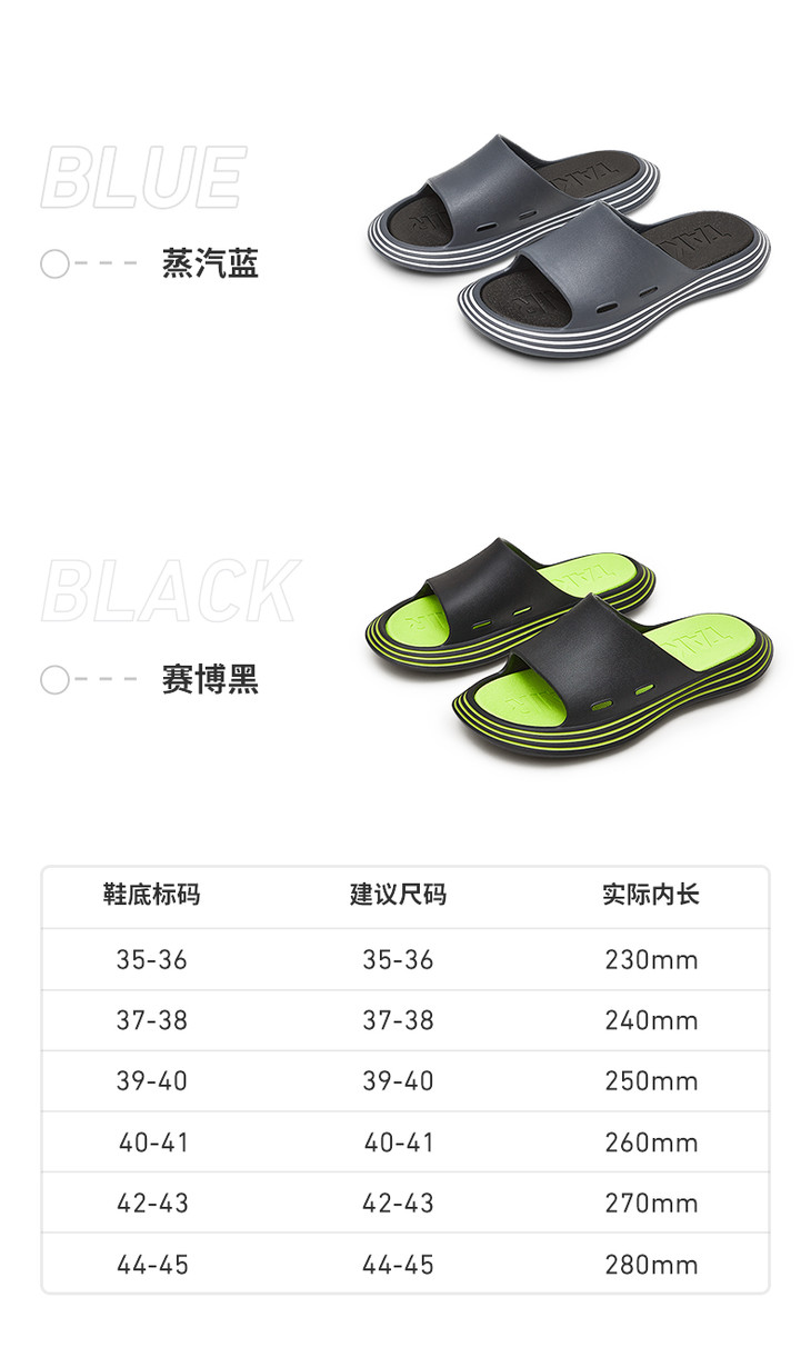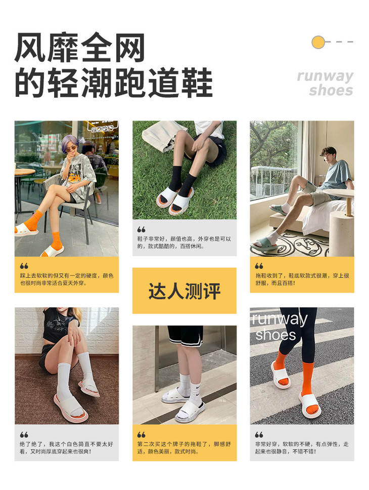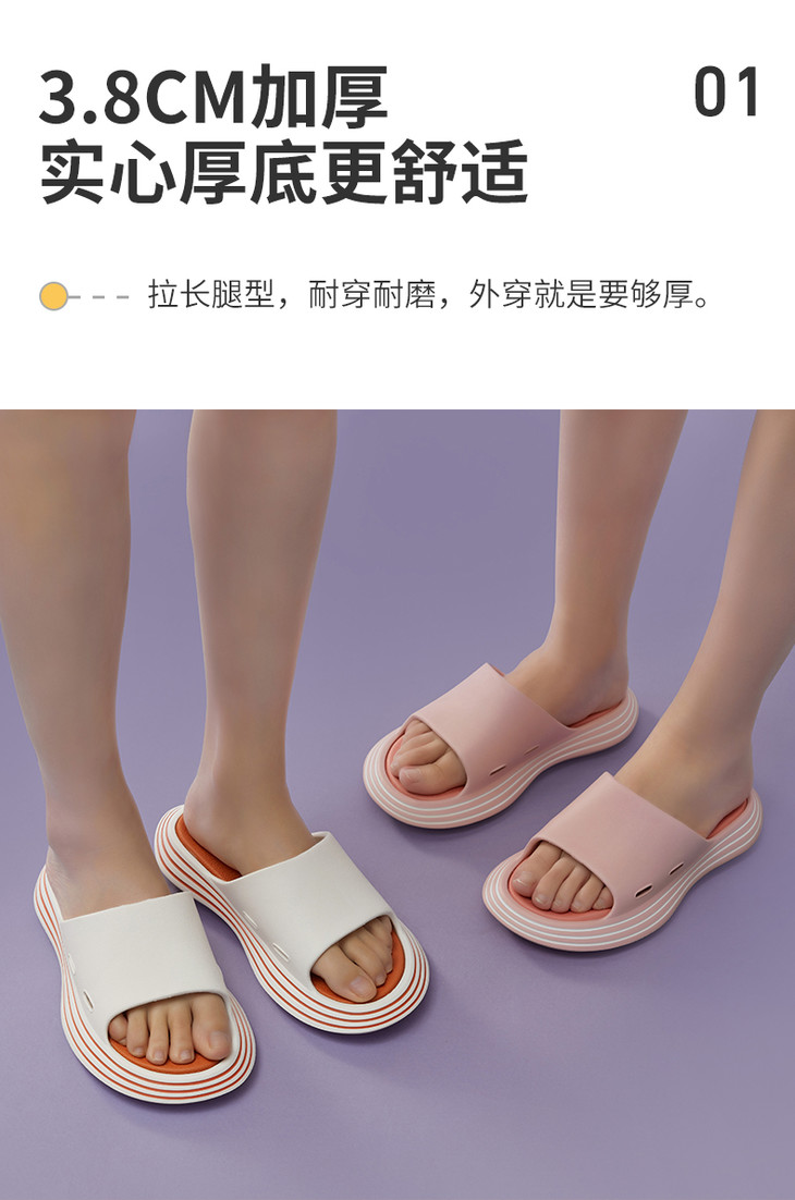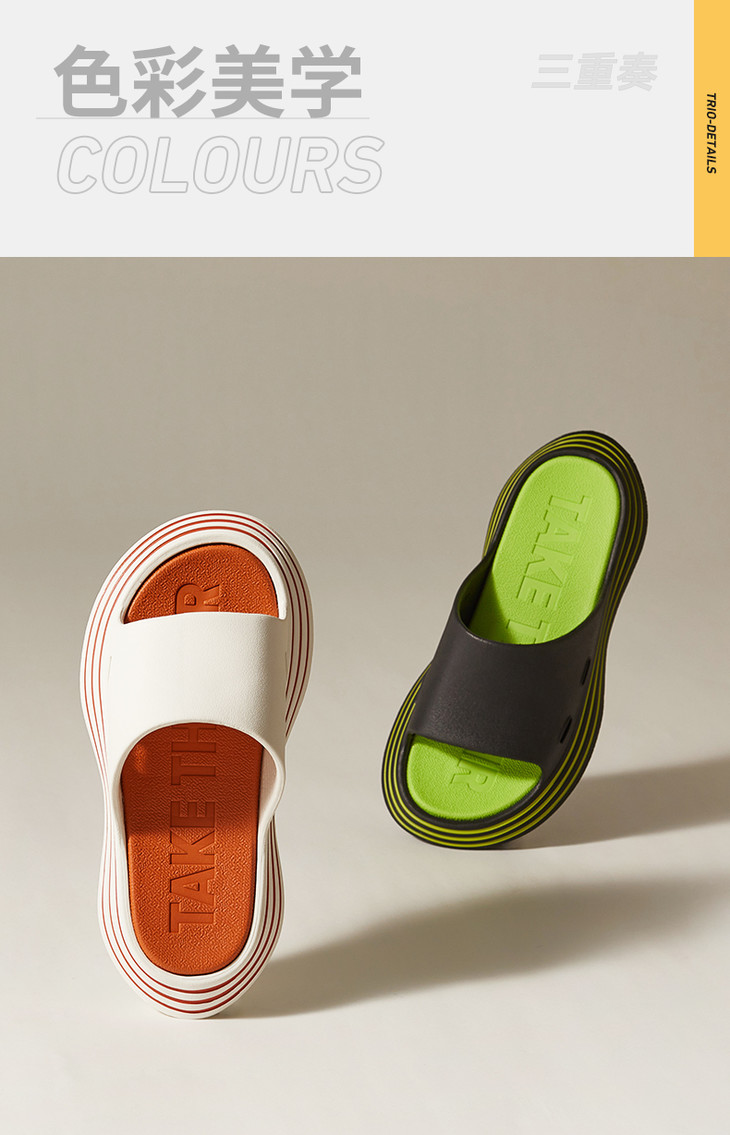 优调 轻潮跑道运动拖鞋,双层EVA发泡工艺,软弹十足,3.8cm厚底拉长腿型,耐穿耐磨防滑,撞色设计潮流百搭