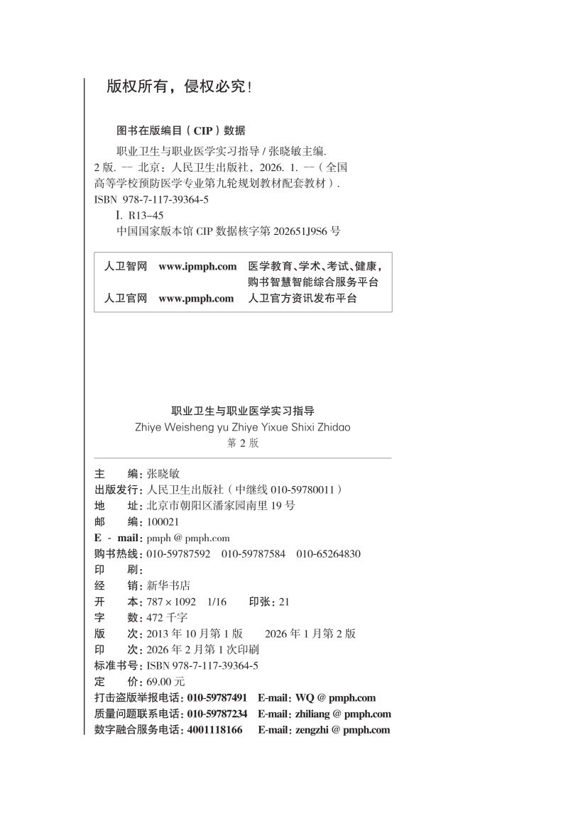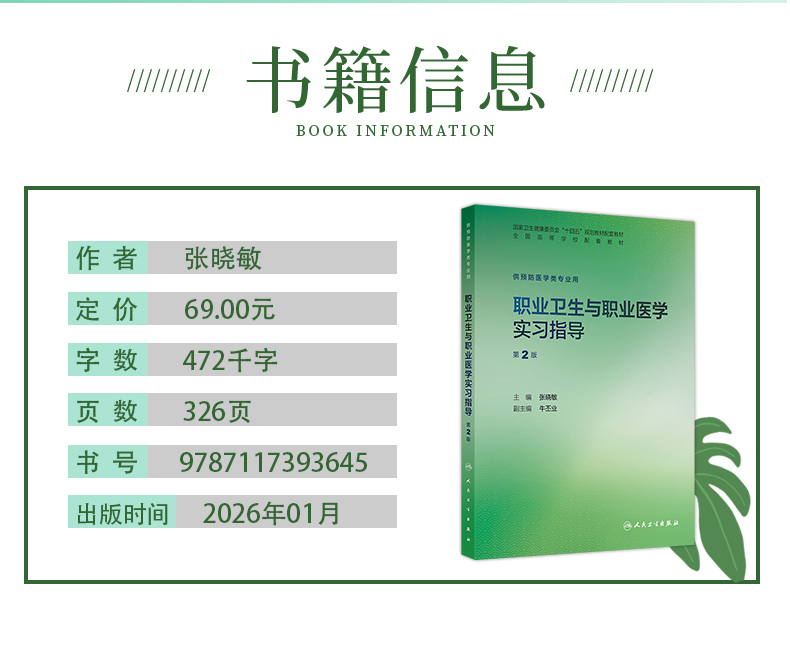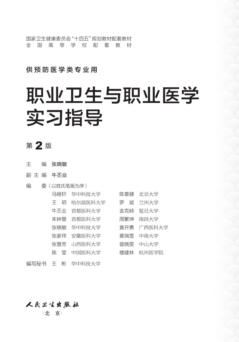 职业卫生与职业医学实习指导 第2二版 张晓敏 十四五规划教材配套教材全国高等学校配套教材 本科配教9787117393645人民卫生出版社