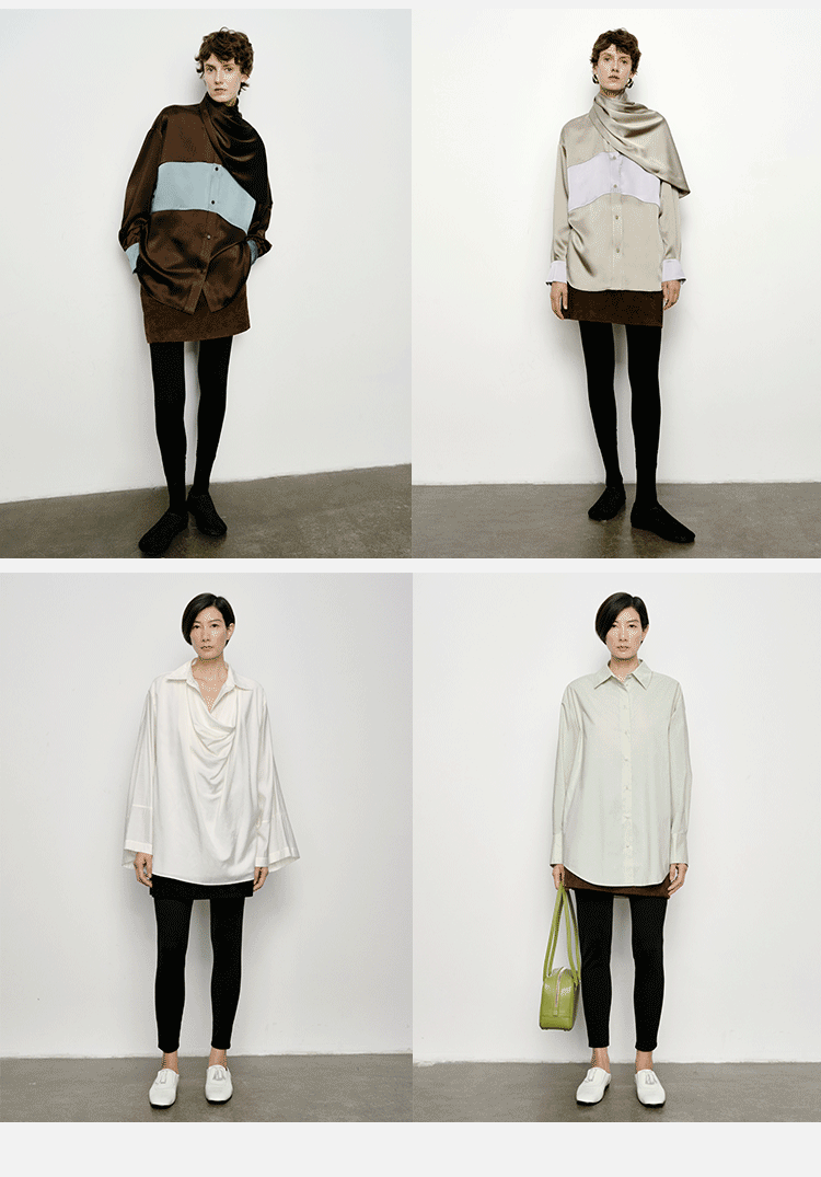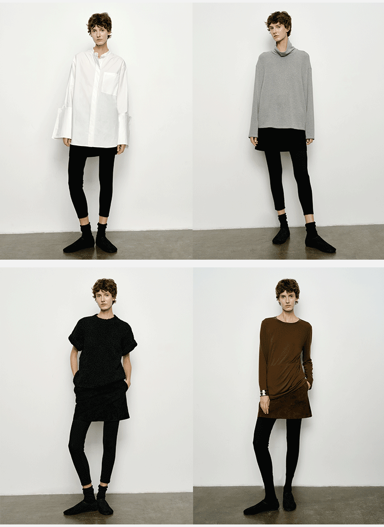HIDEMI 懒人必备/奶昔白肌理感亚麻套装 圆领衬衫/垂直感侧开衩长裤