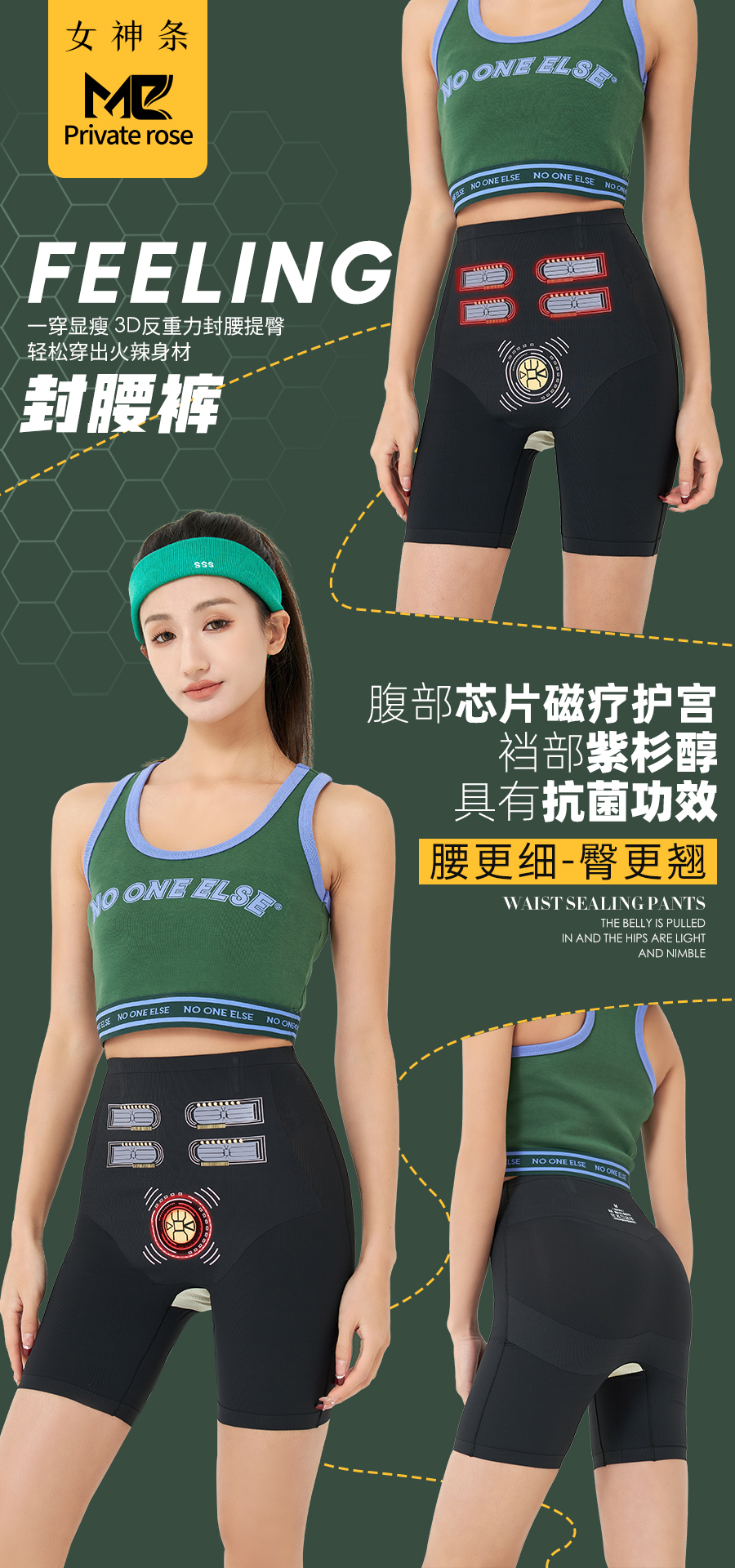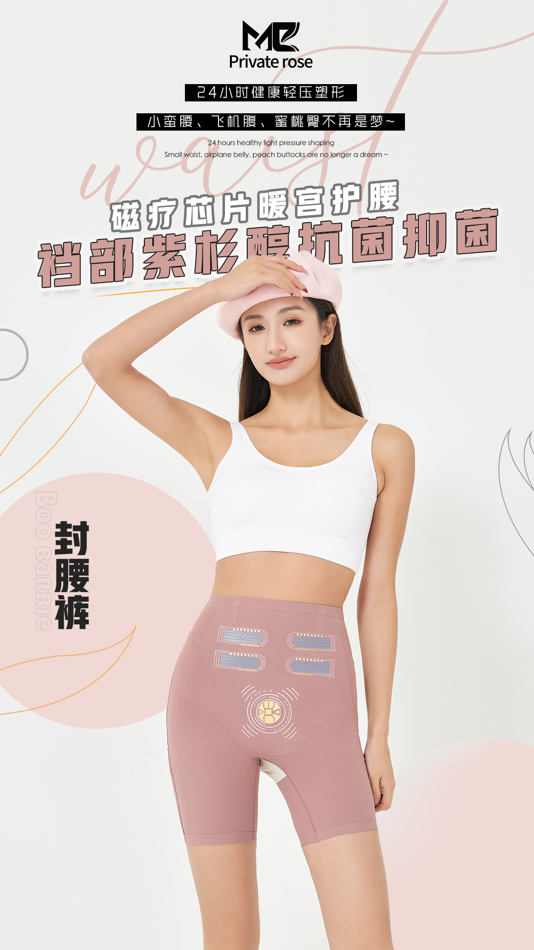 收腹翘臀 轻盈灵动 亲肤零束缚!一穿显瘦 3D反重力封腰提臀 轻松穿出火辣身材!腰部磁疗护宫,加快血液循环 促进新陈代谢!裆部紫杉醇加持 抗菌抑菌 穿着更安心!
